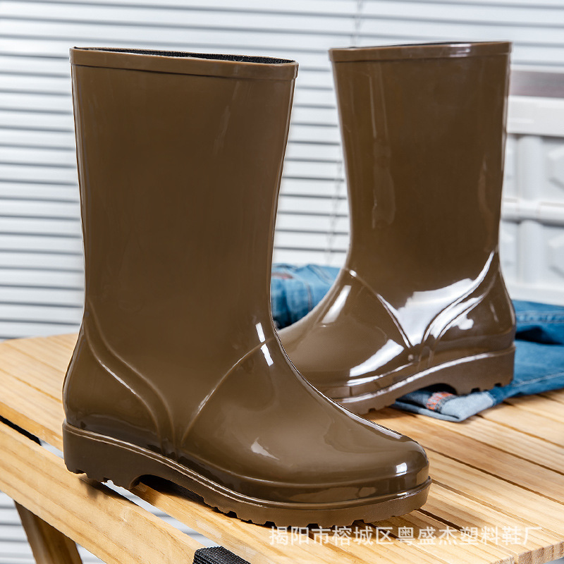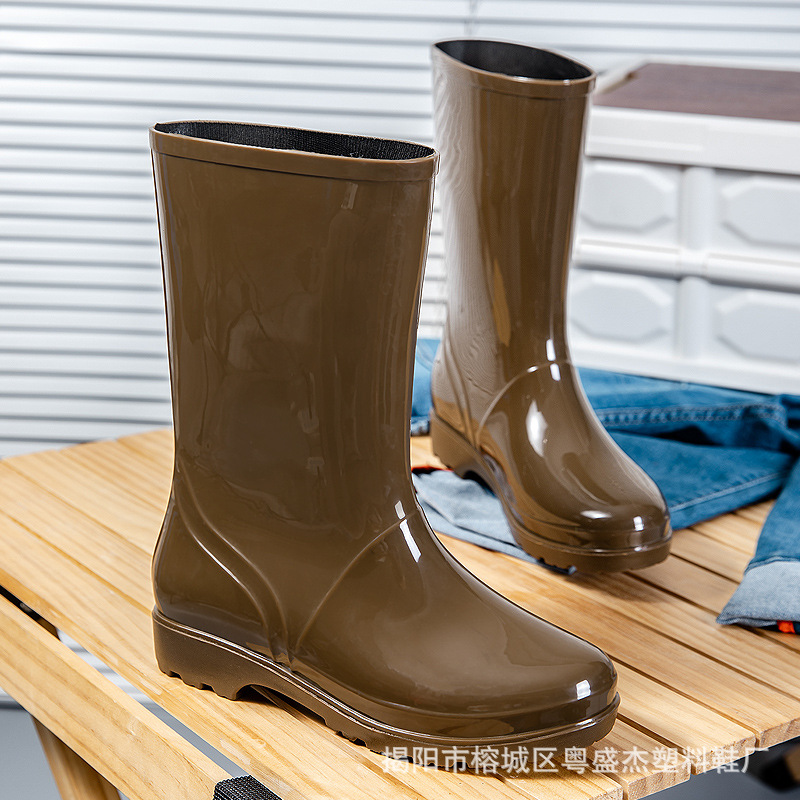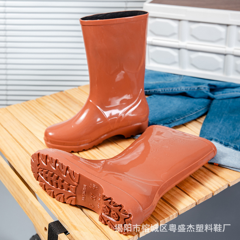 여성용 종아리 중간 사계절 장화, 따뜻한 특수 플라스틱 신발, 미끄럼 방지 워터 부츠, 벨벳 장화, 작업용 고무신
