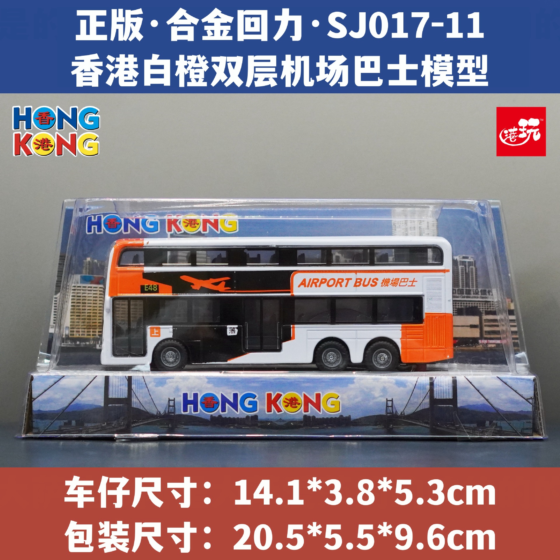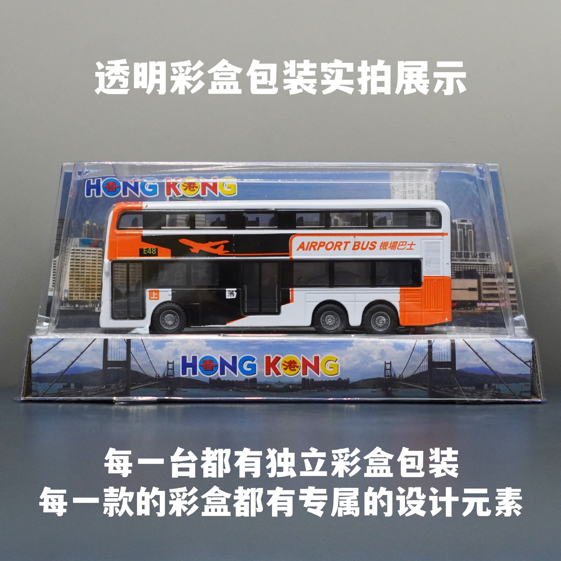 홍콩 주황색 및 흰색 이층 공항 버스/합금 풀백
