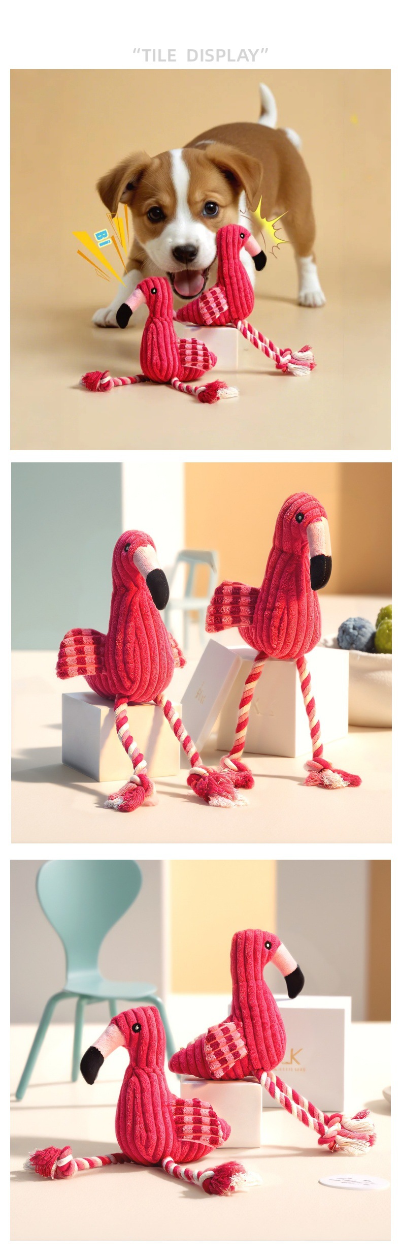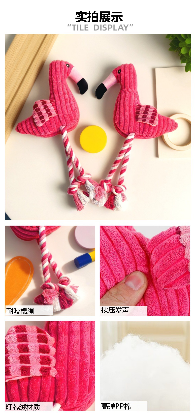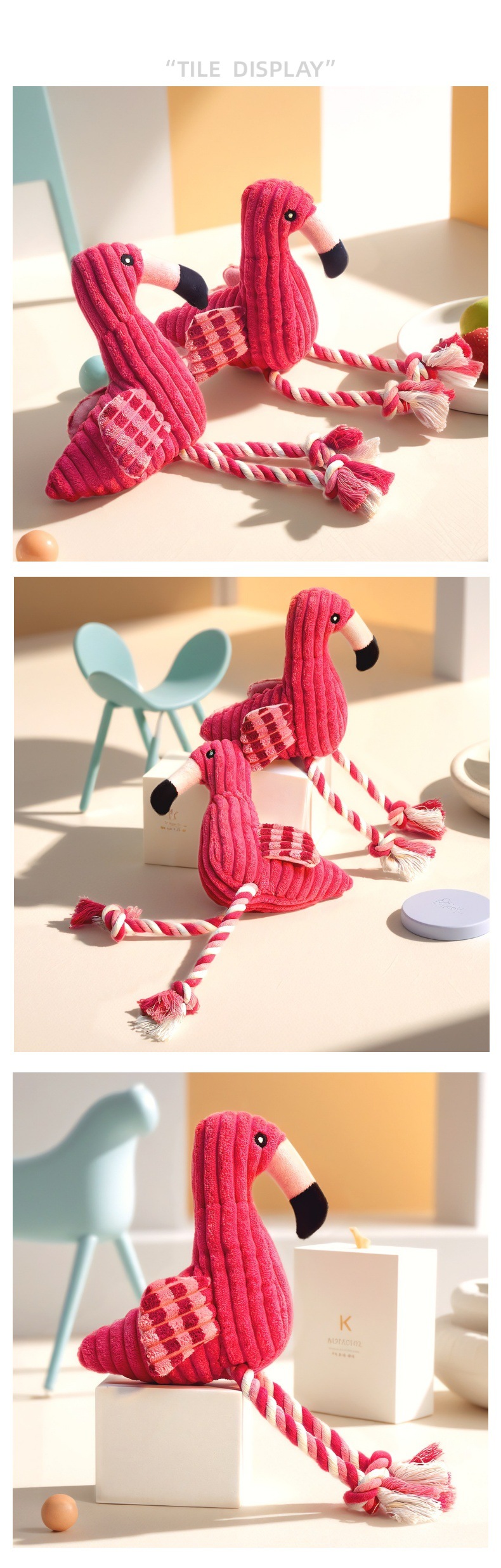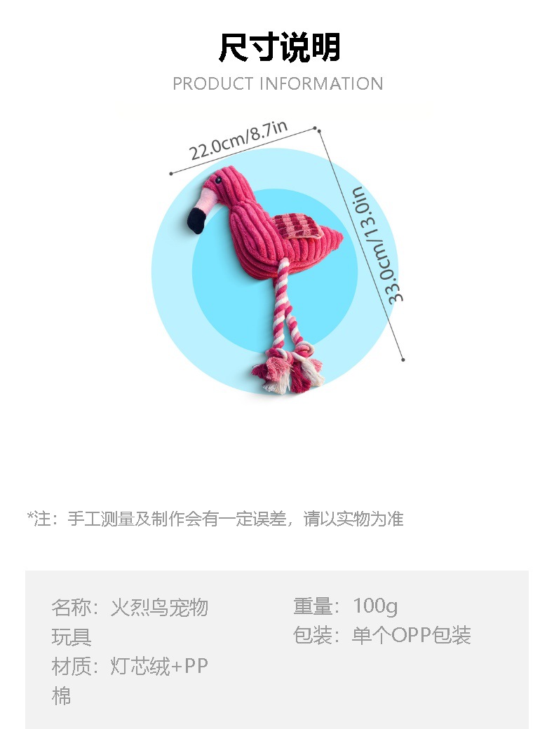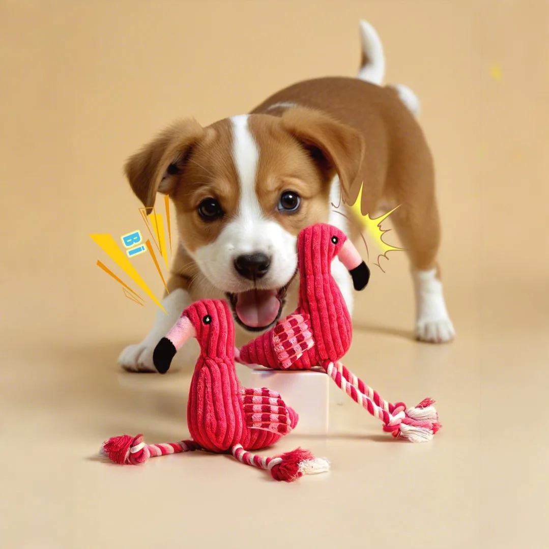 애완 동물 봉제 장난감 플라밍고 보컬 매듭 물린 저항하는 Molar Corduroy 개 장난감 셀프 헤이 딜링 용품