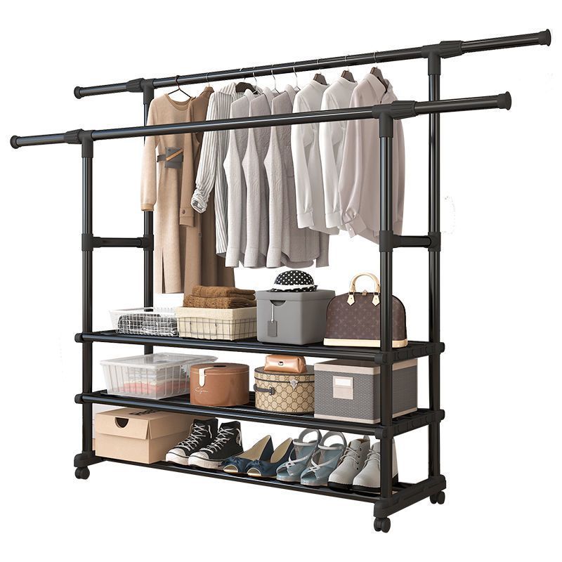 플라스틱 조립식 접이식 간편 이동식 옷걸이 건조대 바퀴 달린 옷걸이