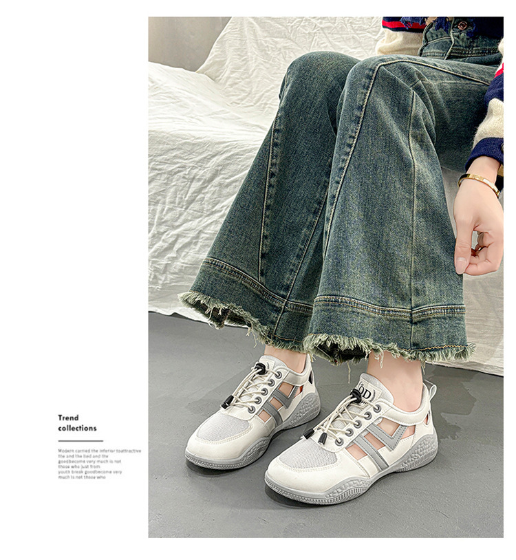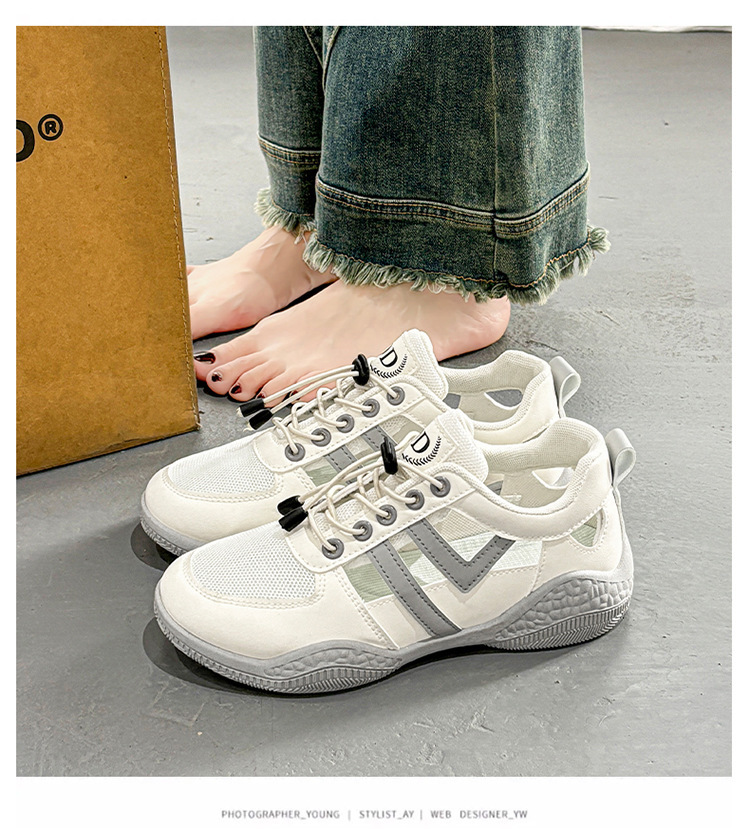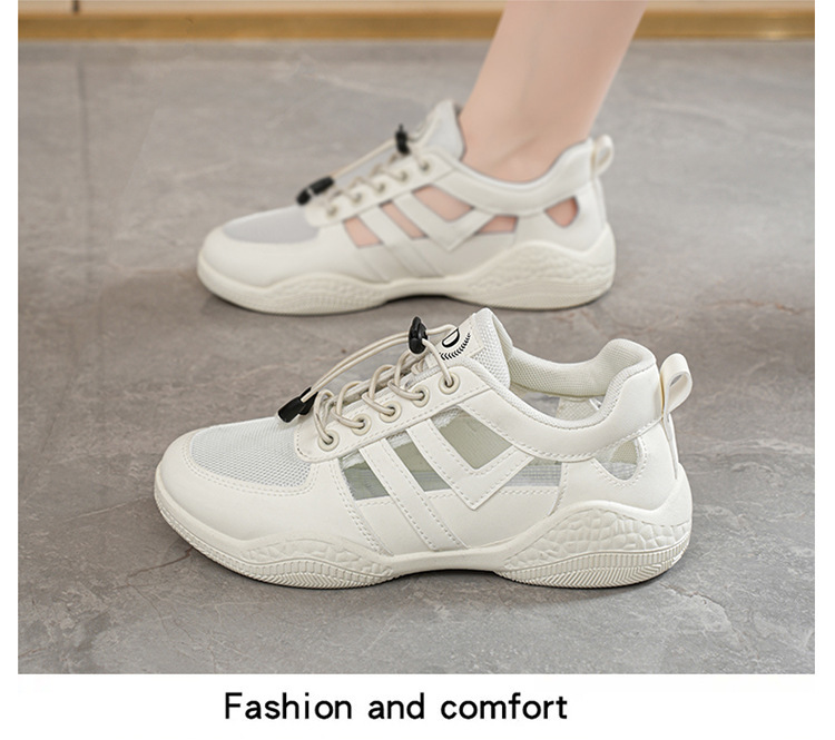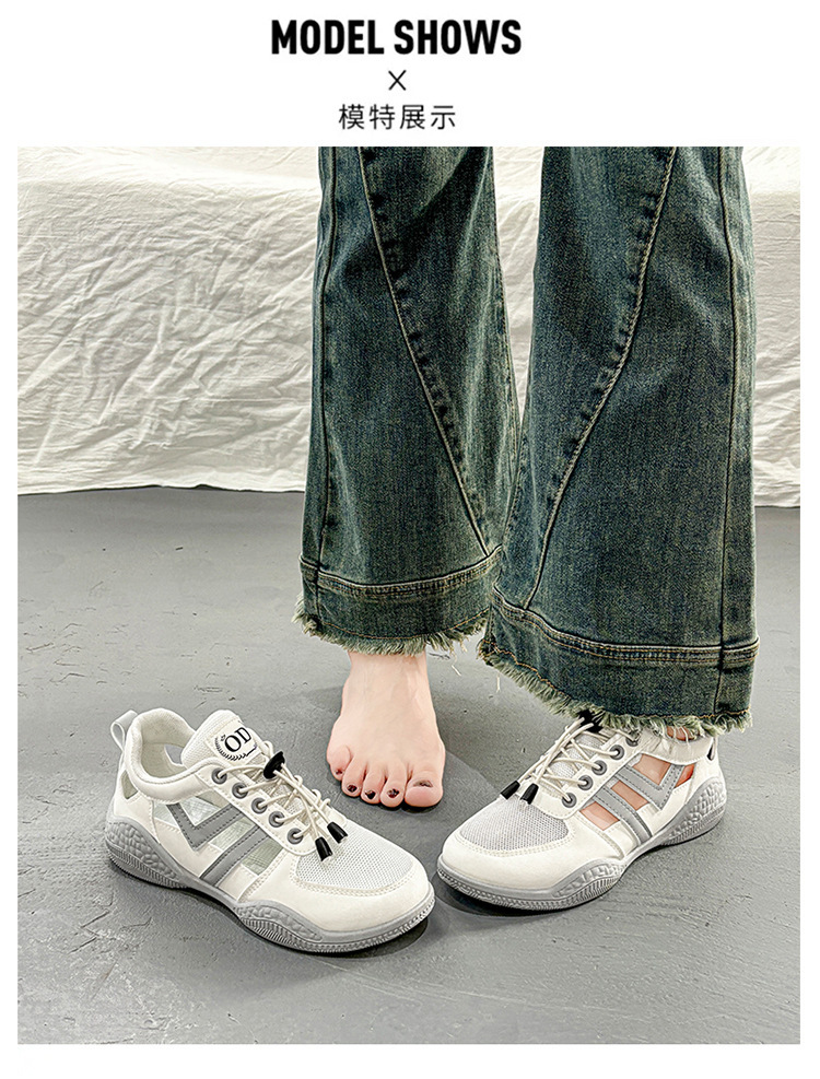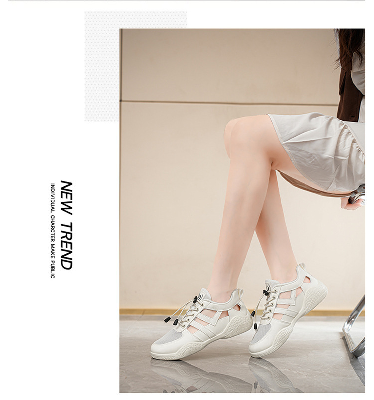 2025 여름 여성 신발 새로운 통기성 메쉬 신발 할로우 샌들 여성 한국식 올매치 스포츠 캐주얼 화이트 슈즈 여성 트렌디
