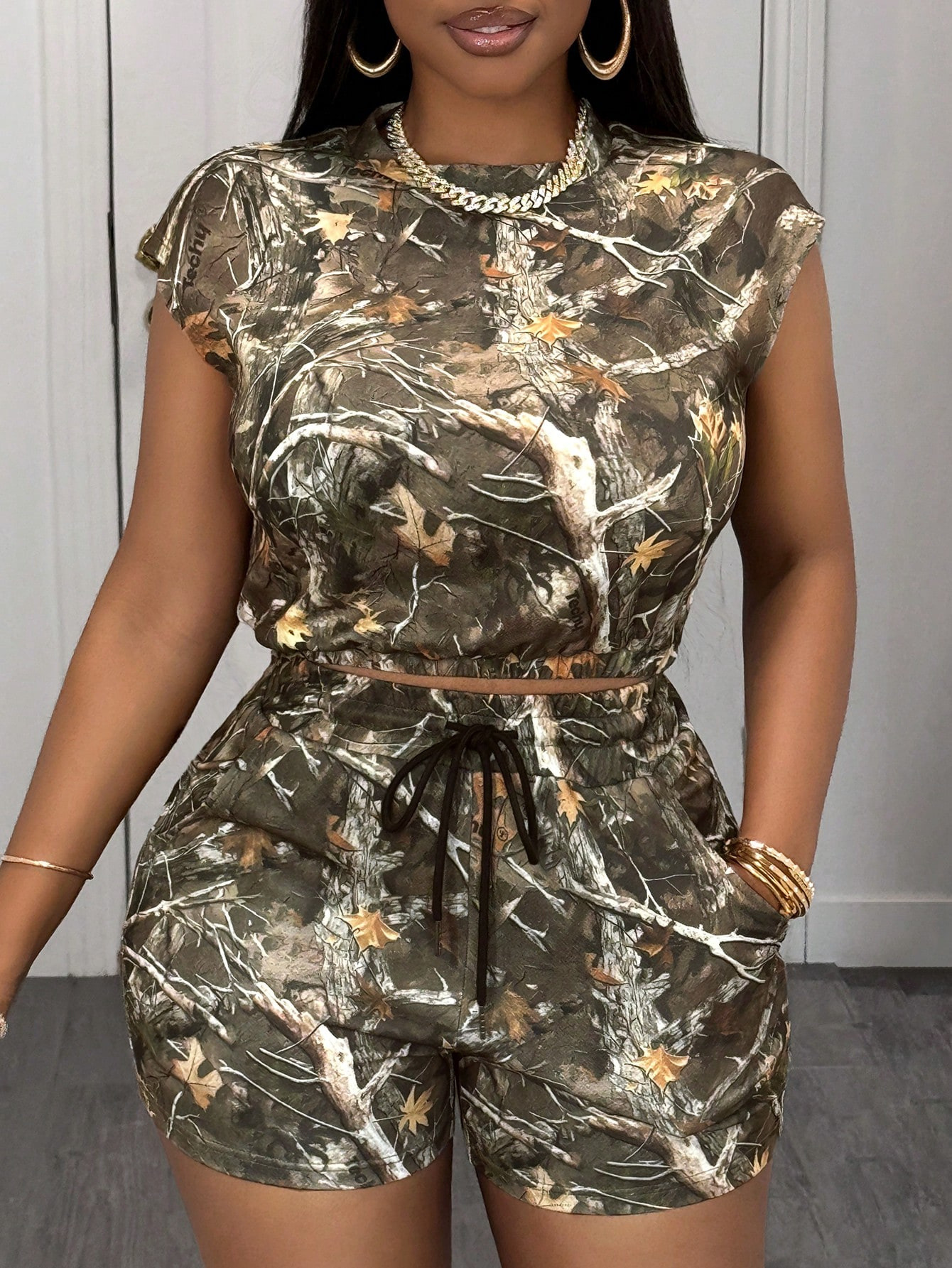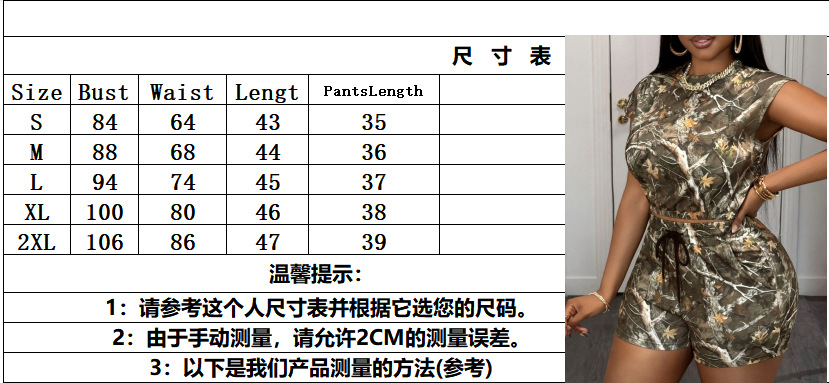 Amazon 2025 새로운 크로스보더 패션 캐주얼 스포츠 스타일 프린트 민소매 조끼 탑 반바지 투피스 세트