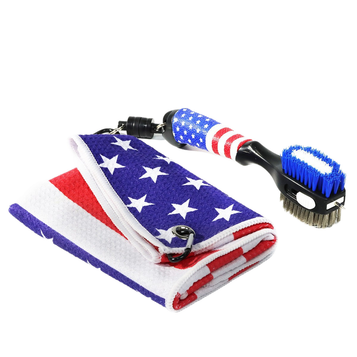 인기 있는 국경 간 골프 타월 골프 브러시 청소 세트 미국 국기 세트 클리너 브러시