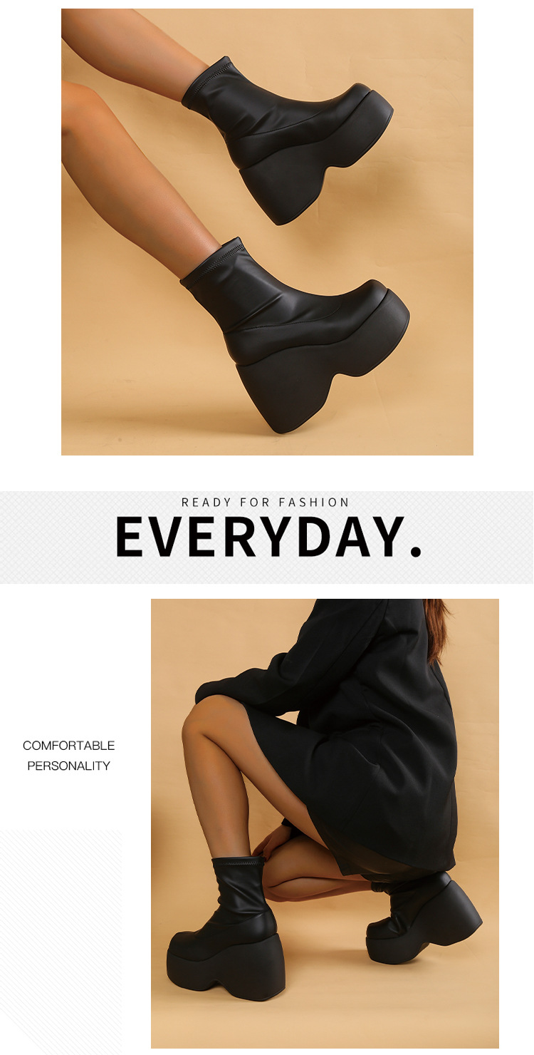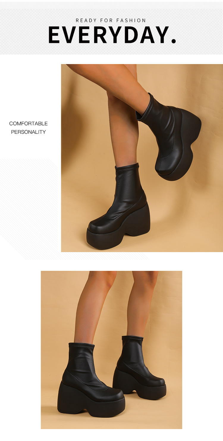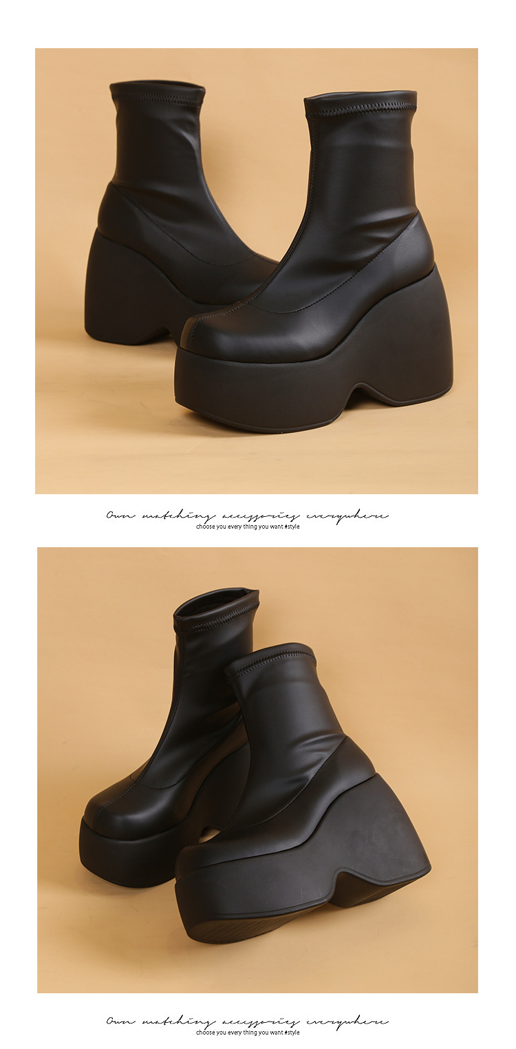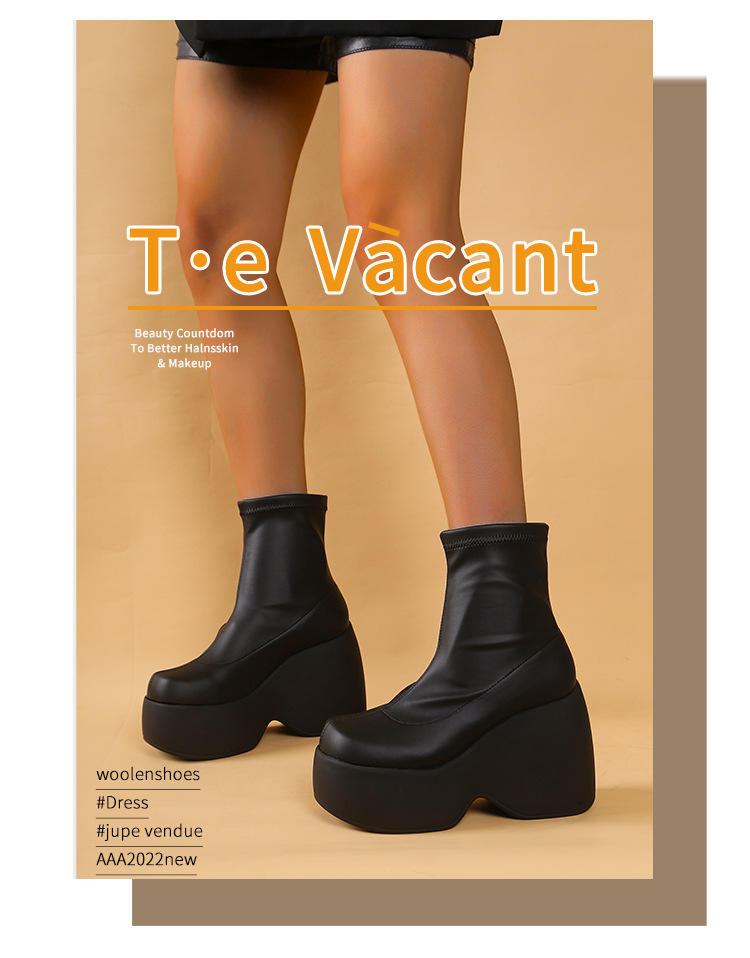 플러스 사이즈 단일 대외 무역 두꺼운 바닥 부츠 새로운 유럽과 미국의 웨지 힐 두꺼운 하단 짧은 부츠 여성 대외 무역 바닥 부츠