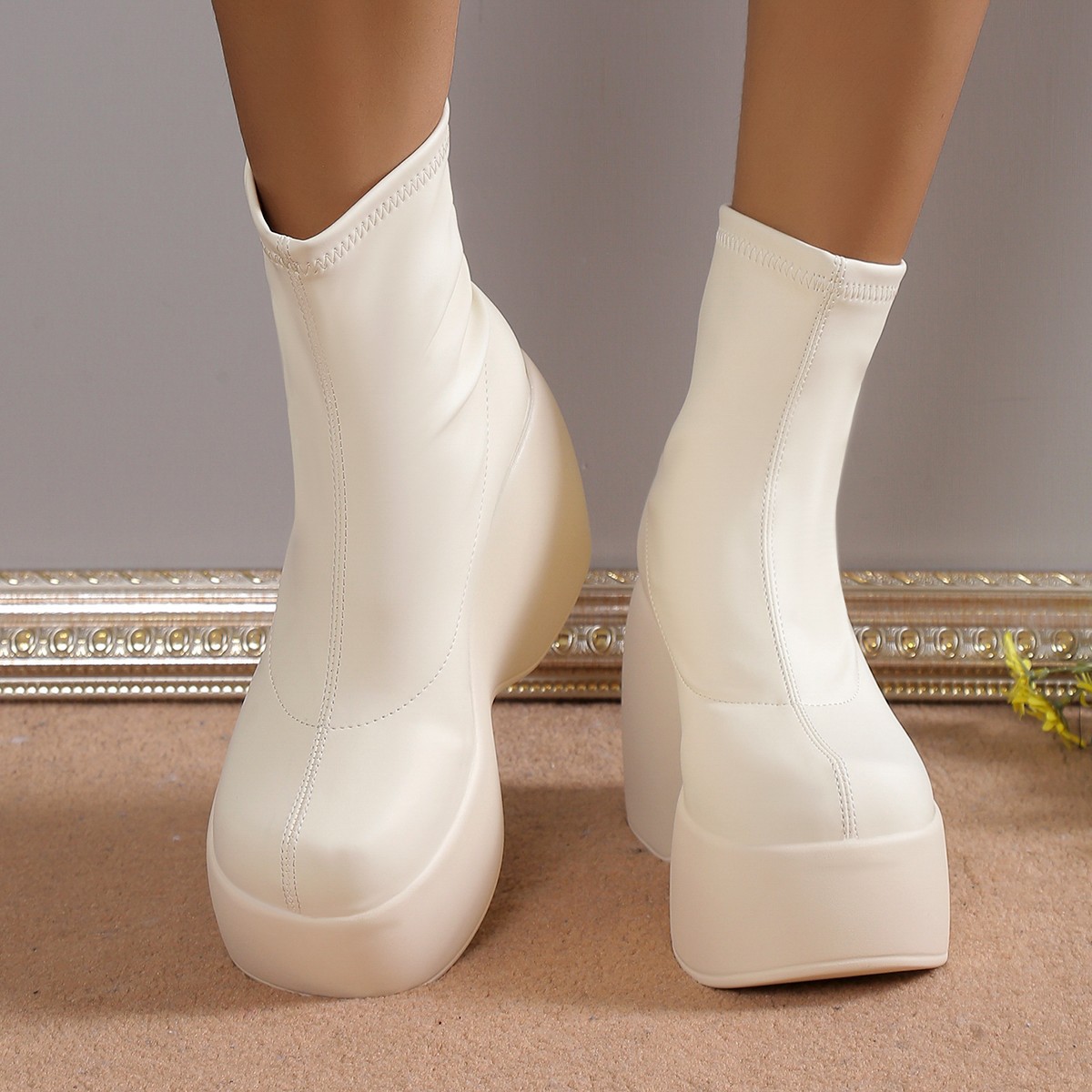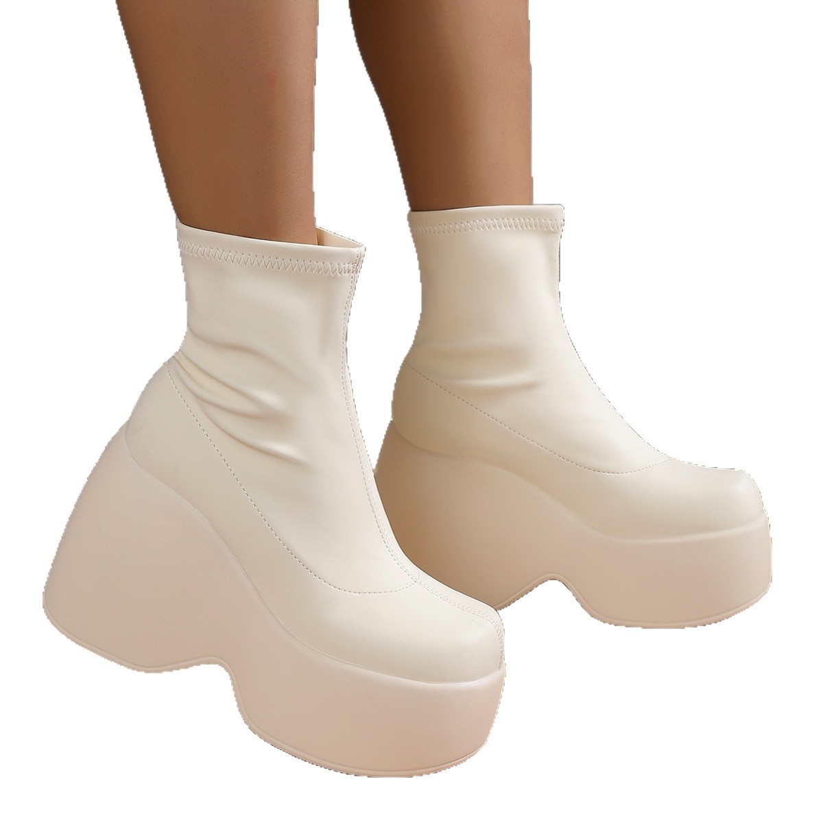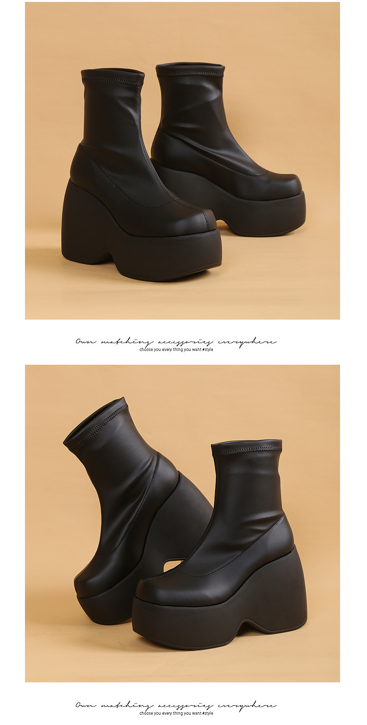플러스 사이즈 단일 대외 무역 두꺼운 바닥 부츠 새로운 유럽과 미국의 웨지 힐 두꺼운 하단 짧은 부츠 여성 대외 무역 바닥 부츠