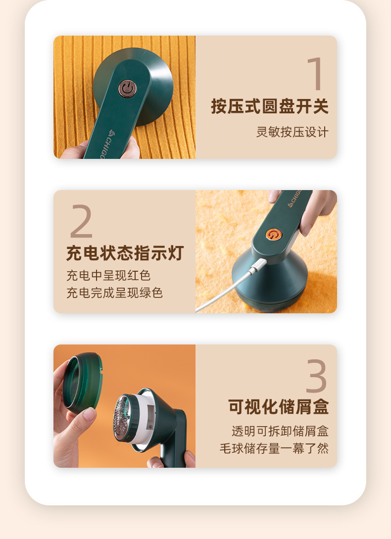 Chigo 보풀 트리머, 가정용 보풀 제거 도구, 충전식 의류 보풀 제거기, 스크래퍼, 흡입 면도기