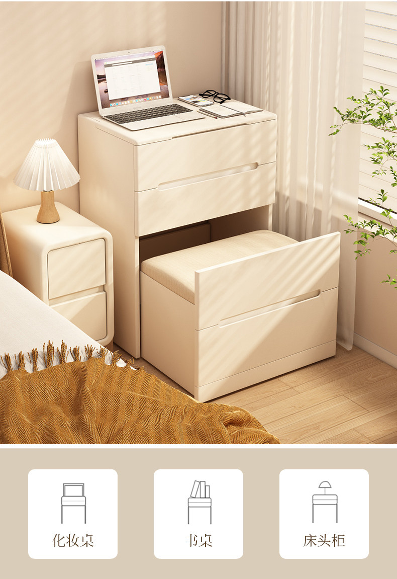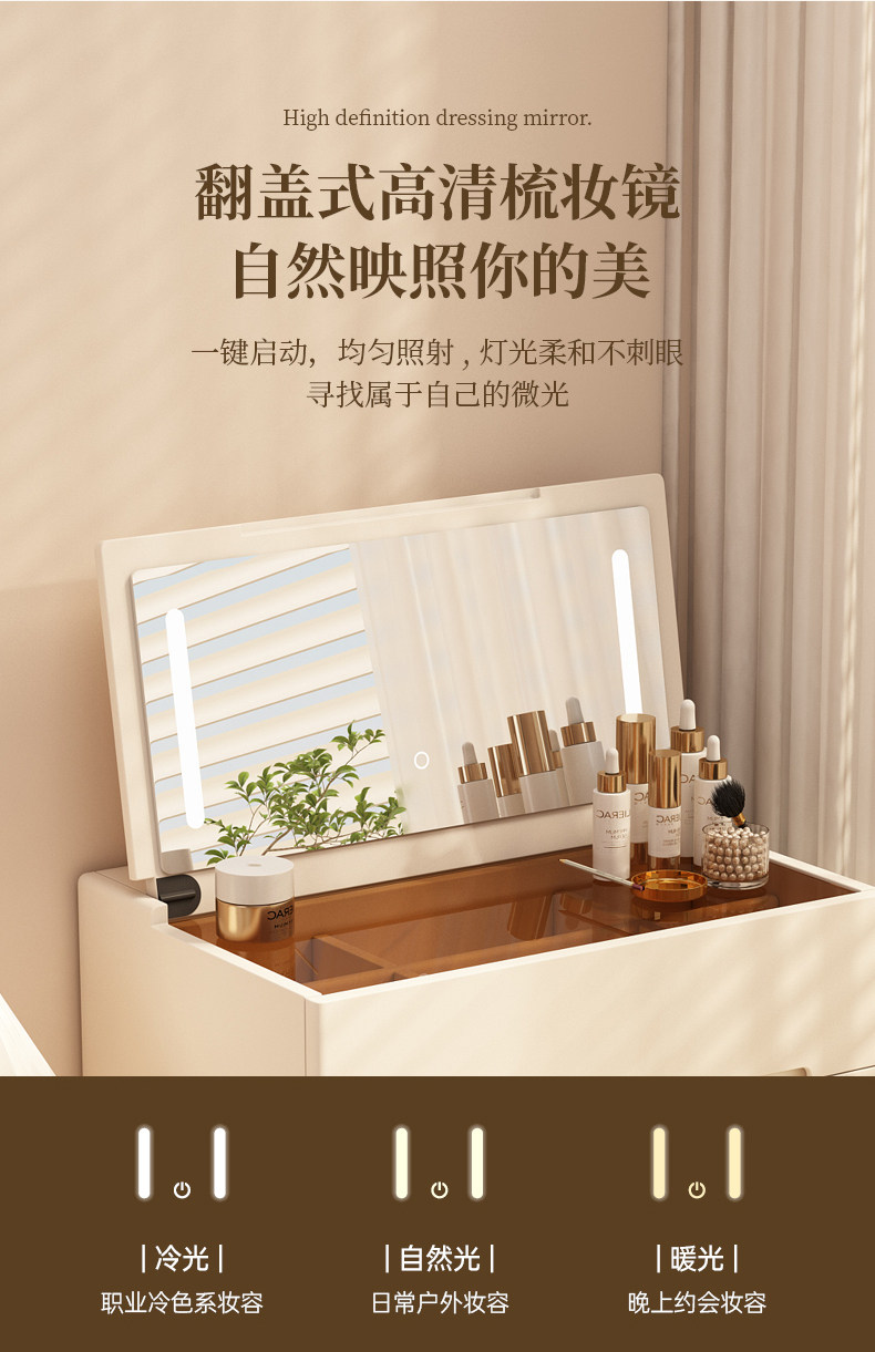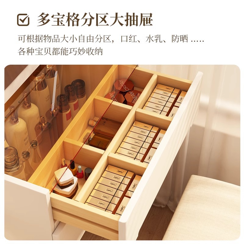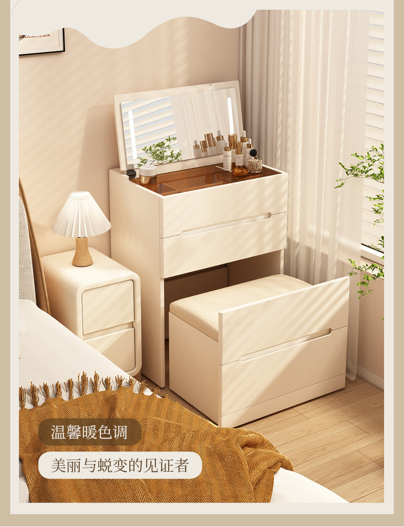 단단한 나무 드레싱 테이블 작은 크림 스타일 메이크업 테이블 침실 현대 간단한 미니 플립 탑 보관 캐비닛