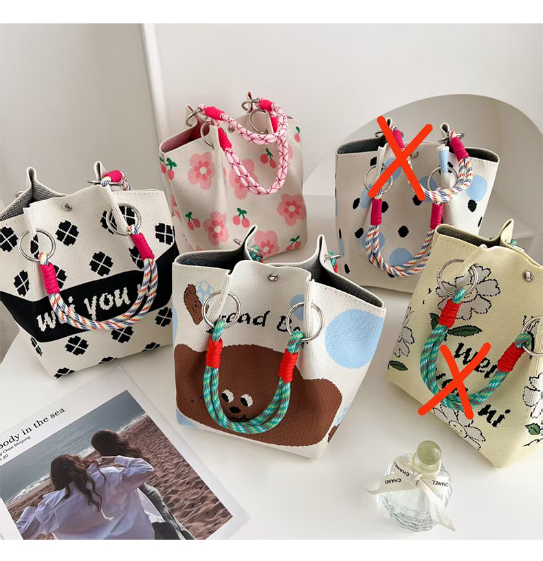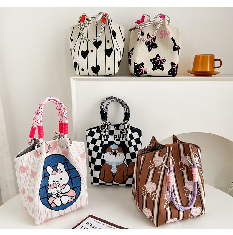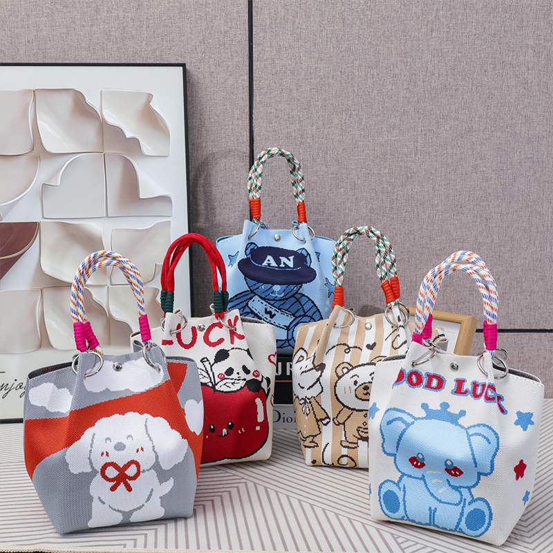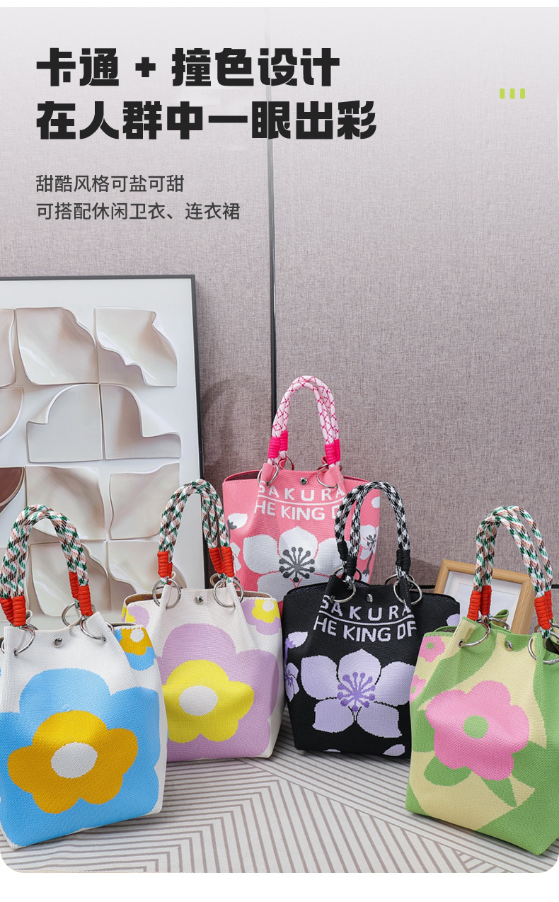 한국판 인스타 감성 니트 핸드폰 가방, 새로운 여름 핸드백, 동전 지갑, 스트리트 스타일 여성 버킷백