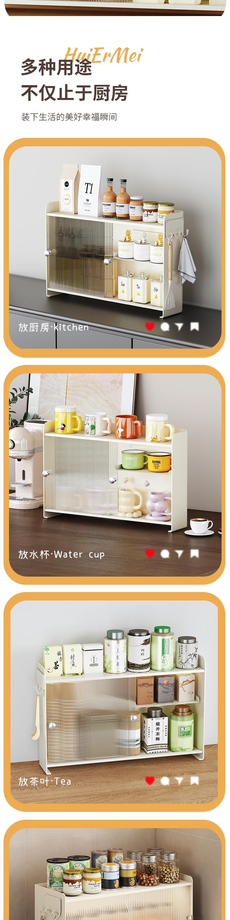 아크릴 슬라이딩 도어 수납 선반, 가벼운 고급 화장품 수납 선반, 차 커피 캔, 물컵 수납 선반