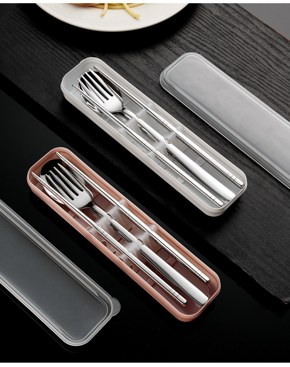 304 스틸 [핑크] 숟가락 + 포크 + 젓가락 + 상자