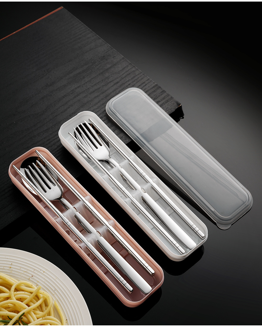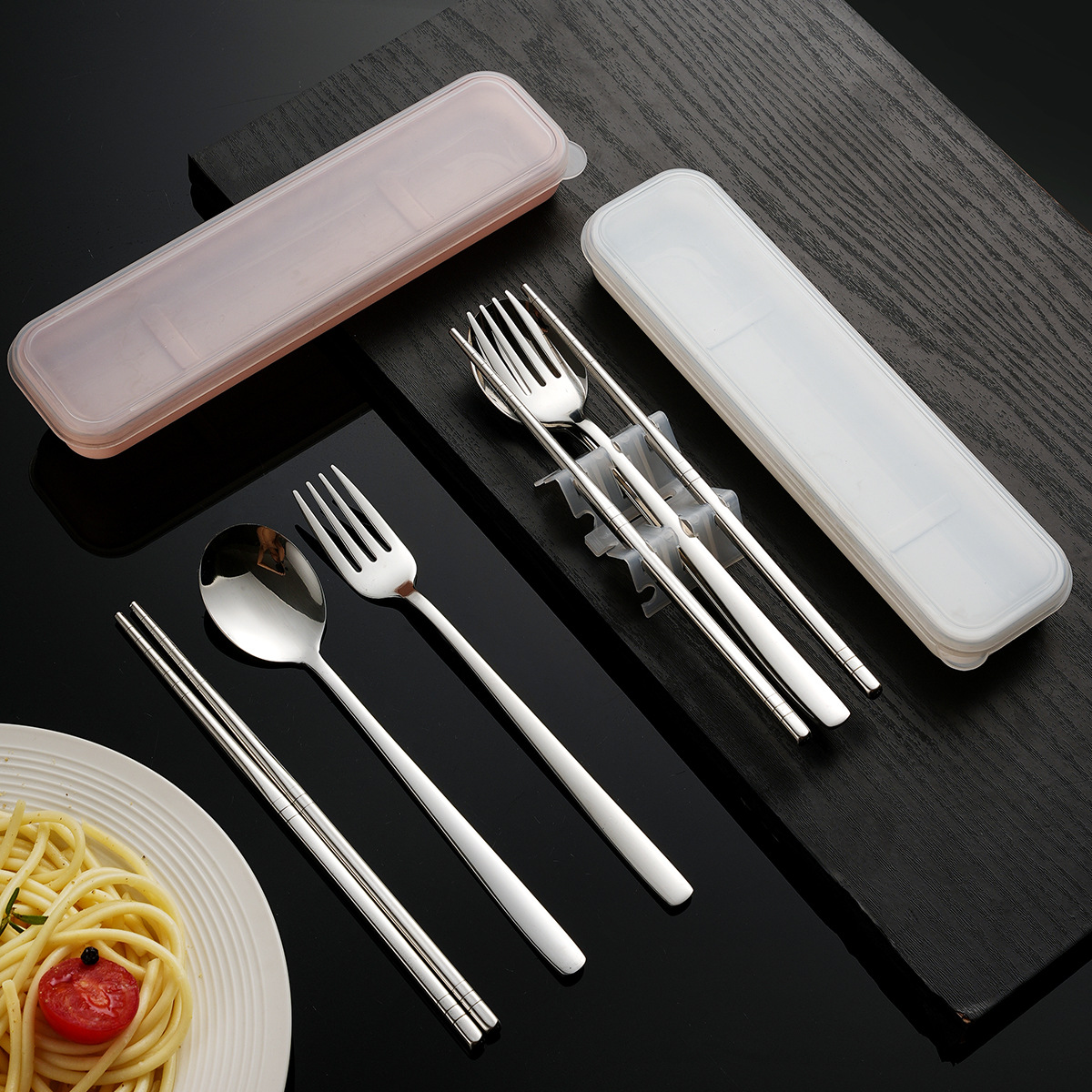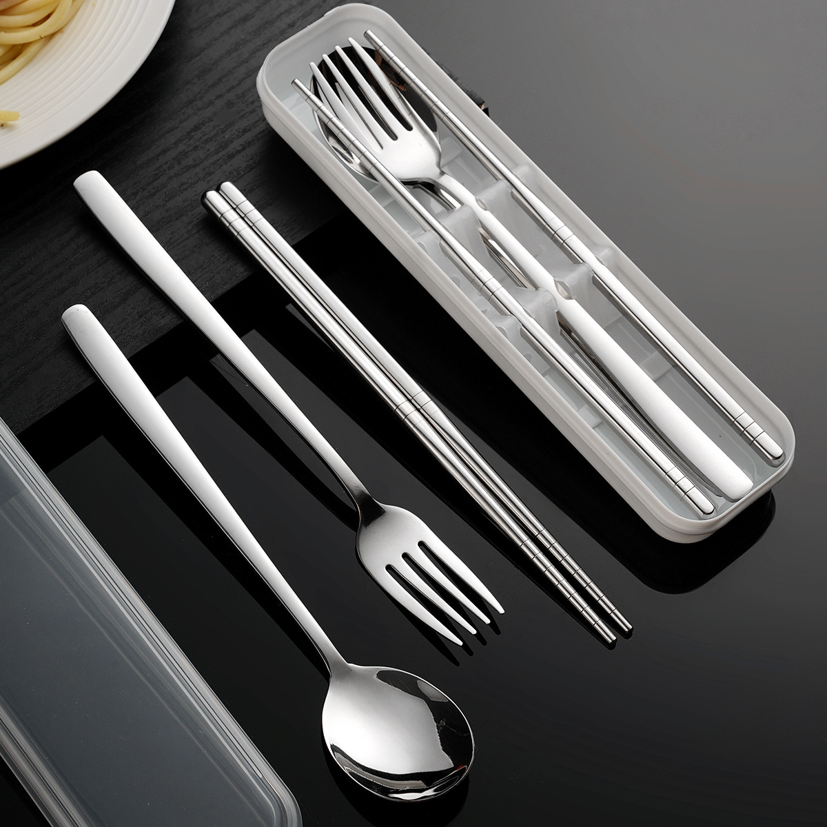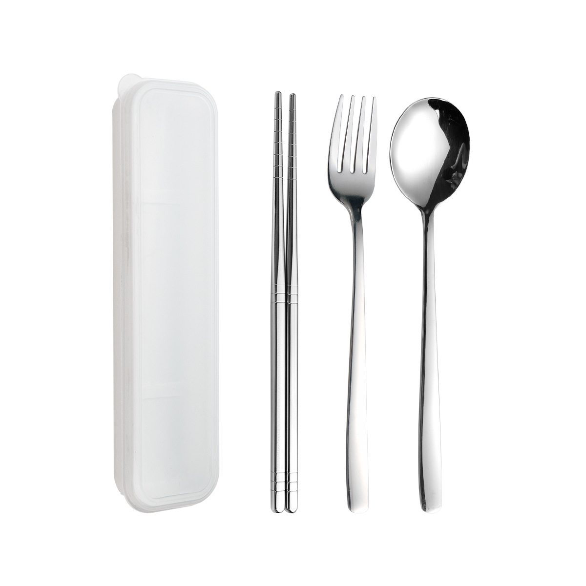 무료 배송 Tianlin 304 휴대용 스테인레스 스틸 식기 스푼 포크 젓가락 3 피스 세트 학생 야외 판촉 선물