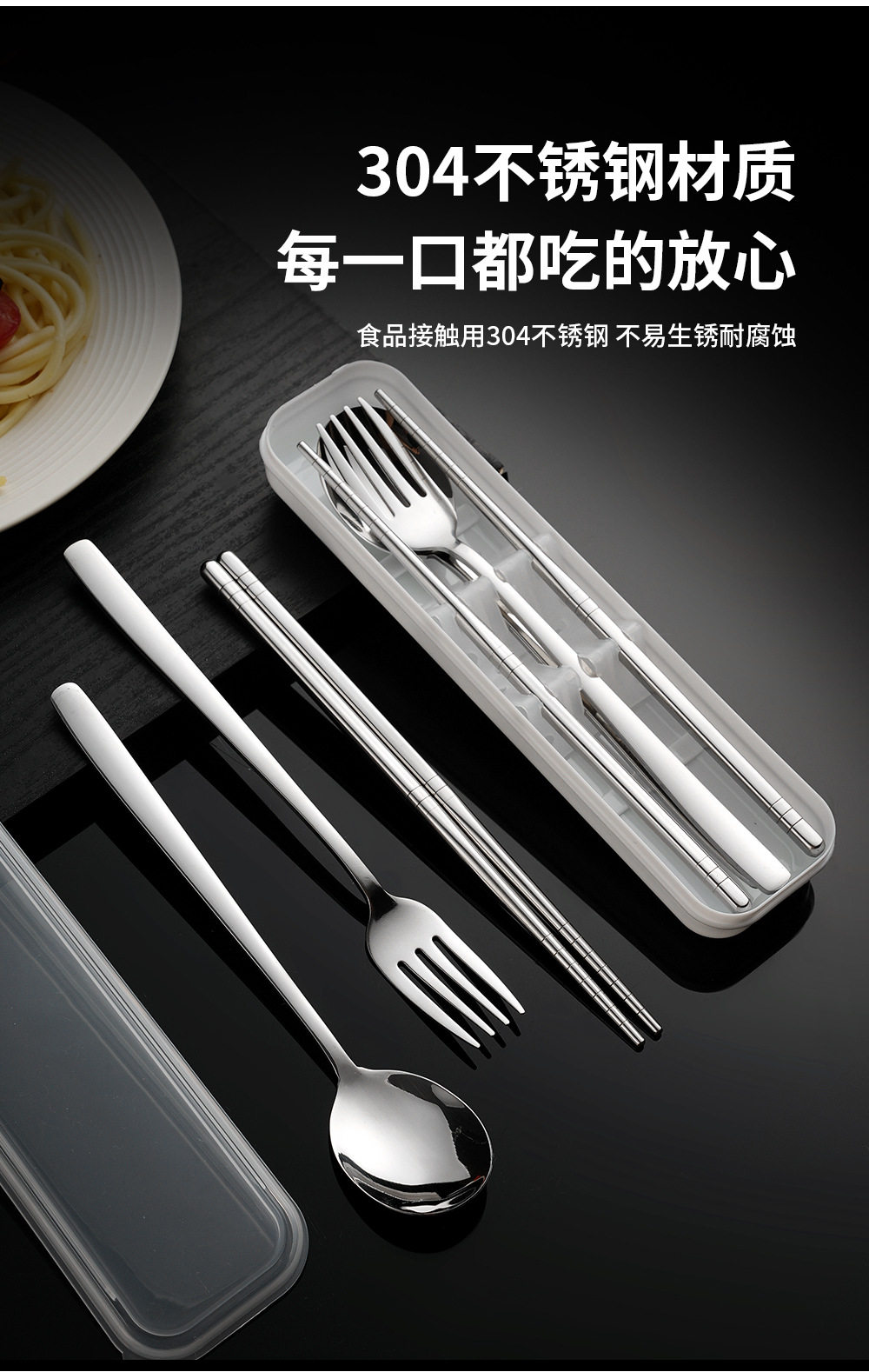 304 스틸 [화이트] 숟가락 + 포크 + 젓가락 + 상자