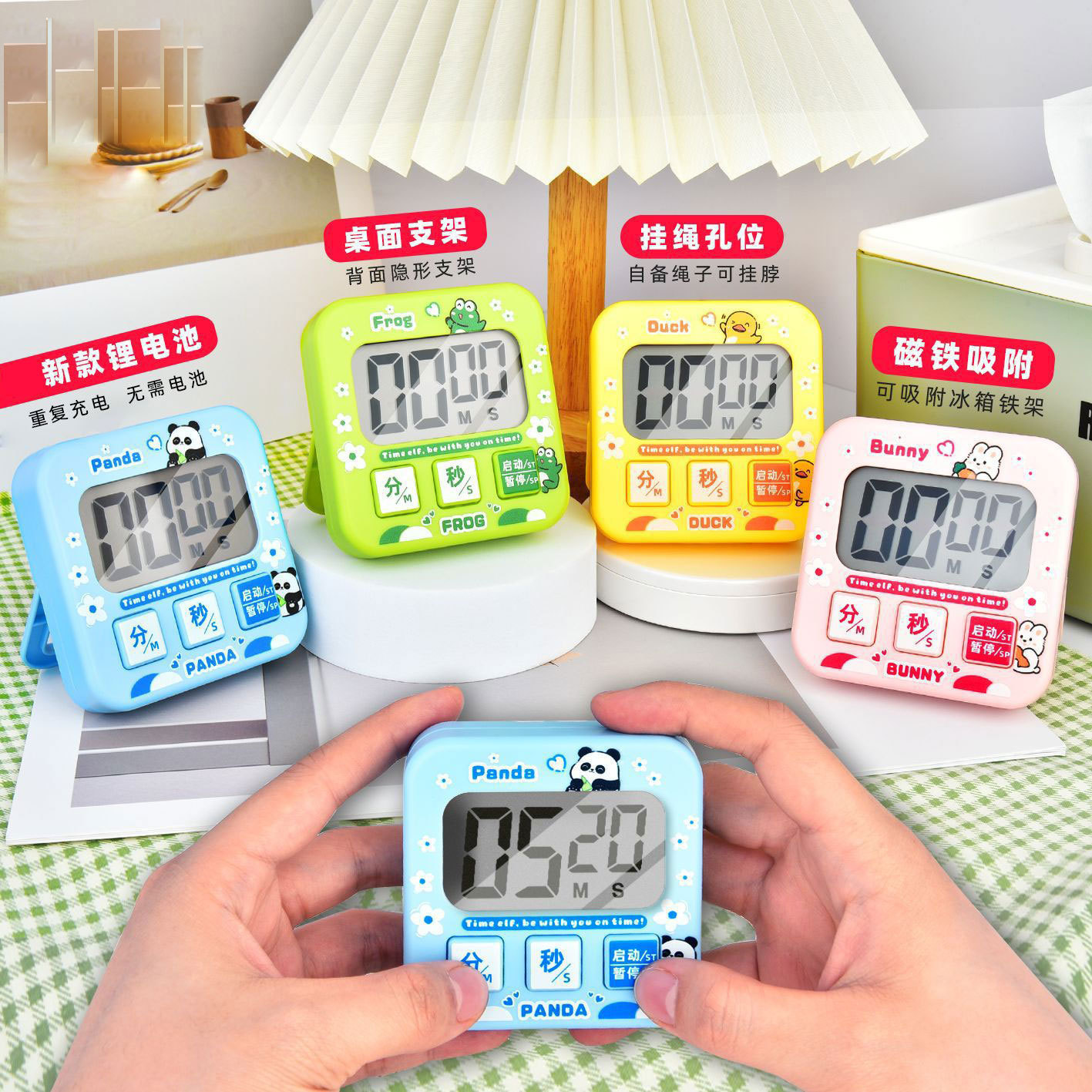 만화 개구리 병아리 학생 학습 전자 타이머 충전식 주방 베이킹 타이머 낮잠 알림