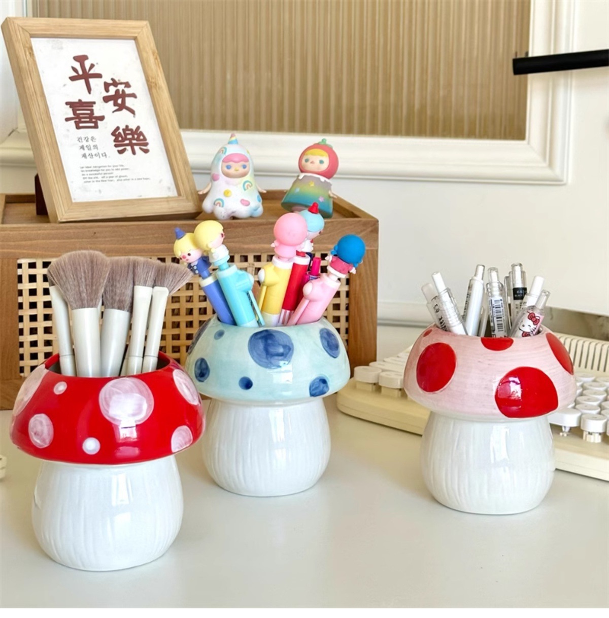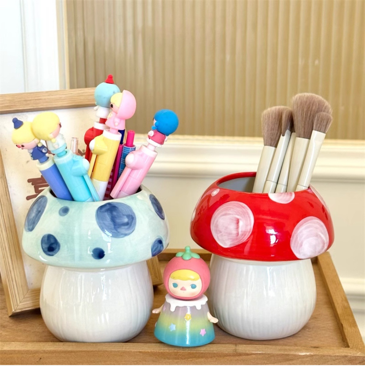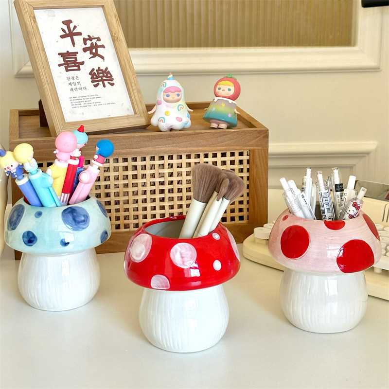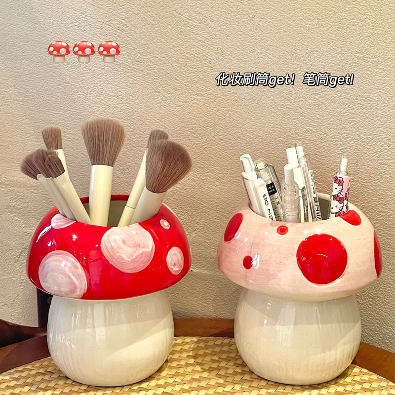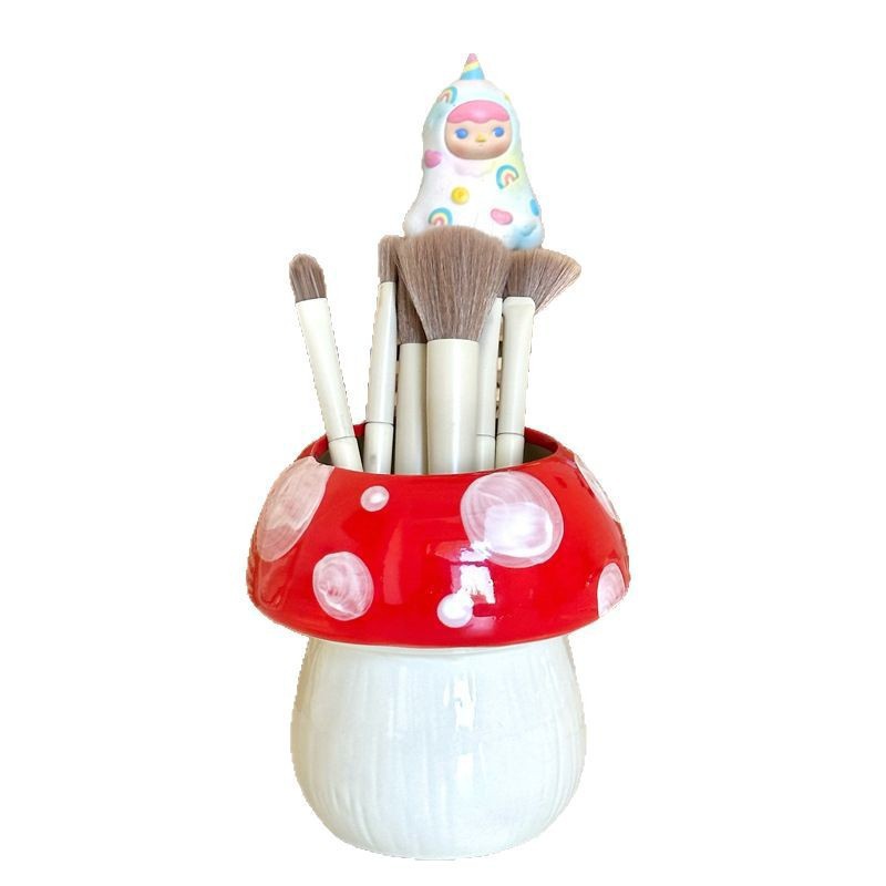비닐 버섯 펜 홀더 ins 고가치 데스크탑 메이크업 브러쉬 버킷 사무실 문구 보관함 크리 에이 티브 작은 장식품