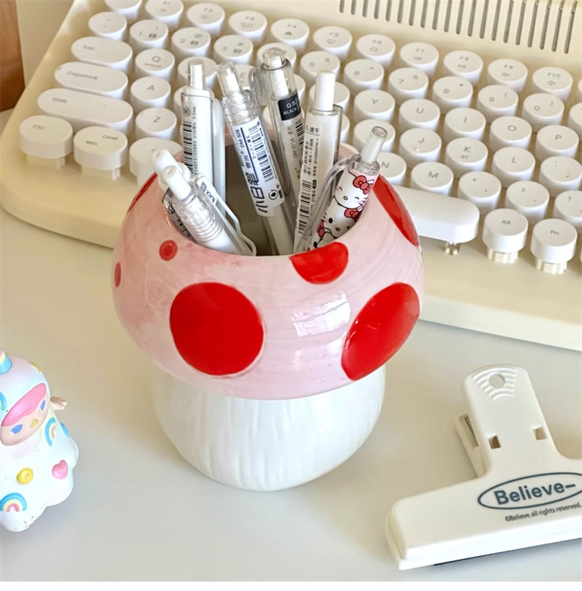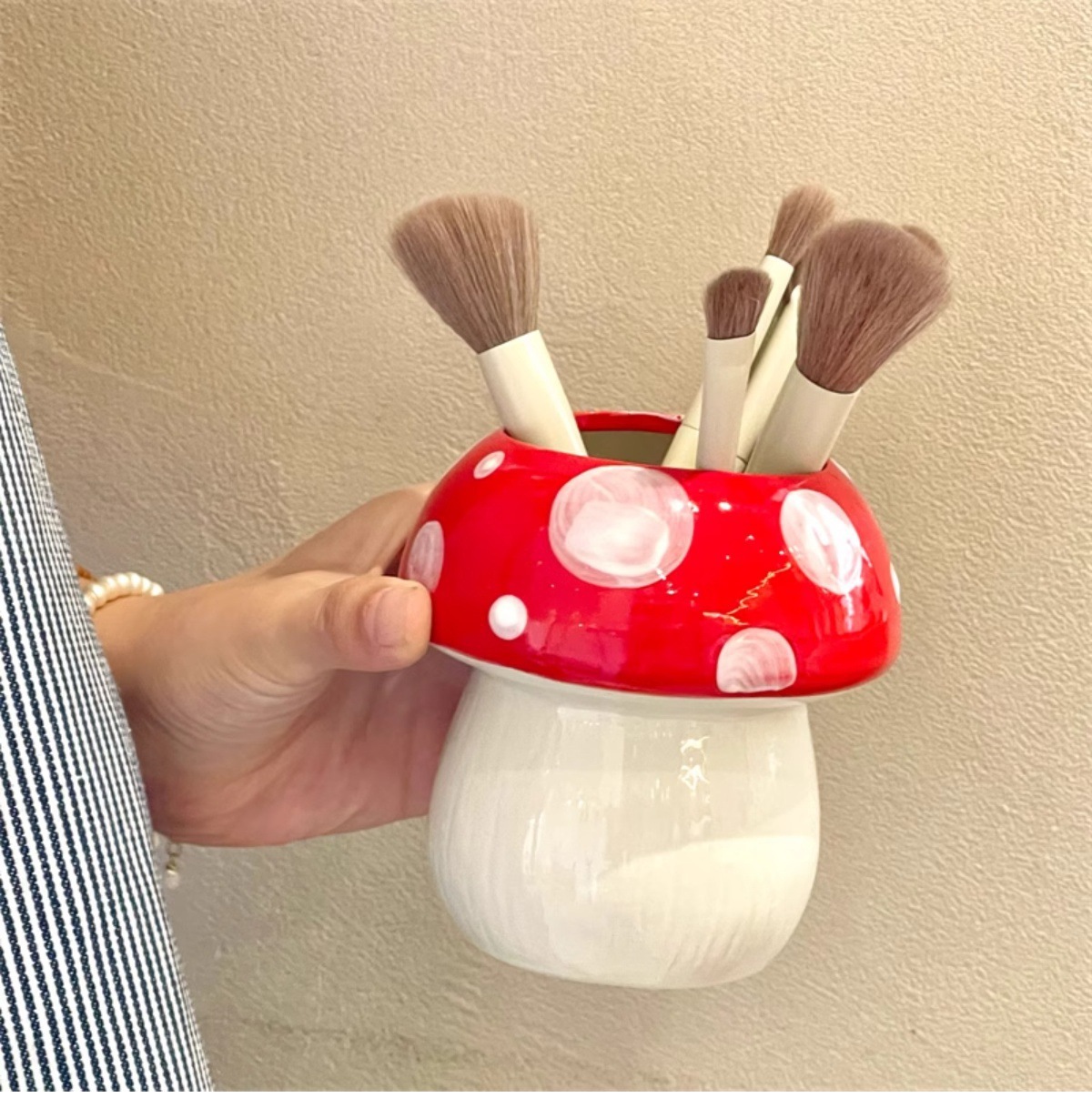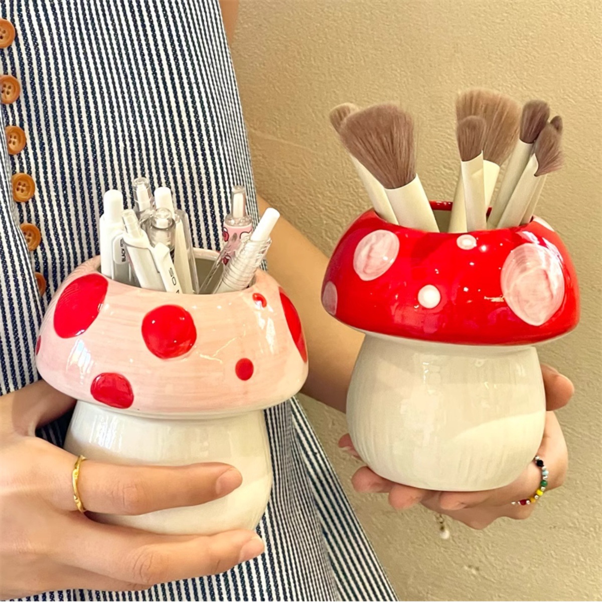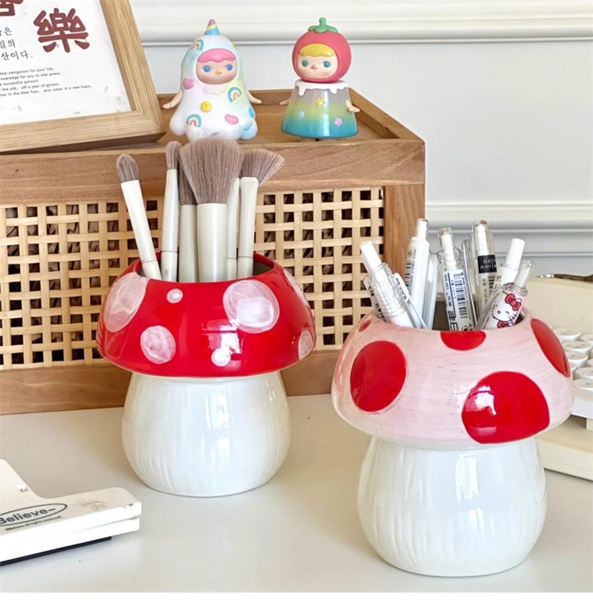 비닐 버섯 펜 홀더 ins 고가치 데스크탑 메이크업 브러쉬 버킷 사무실 문구 보관함 크리 에이 티브 작은 장식품