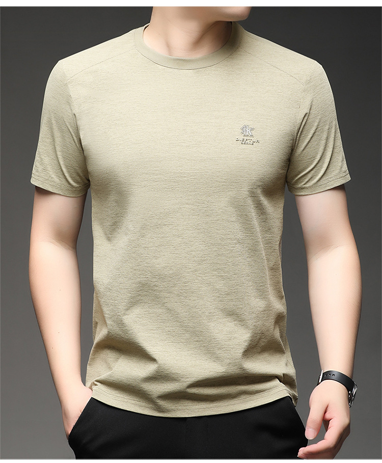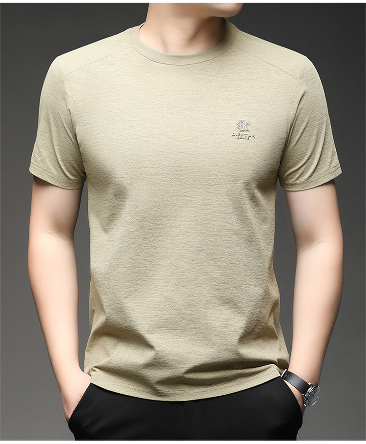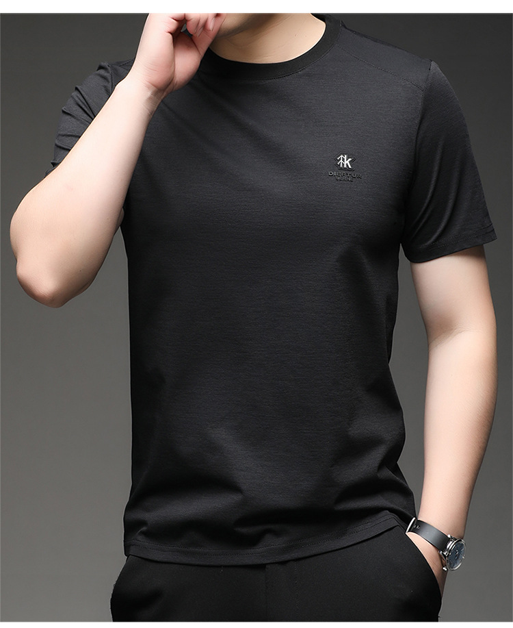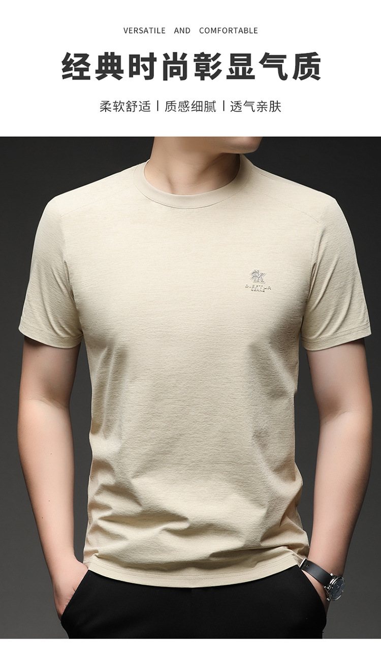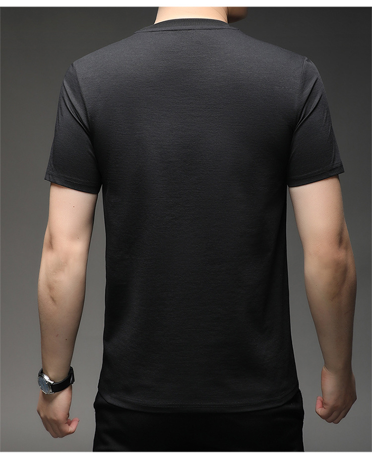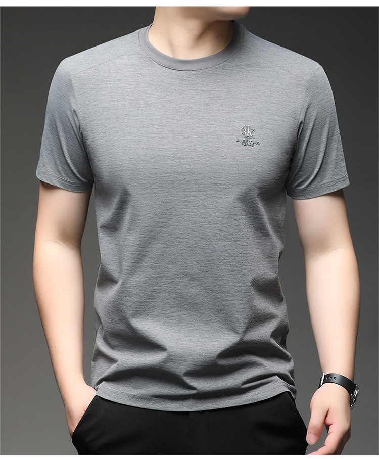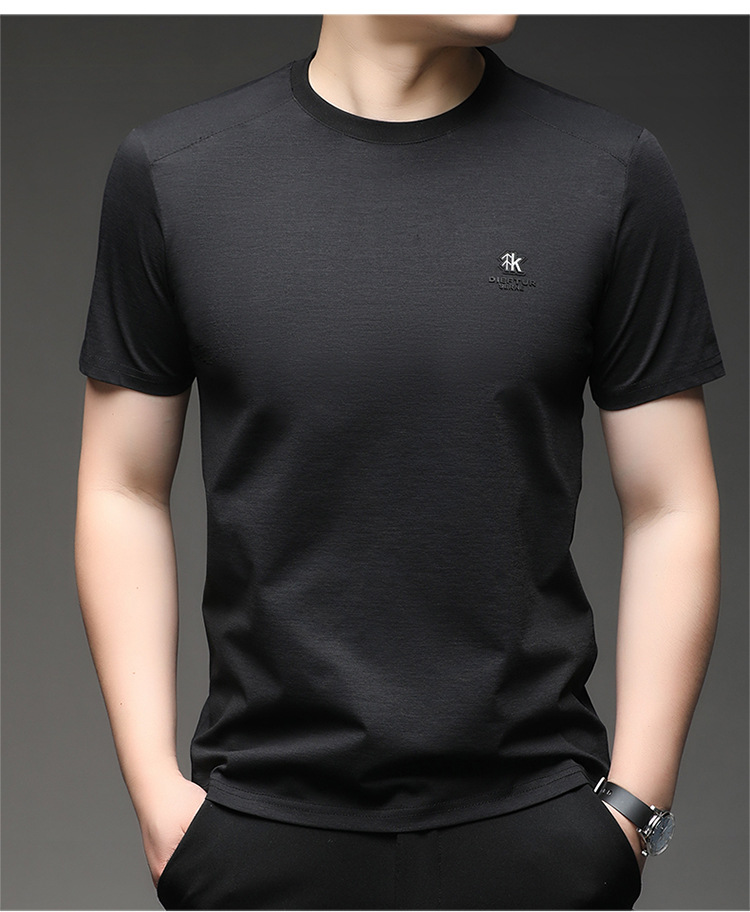 뽕나무 실크 반팔 티셔츠 남성용 둥근 목 여름 고급 남성용 캐주얼 루즈 땀 흡수성 통기성 유행베이스 티셔츠