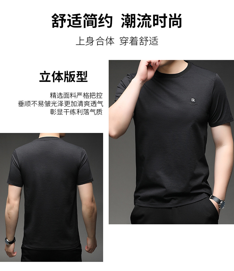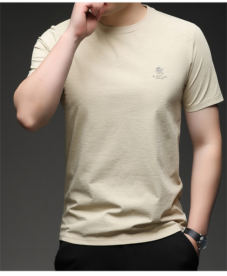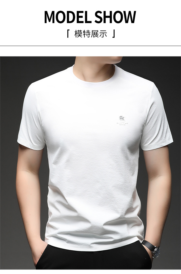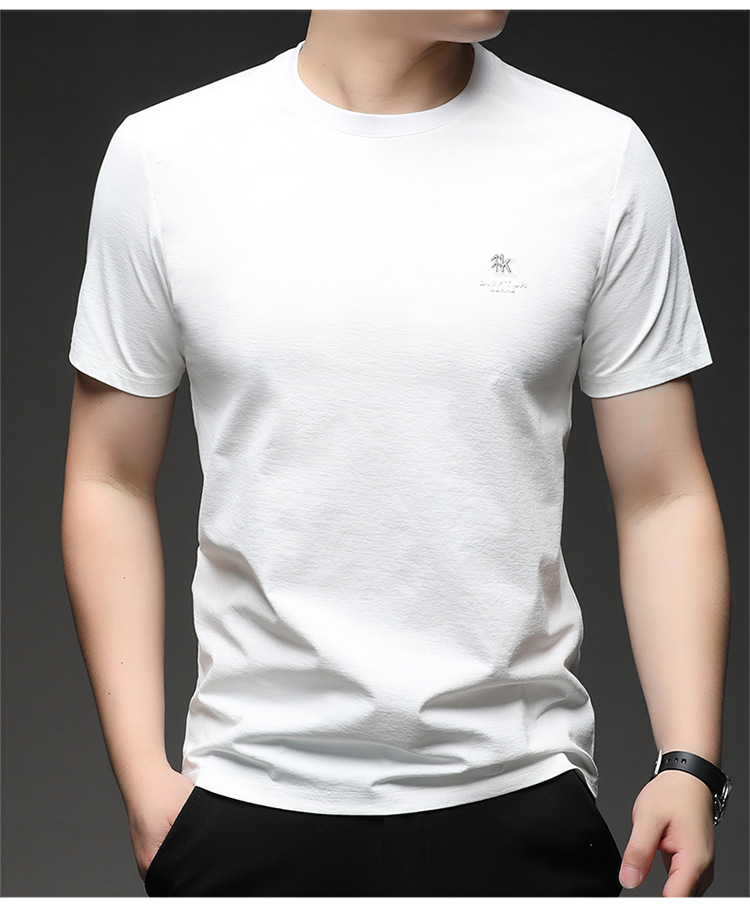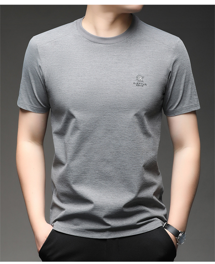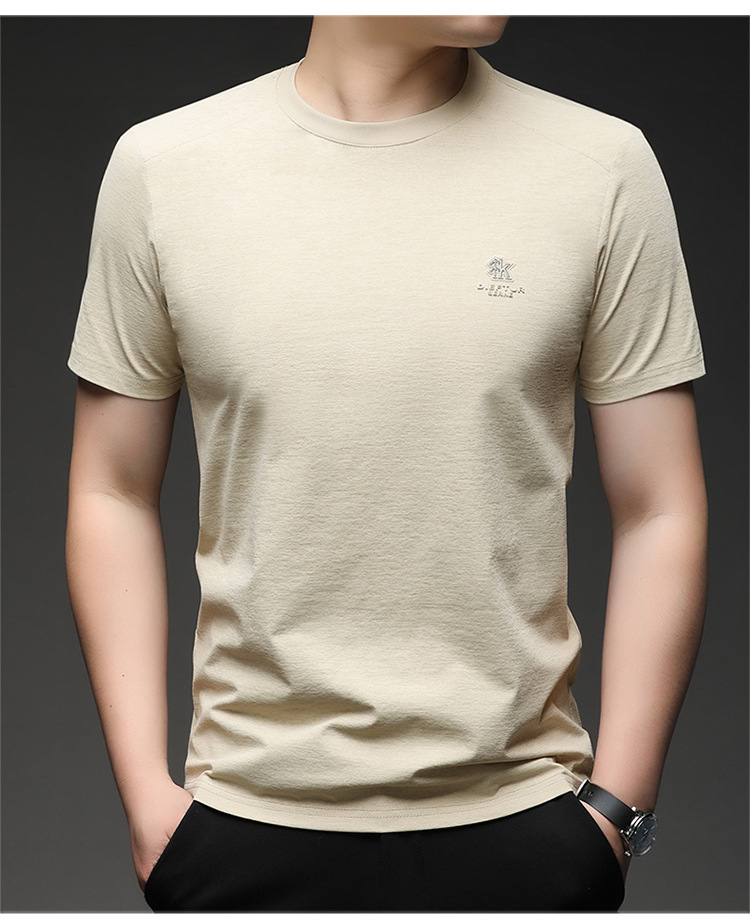 뽕나무 실크 반팔 티셔츠 남성용 둥근 목 여름 고급 남성용 캐주얼 루즈 땀 흡수성 통기성 유행베이스 티셔츠