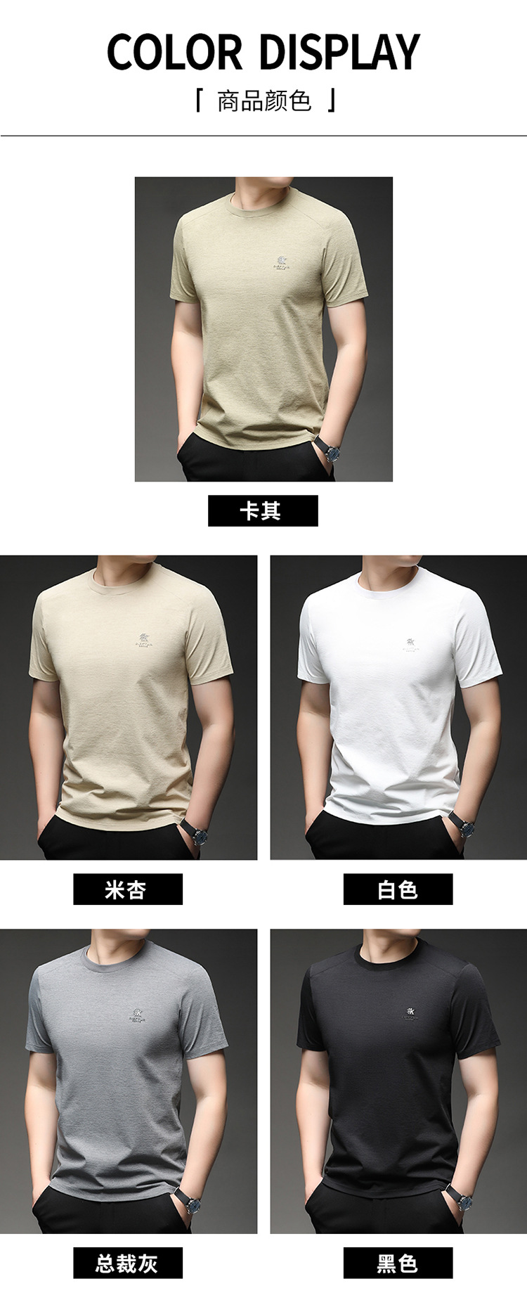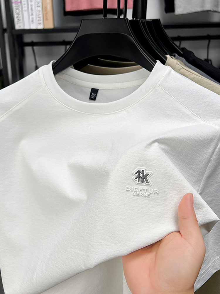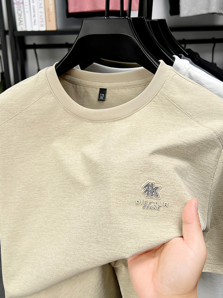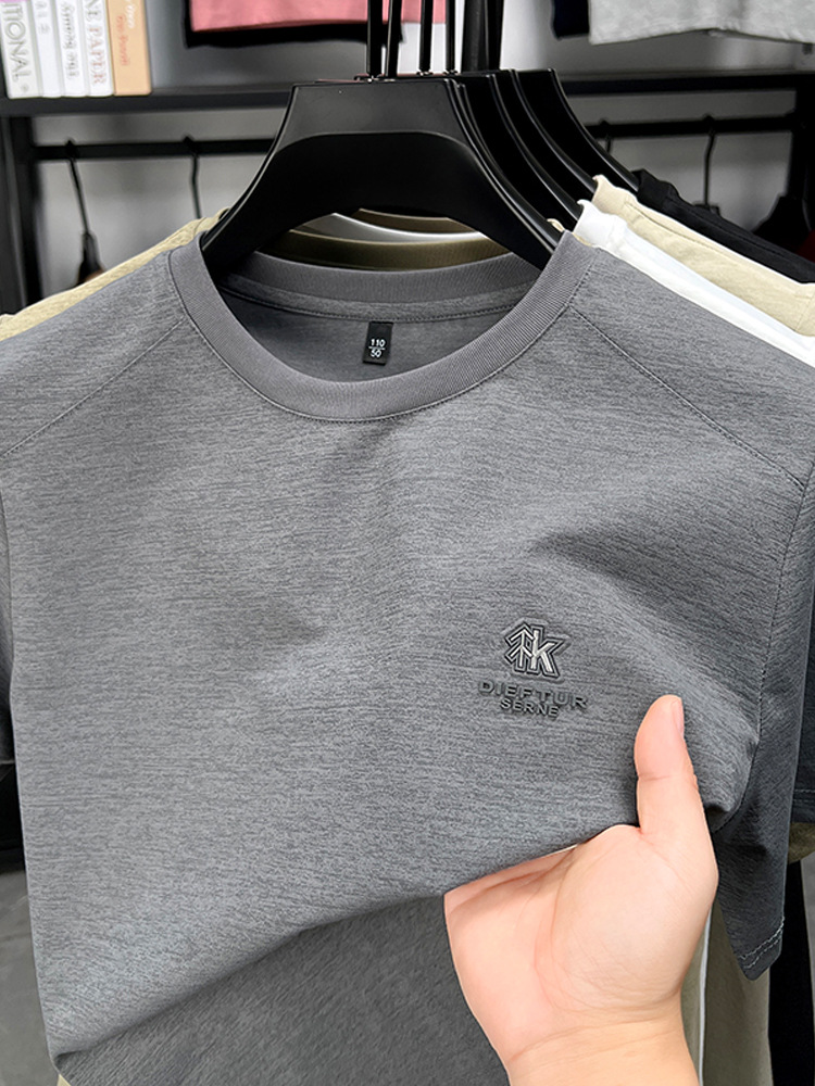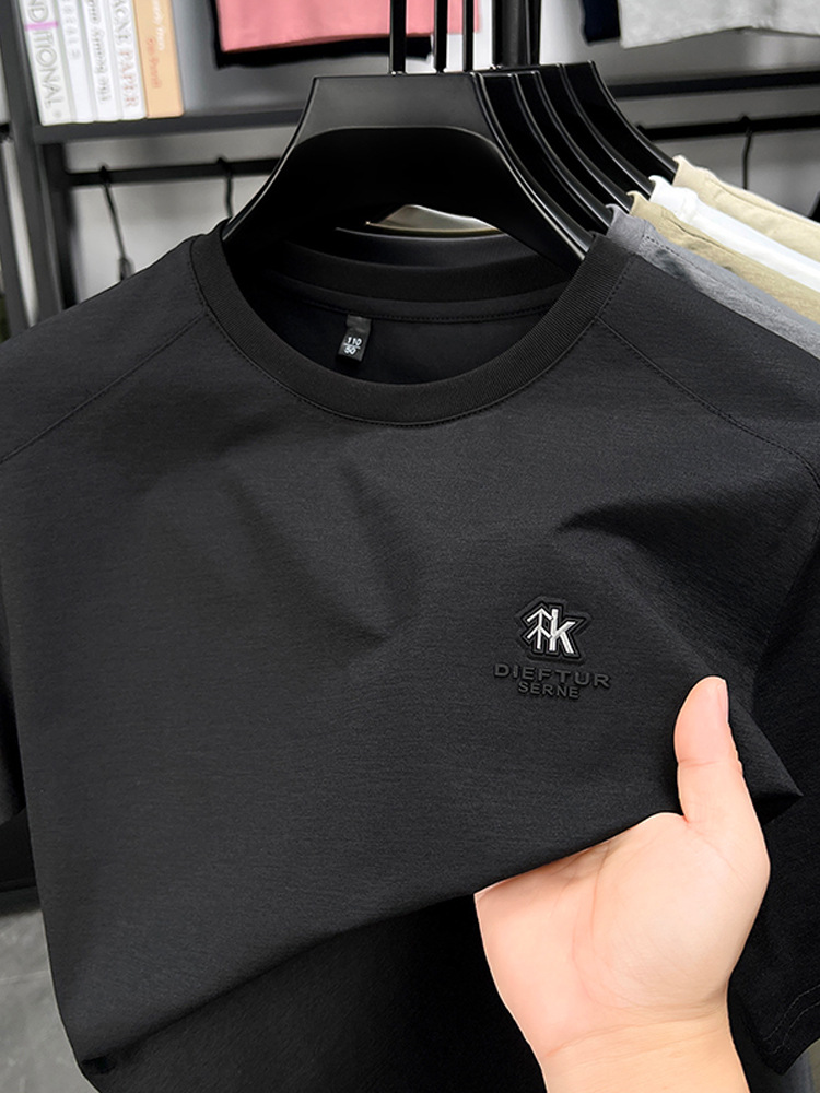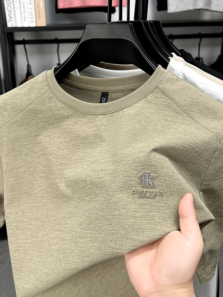 뽕나무 실크 반팔 티셔츠 남성용 둥근 목 여름 고급 남성용 캐주얼 루즈 땀 흡수성 통기성 유행베이스 티셔츠