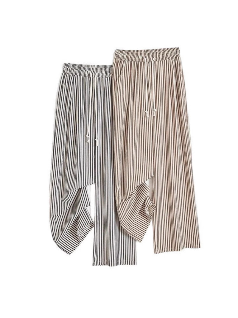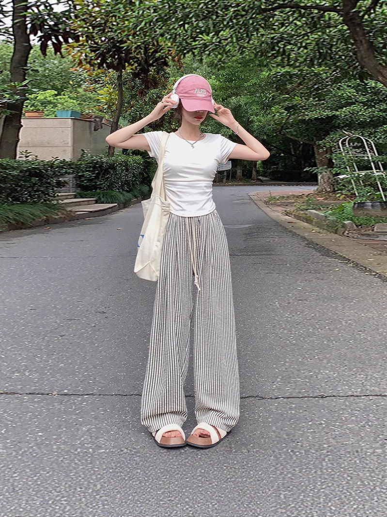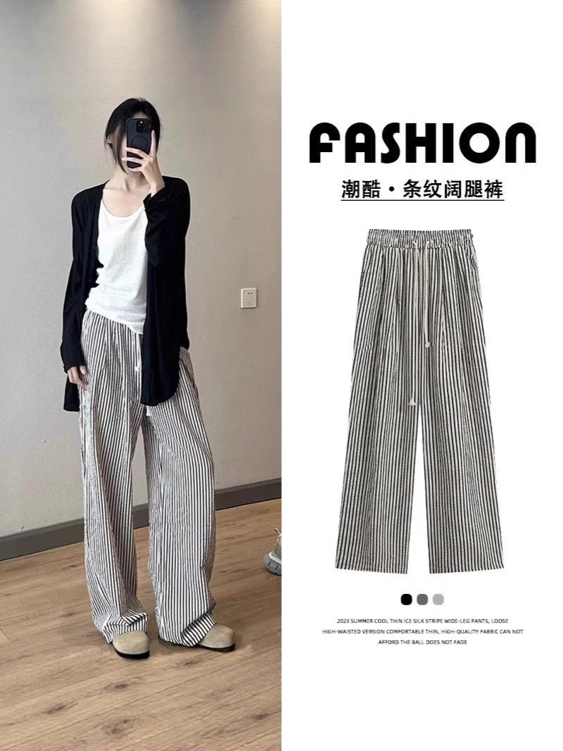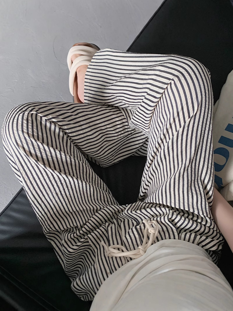 대외 무역 가방이없는 트렌디 한 흑백 수직 스트라이프 와이드 레그 팬츠 여성의 여름 얇은 수직 스트레이트 팬츠 올 매치 슬리밍 캐주얼