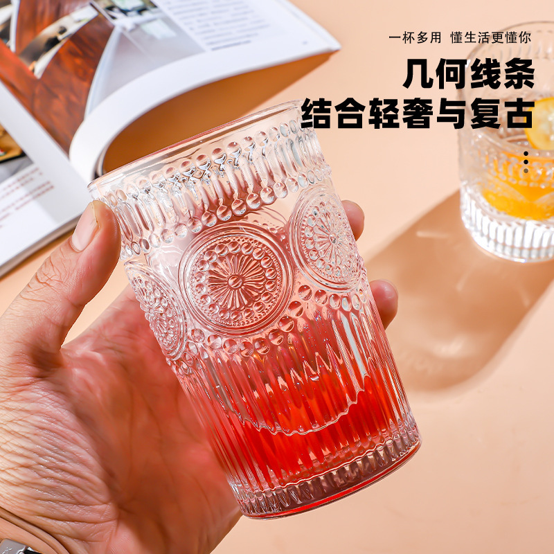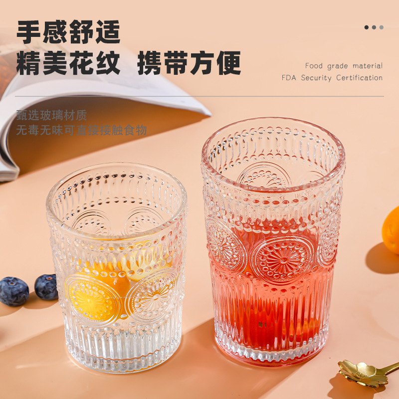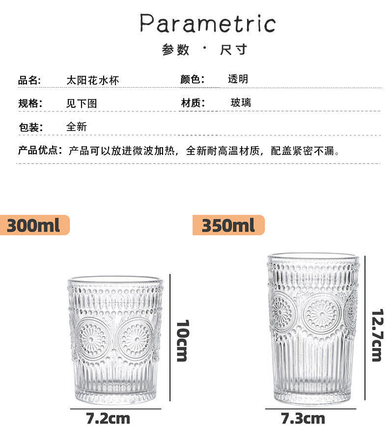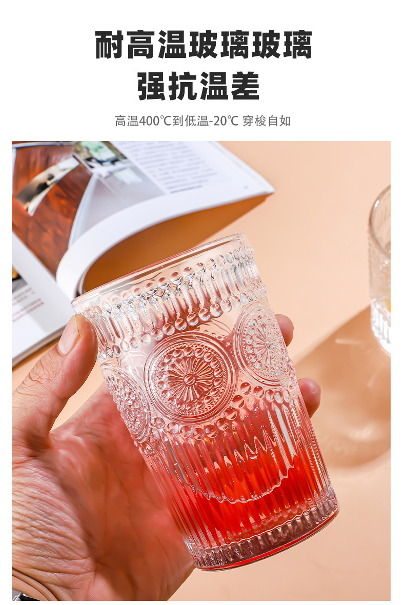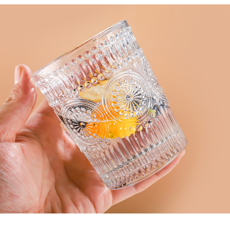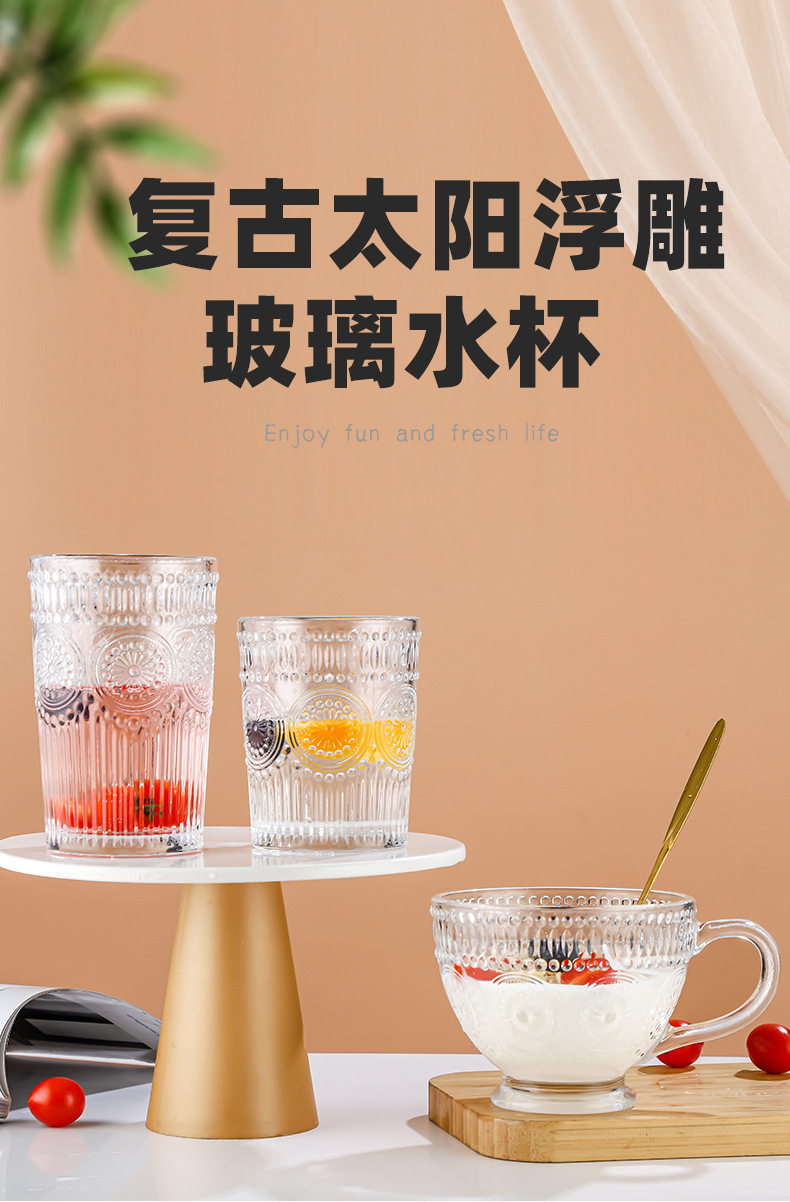 양각 해바라기 아침 식사 그릇 고급스러운 유리 컵 손잡이가있는 대용량 요구르트 그릇 가정용 시리얼 그릇