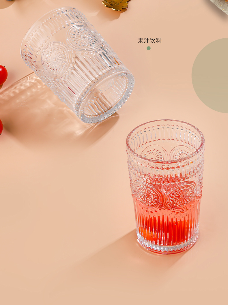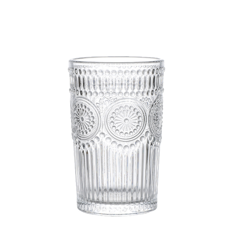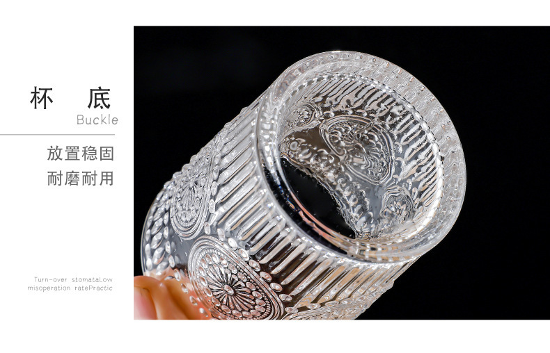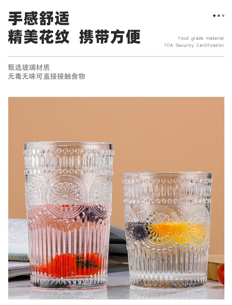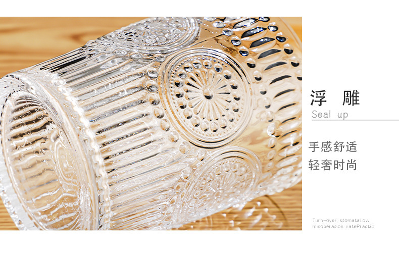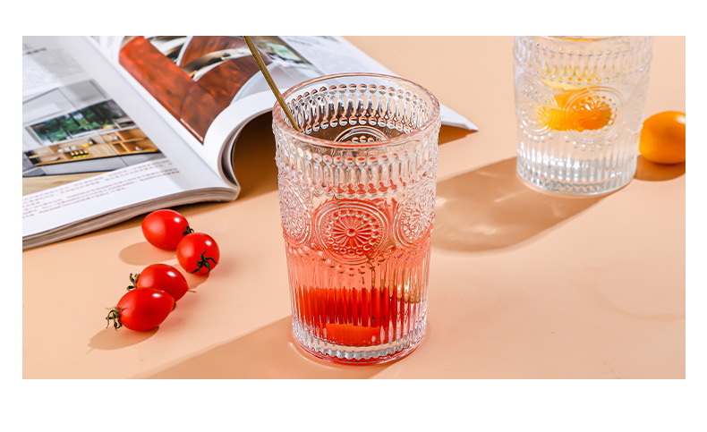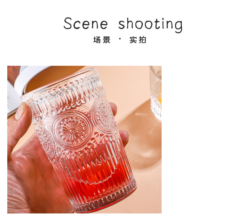 양각 해바라기 아침 식사 그릇 고급스러운 유리 컵 손잡이가있는 대용량 요구르트 그릇 가정용 시리얼 그릇