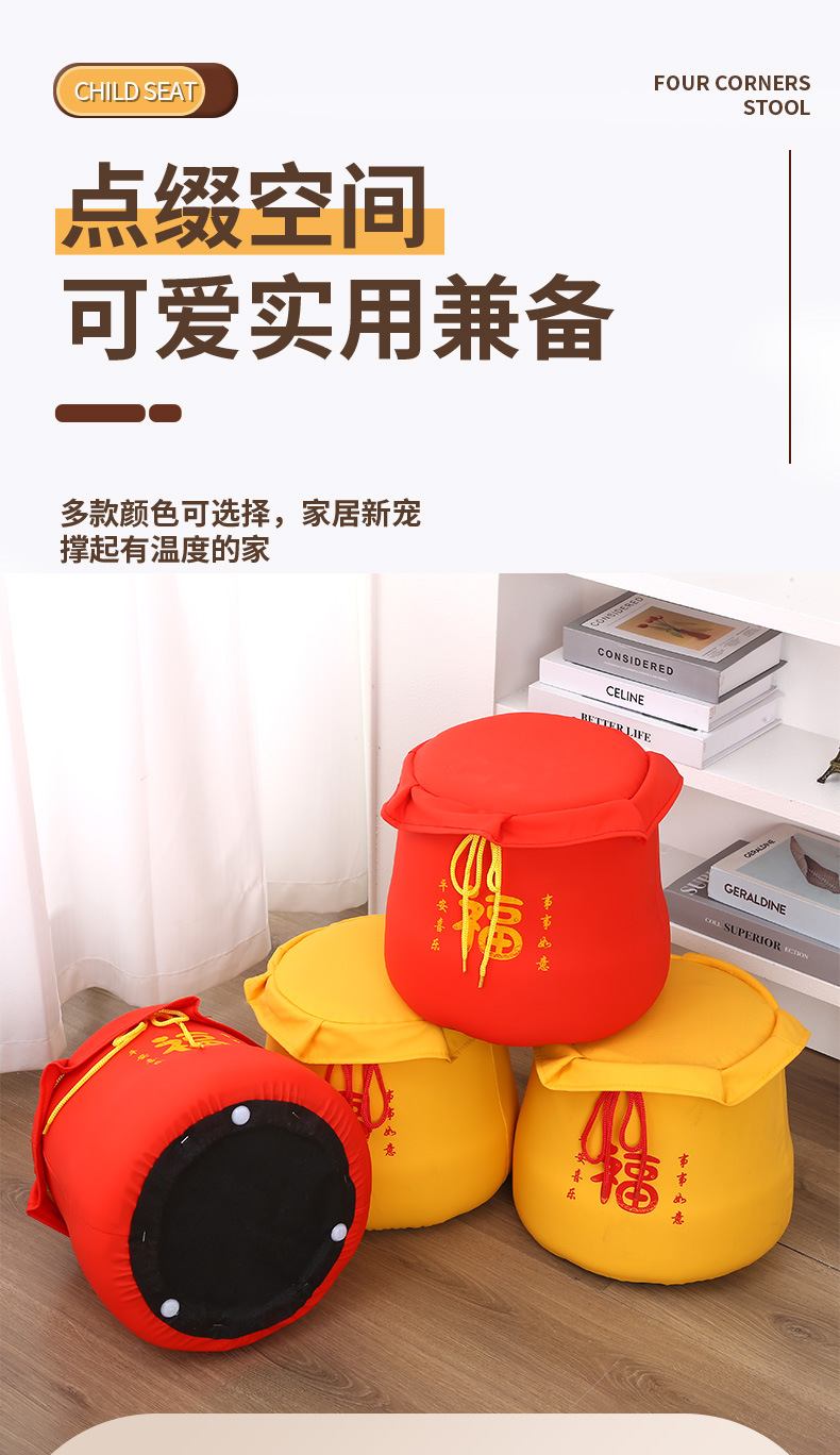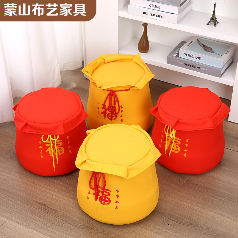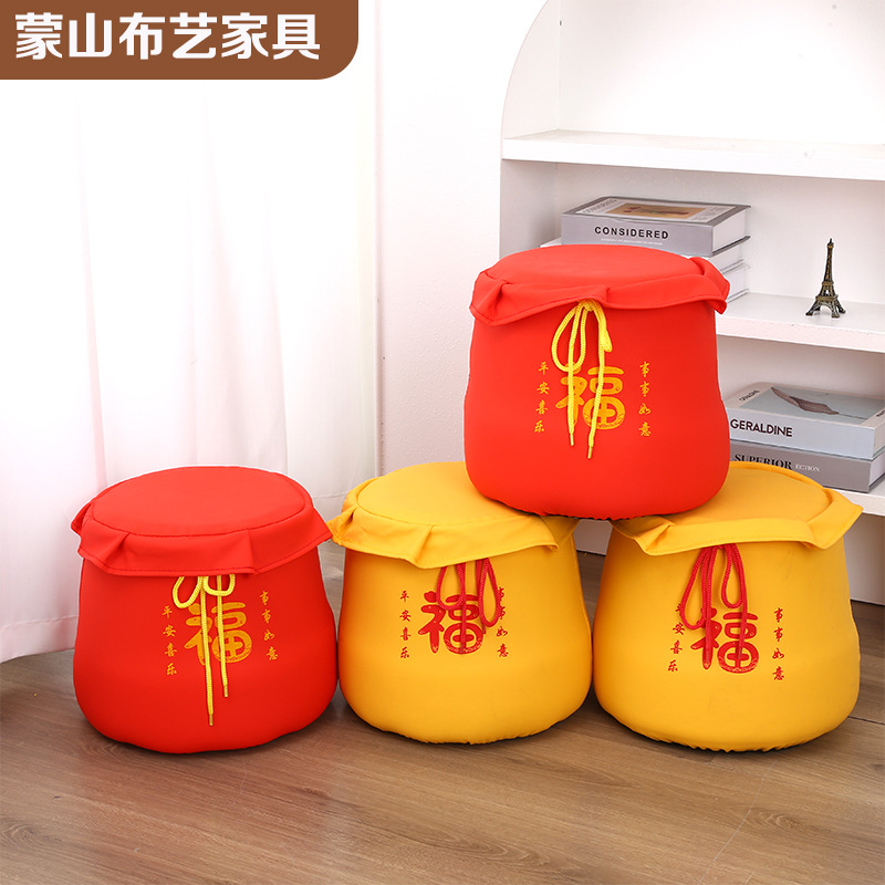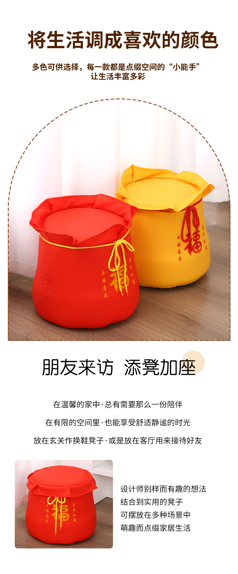 귀여운 복주머니 의자, 개인화되고 창의적인 집들이 선물, 가죽 작은 의자, 거실 발판, 신발 교환 가죽 의자 도매