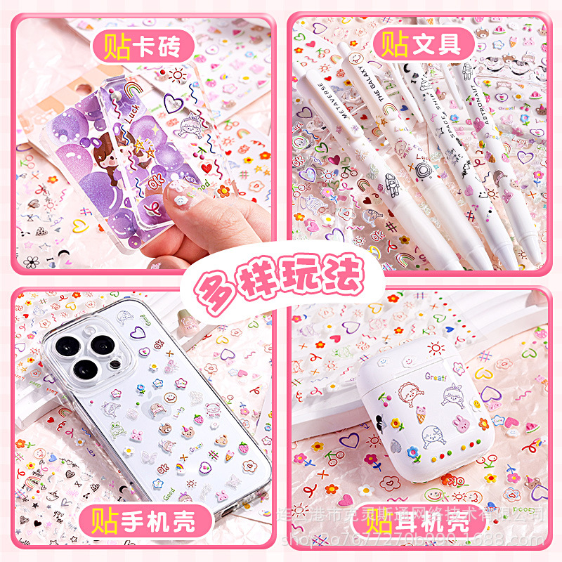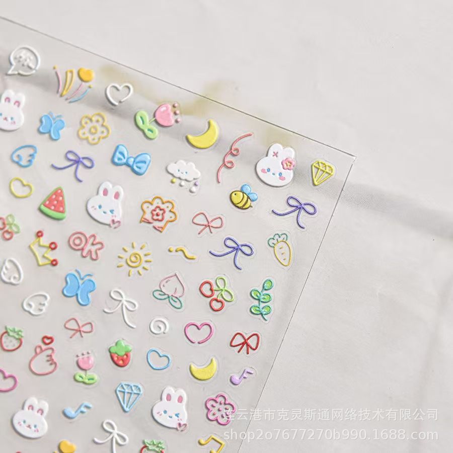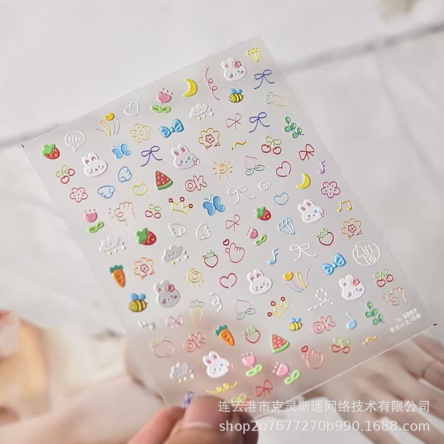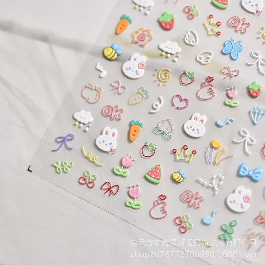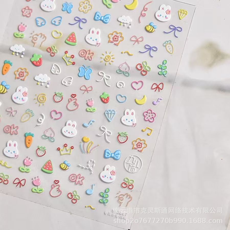 낙서 인 양각 네일 아트 스티커 귀여운 diy 입체 네일 만화 아기 네일 스티커 토끼 네일 아트