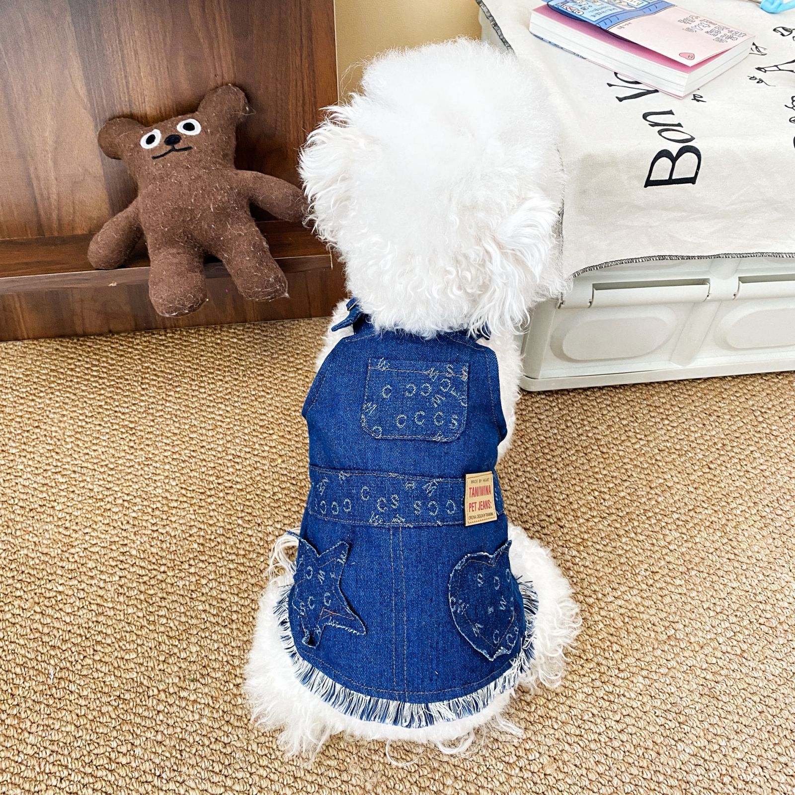 슈나우저 비숑 강아지 옷 고양이 데님 하네스 옷 몰타 조절 가능한 비숑 겉옷