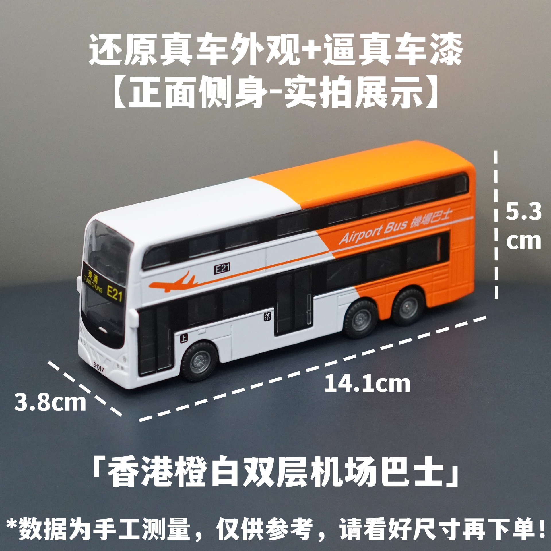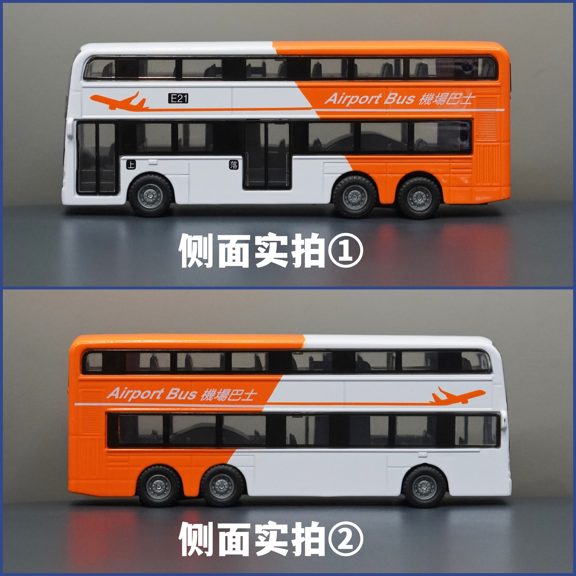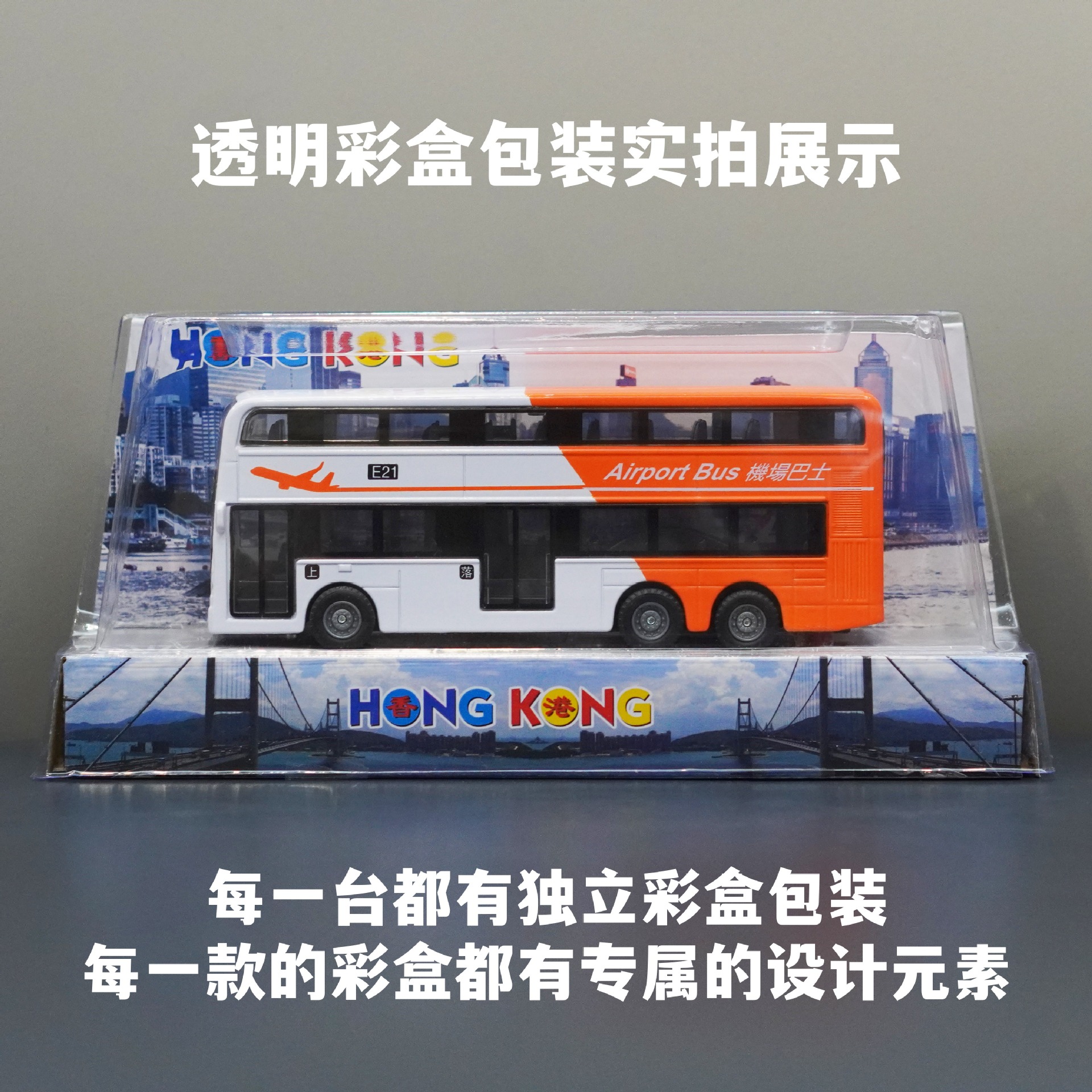 홍콩 주황색 및 흰색 이층 공항 버스/합금 풀백