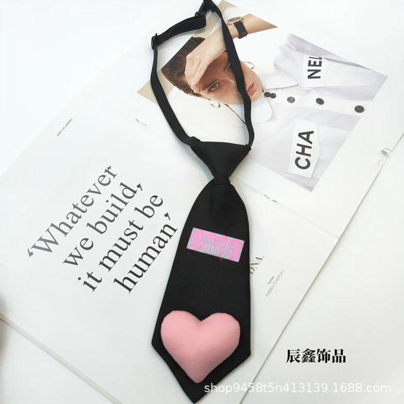새로운 어린이 넥타이, 귀여운 핑크 복숭아 하트, 무료 소녀 영어 라벨, 다용도 셔츠, 짧은 미니 넥타이
