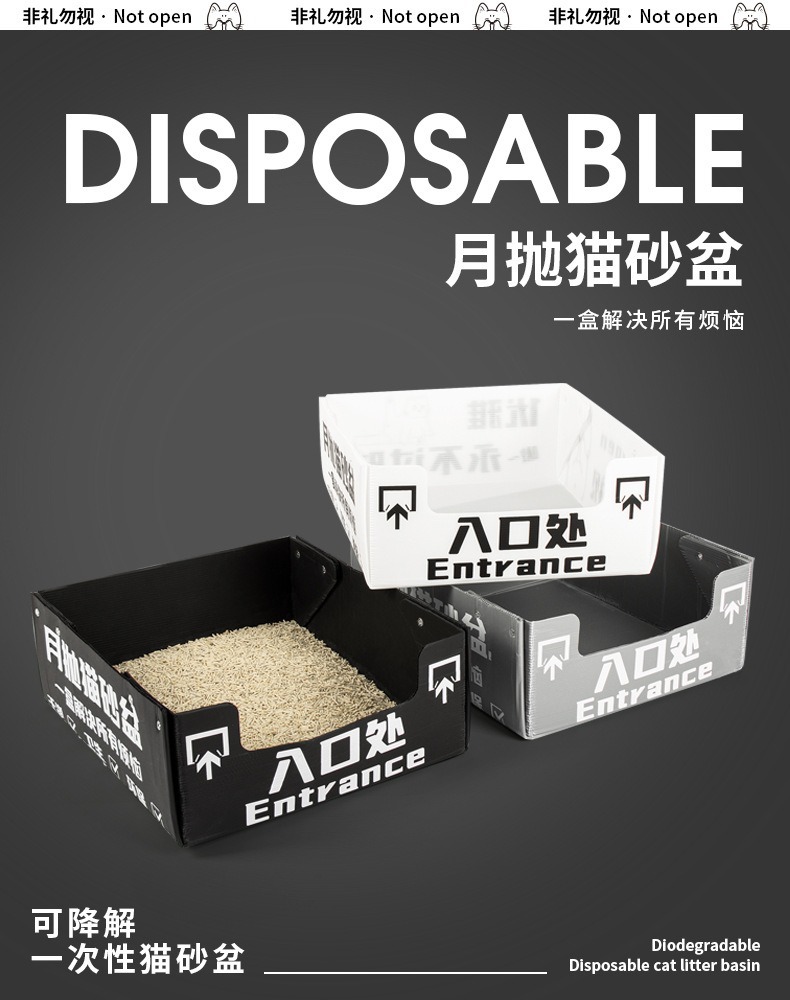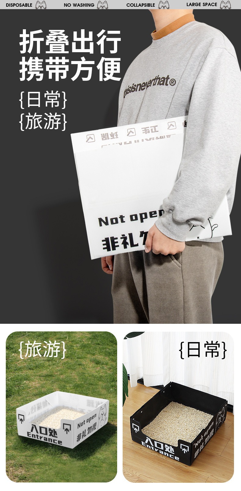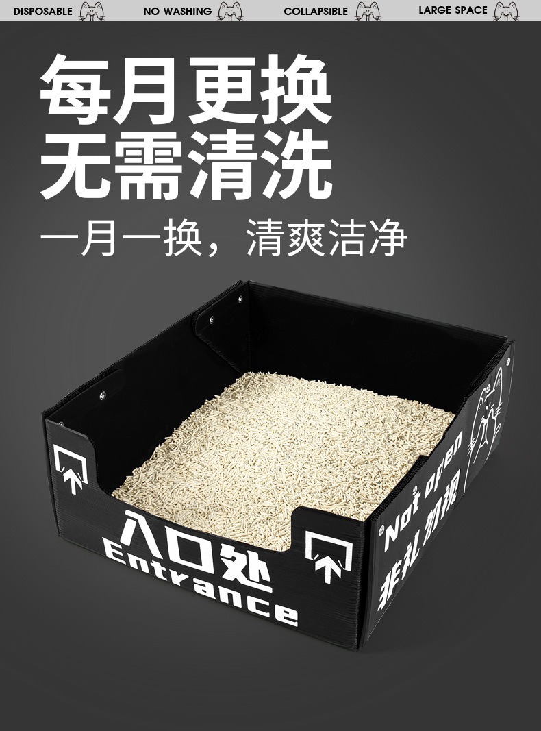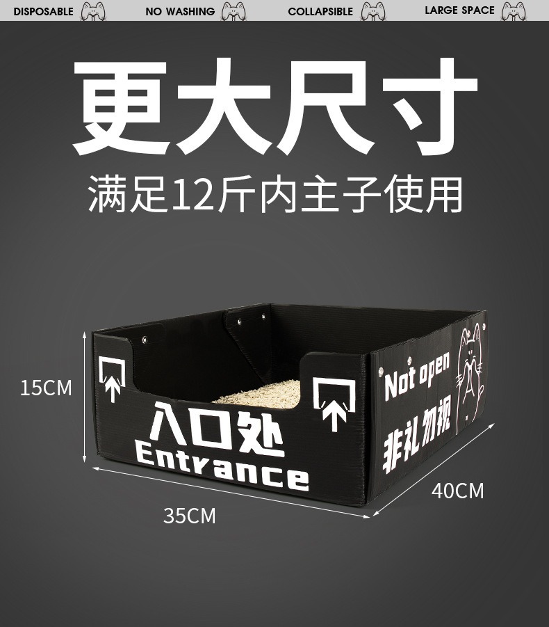 월간 일회용 반밀폐형 일회용 고양이 화장실 임시 고양이 화장실 휴대용 접이식 초대형 휴대용 야외용
