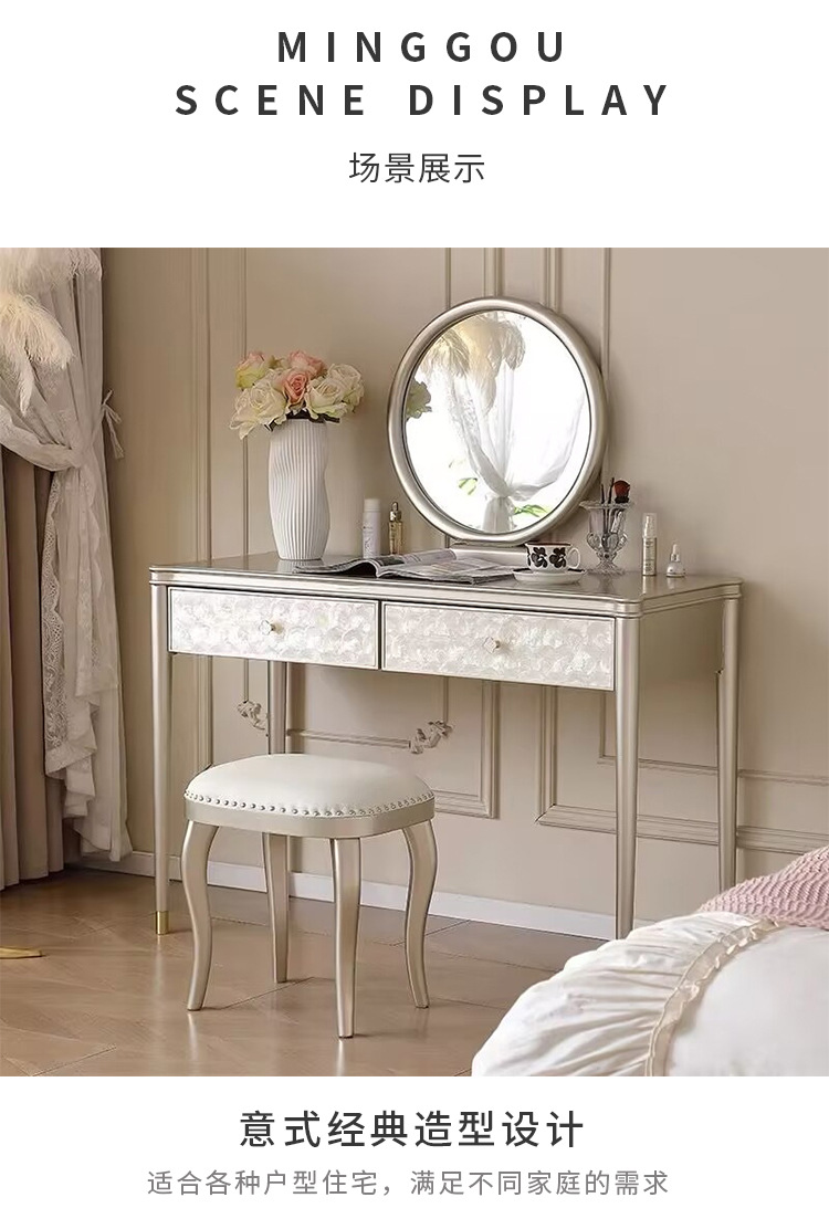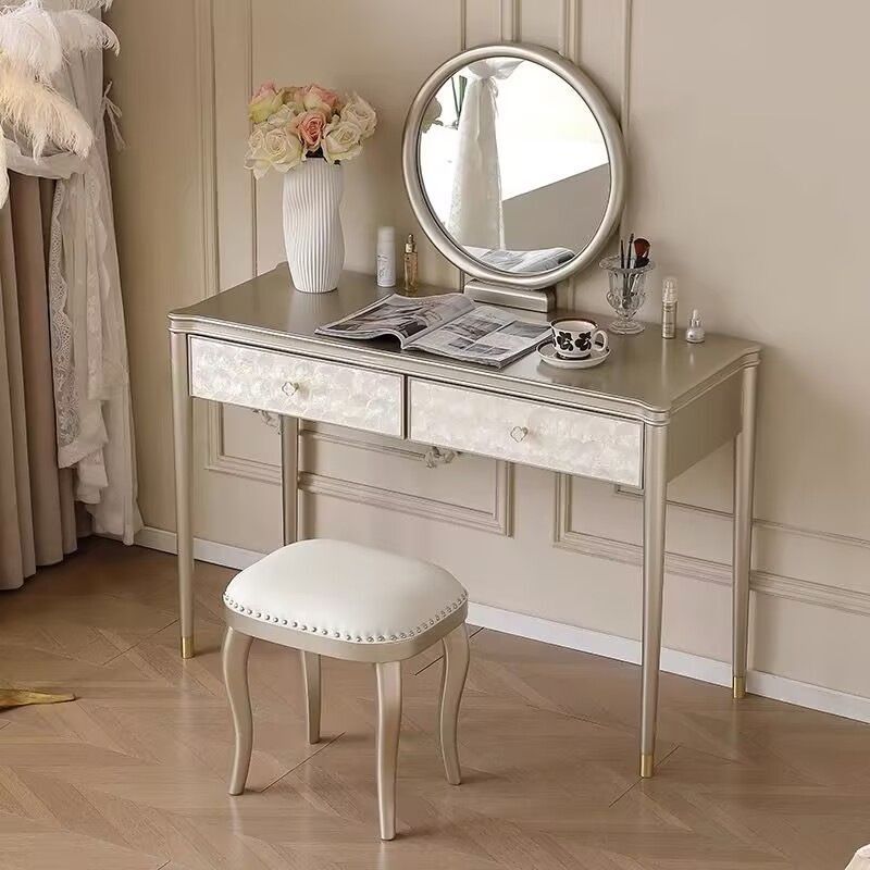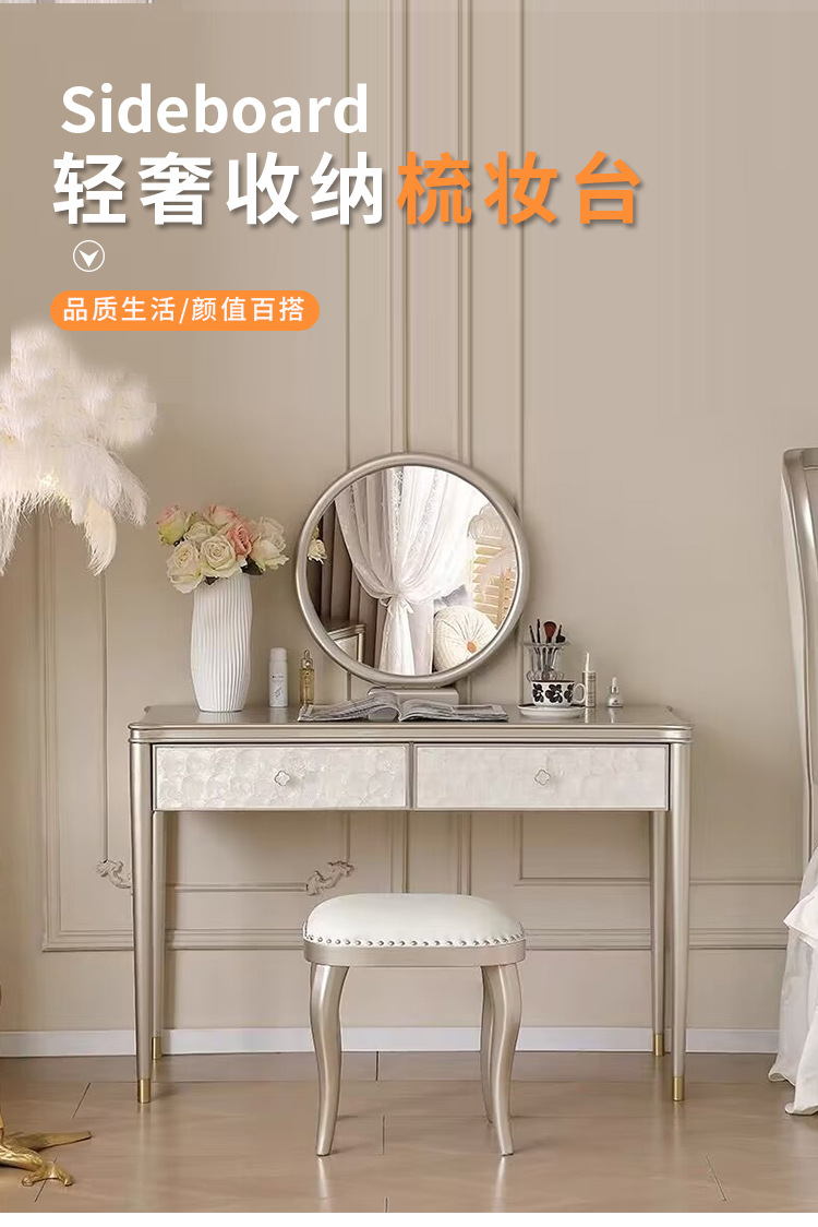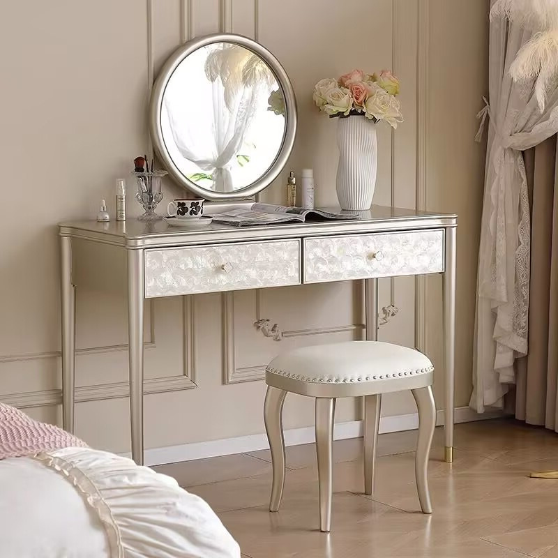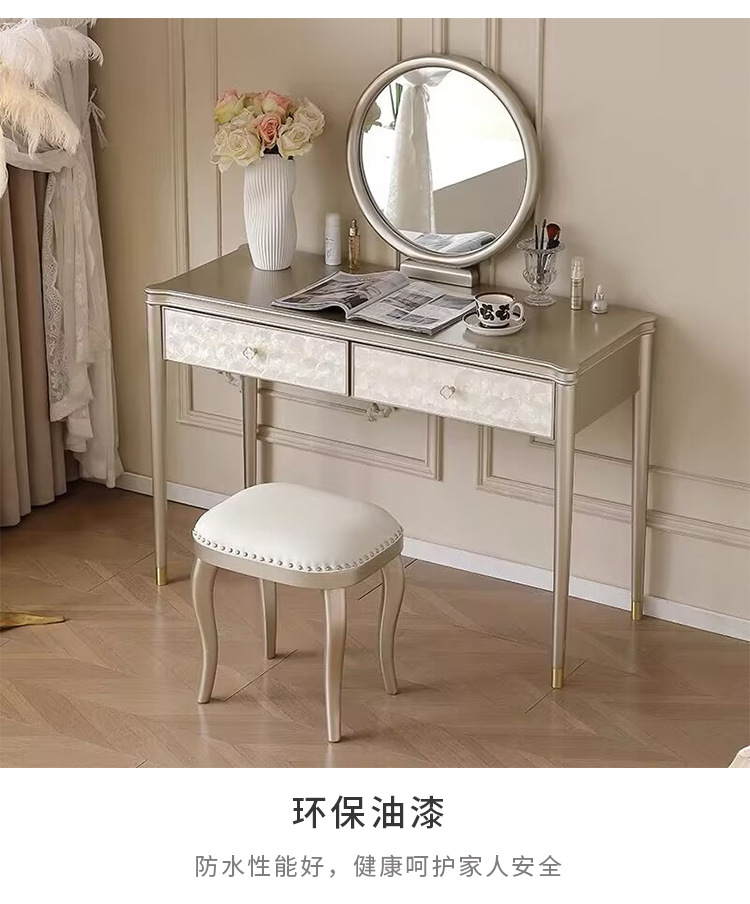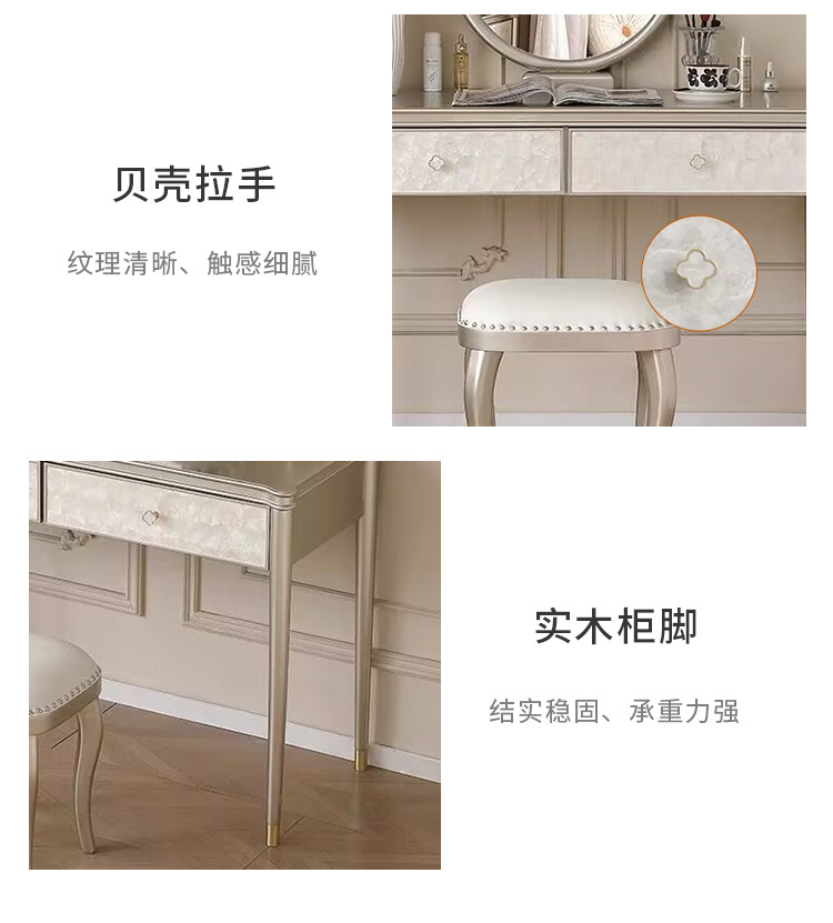 아메리칸 라이트 럭셔리 쉘 드레싱 테이블 라이트 럭셔리 하이 엔드 침실 새로운 메이크업 테이블 크림 스타일 단단한 나무 선반