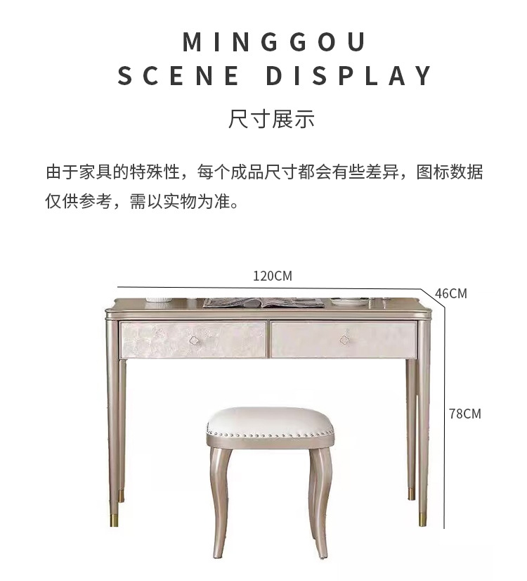 샴페인 골드 + 페인트 화장대: 길이 120*너비 46*높이 78cm