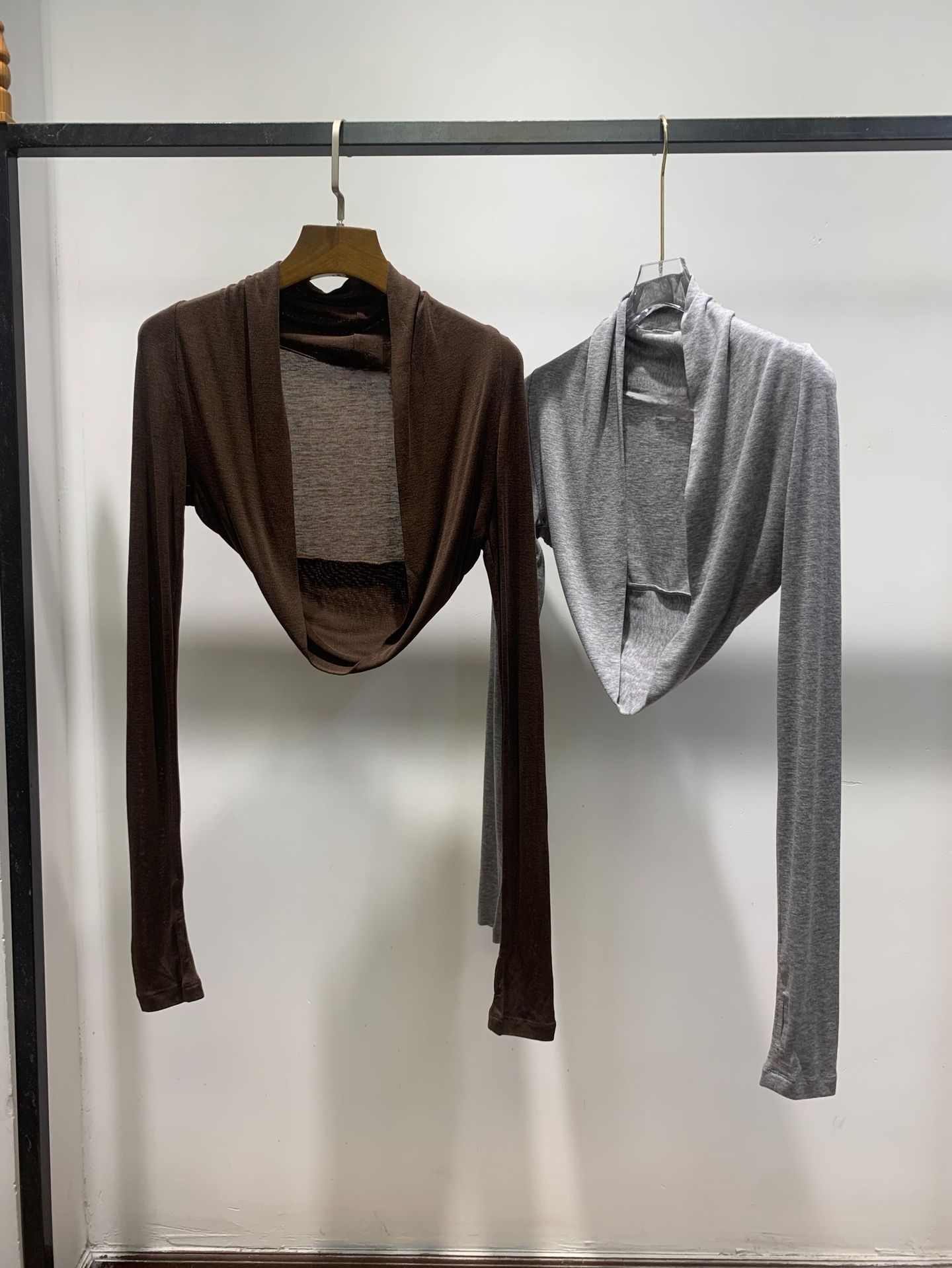 스팟 상품: 텐셀 울 슬림핏 니트 슬리브 커버, 자외선 차단 웨어, 여성용 가디건/조끼, 커피색/라이트 플로럴 그레이