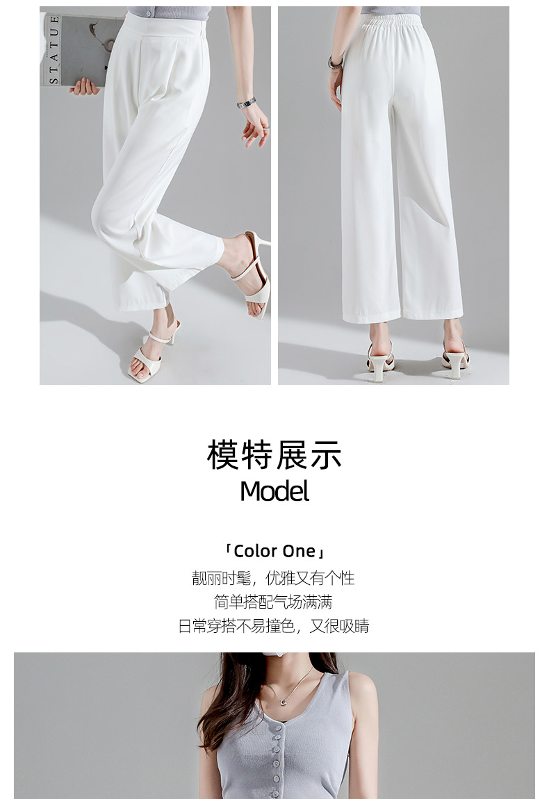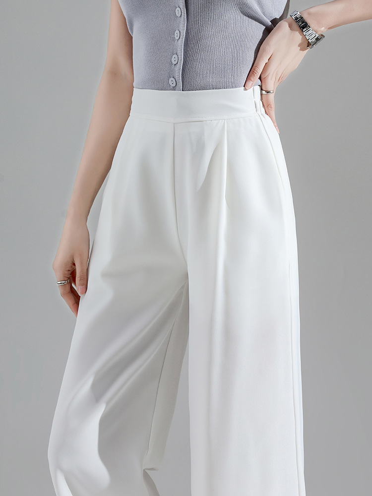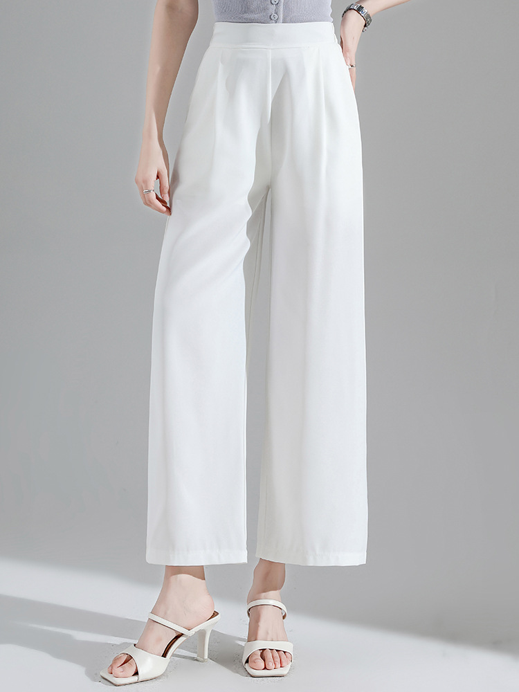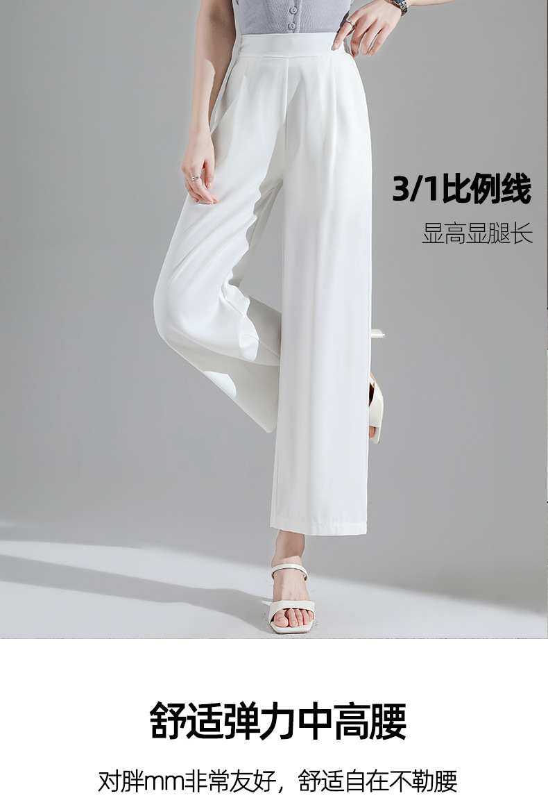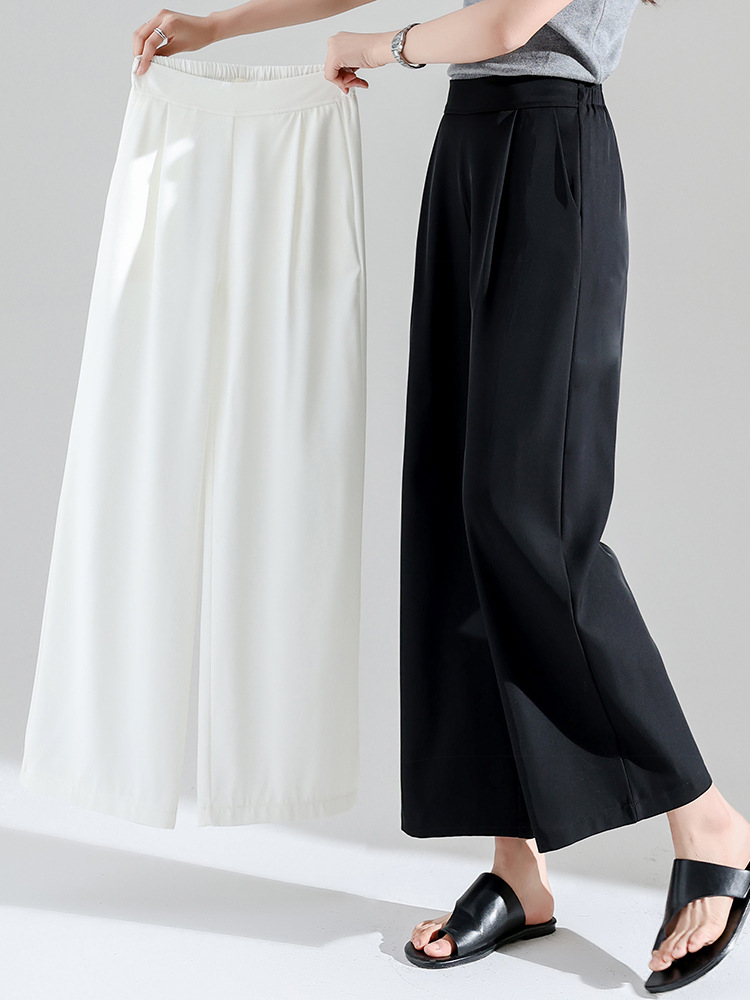 2027 여성용 아이스 실크 화이트 와이드 팬츠, 여름 얇은 9부 루즈 타이트 허리 플러스 사이즈 뚱뚱한 mm 엄마 바지