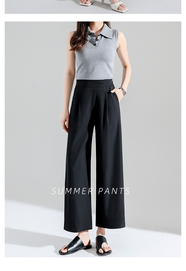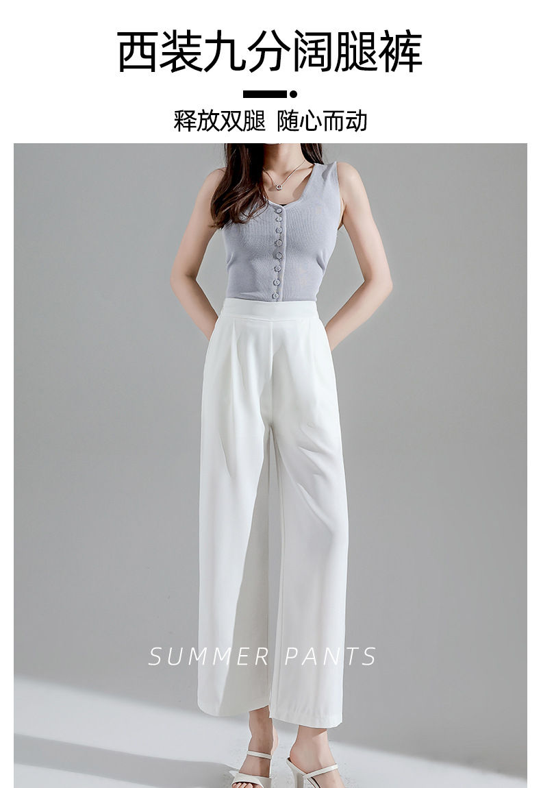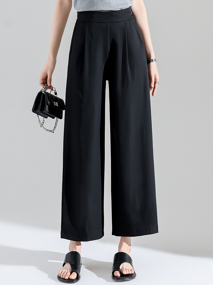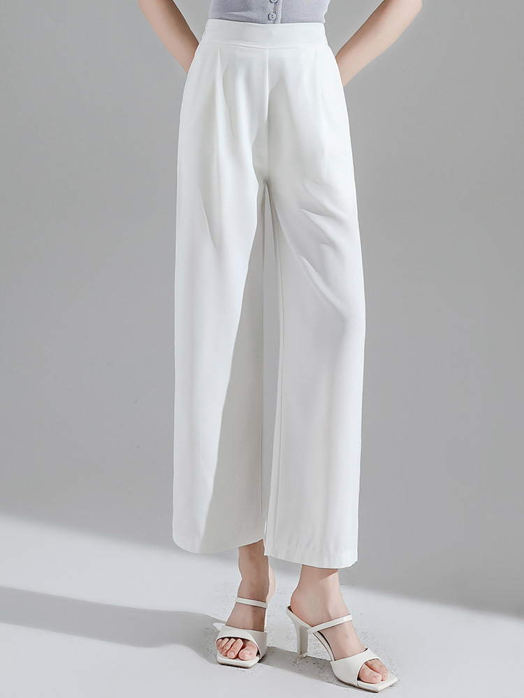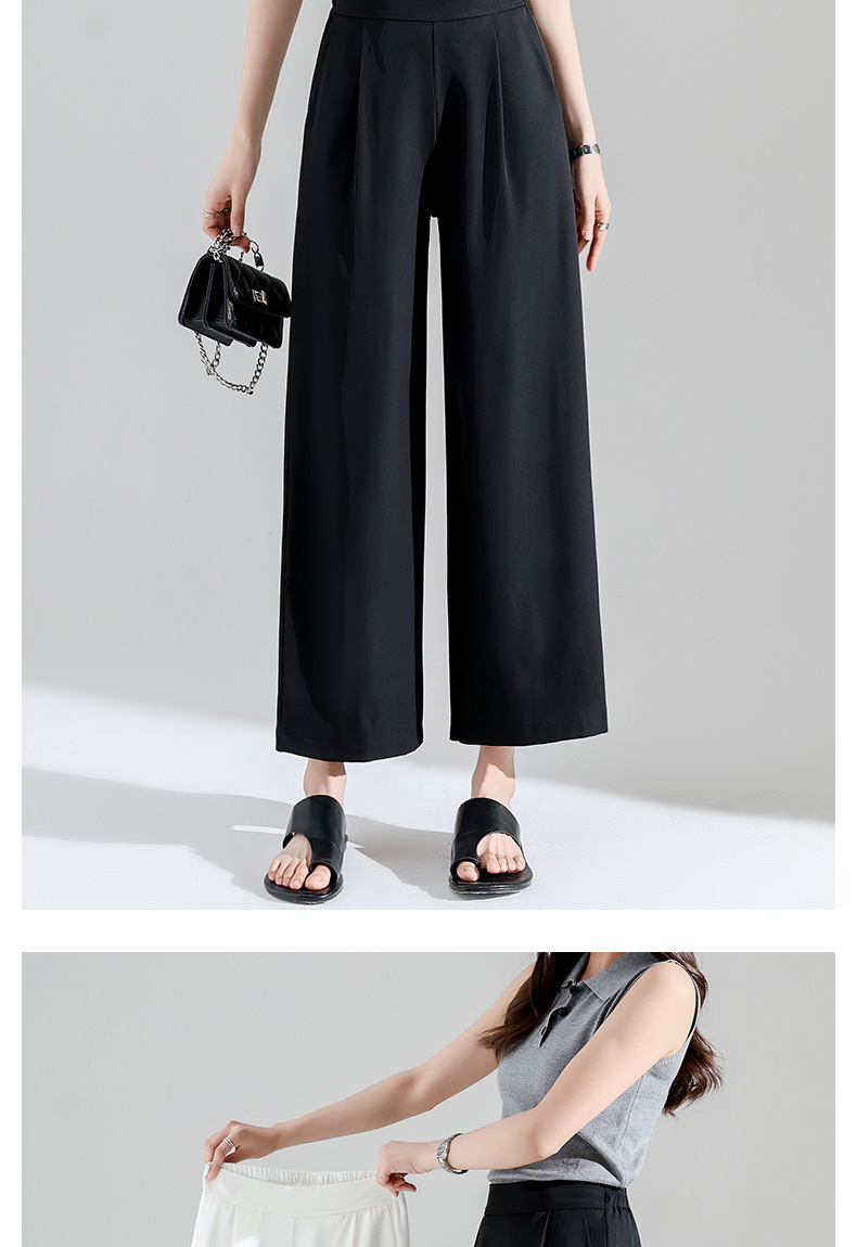 2027 여성용 아이스 실크 화이트 와이드 팬츠, 여름 얇은 9부 루즈 타이트 허리 플러스 사이즈 뚱뚱한 mm 엄마 바지