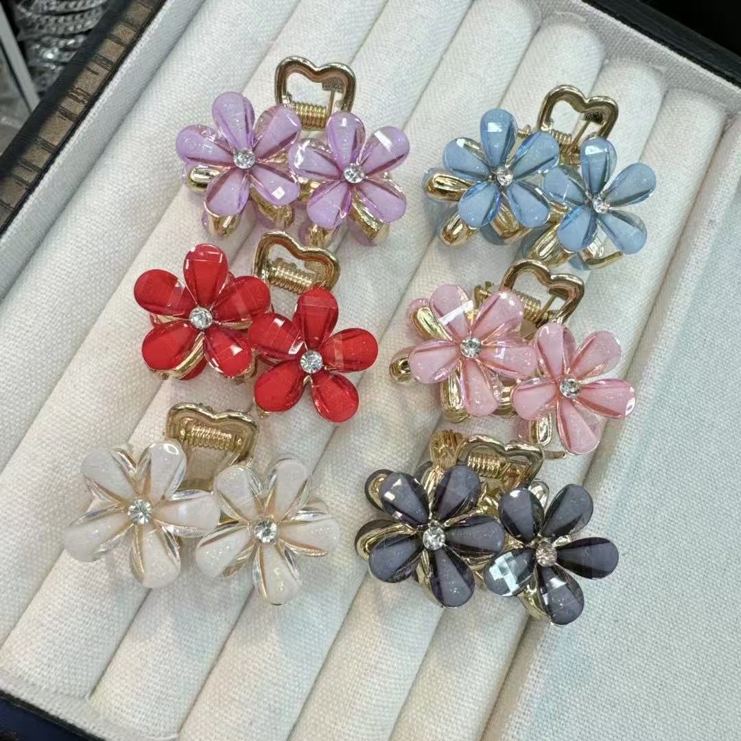 여성용 크리스탈 플라워 클립