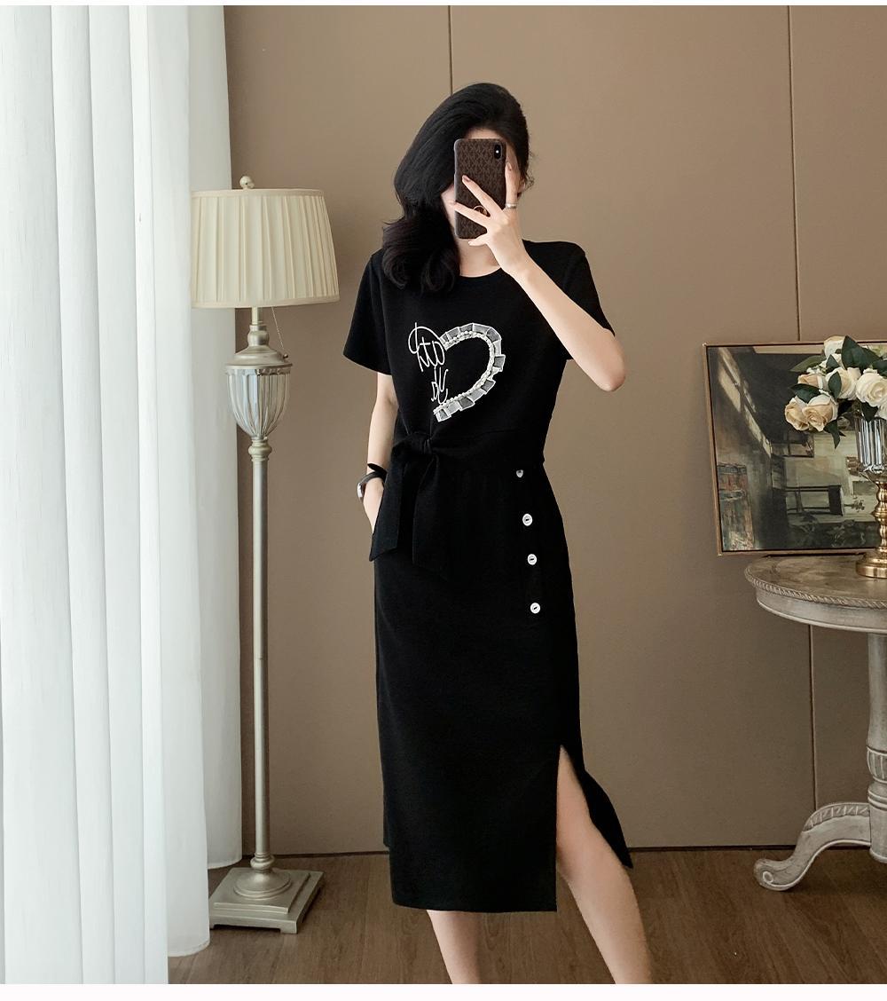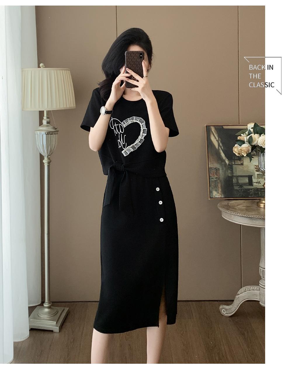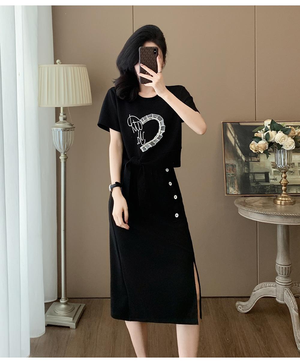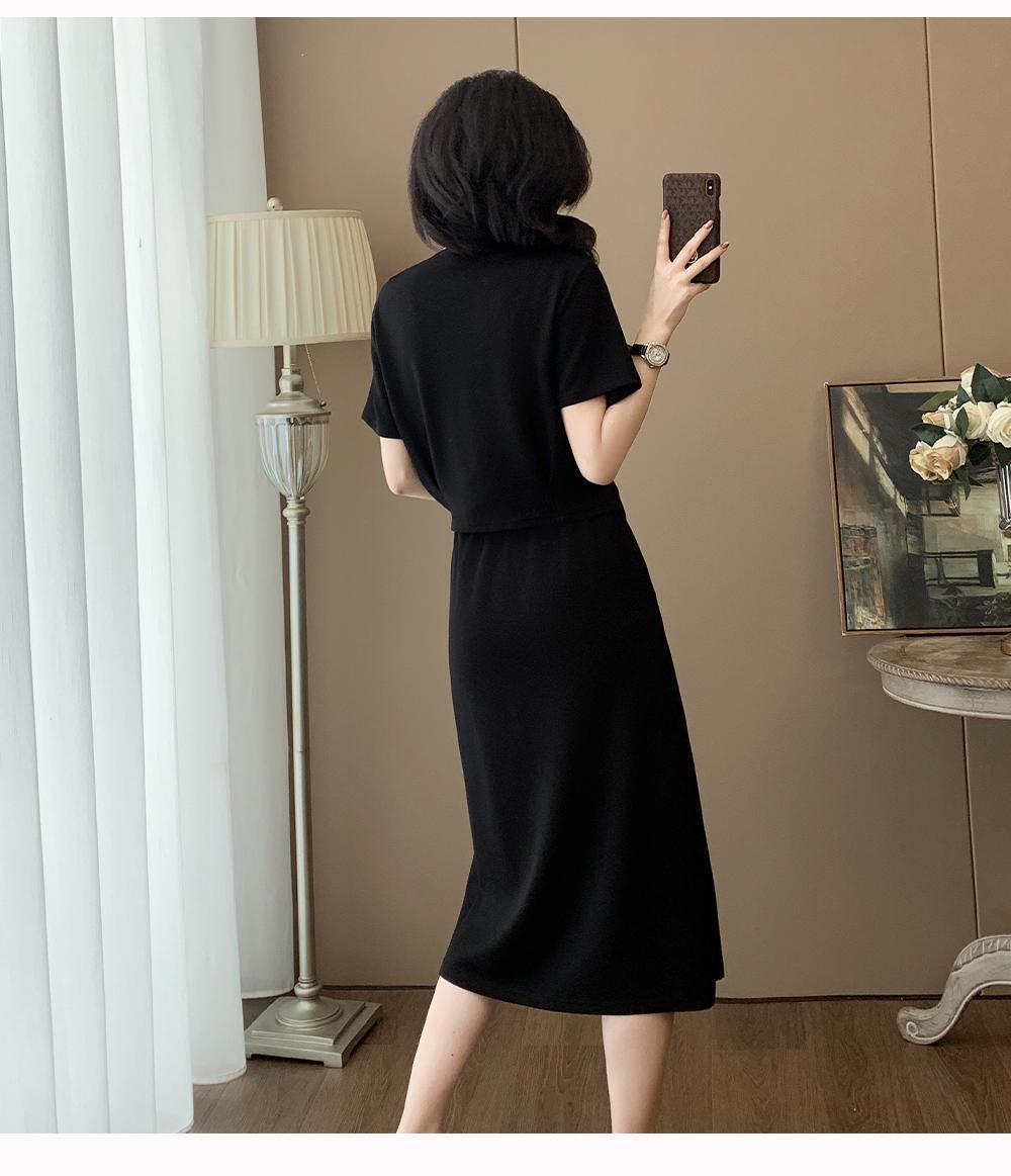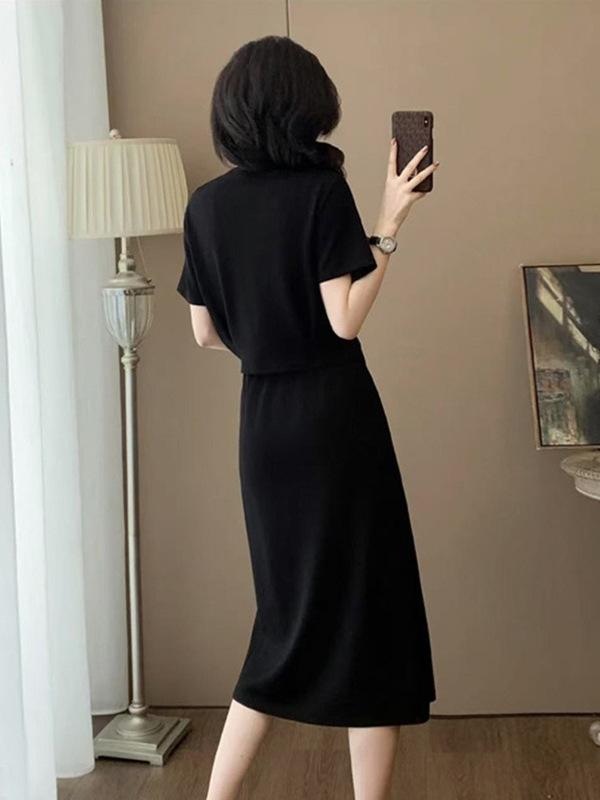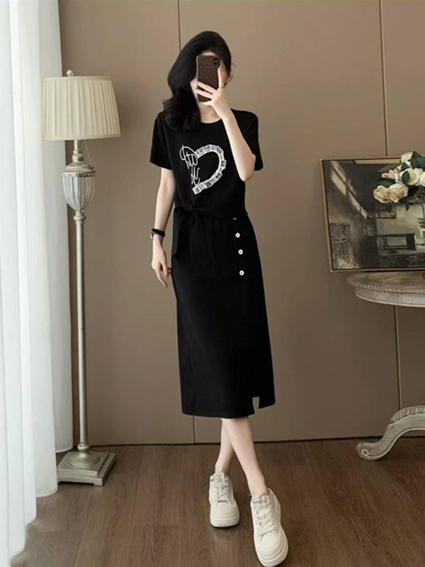 하이 엔드 센스 그레이 캐주얼 원피스 2025 년 여름 새로운 스포츠 스타일 반팔 티셔츠 반쪽 길이 스커트 투피스 세트