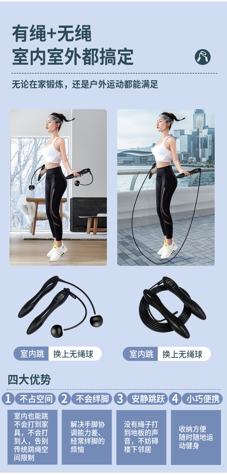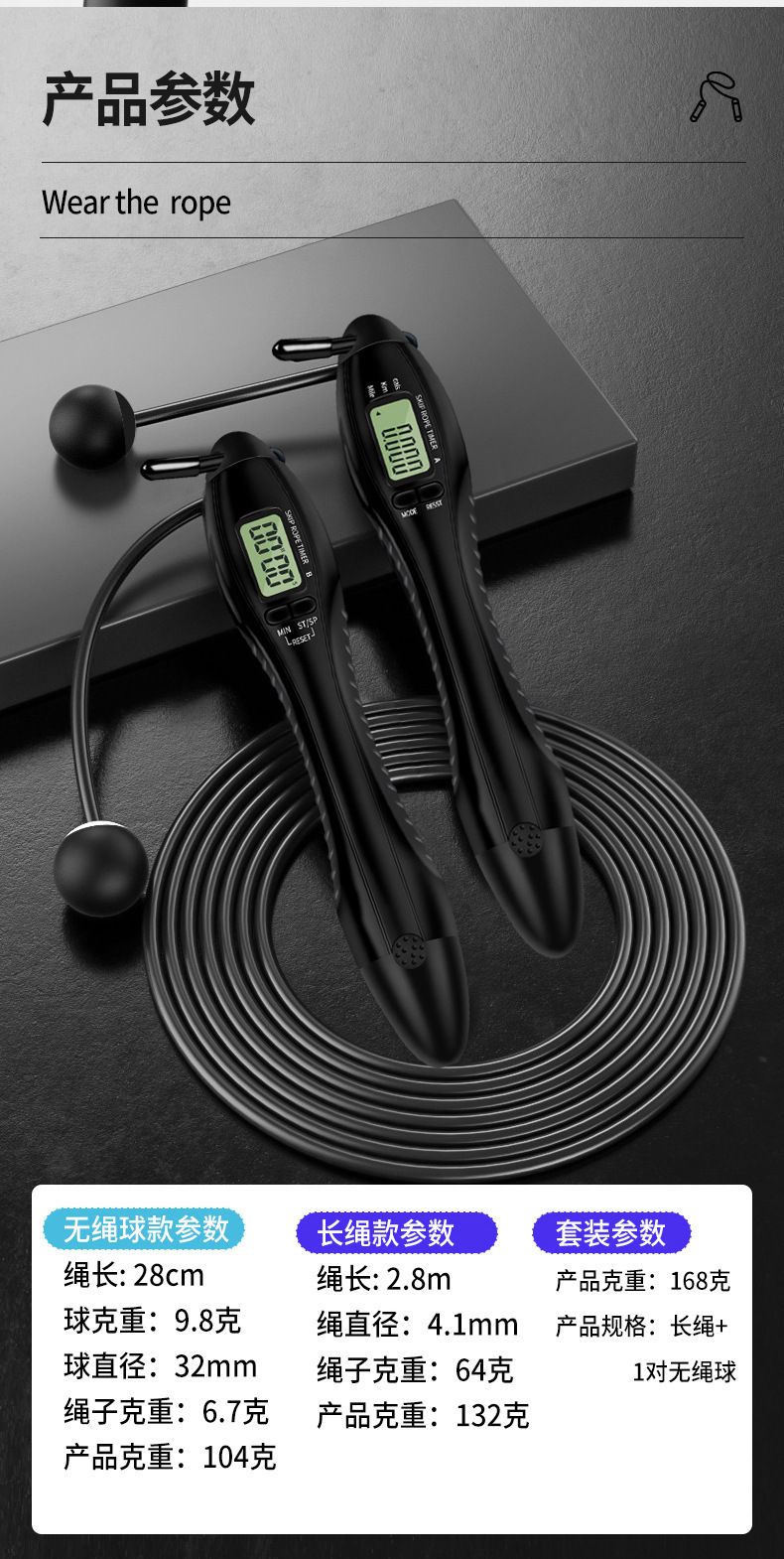 어린이와 학생을 위한 맞춤형 스마트 듀얼 스크린 계산 줄넘기 타이밍 고등학교 입학 시험 스포츠 용품 무선 볼 와이어 로프 도매