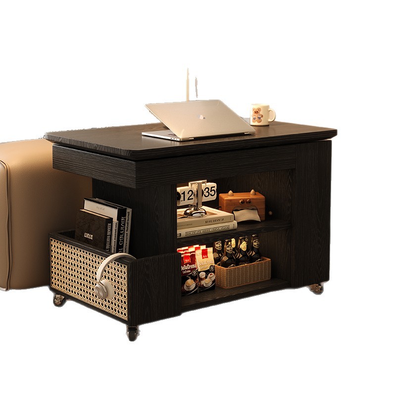 원목 거실 소파 사이드 테이블, 이동식 회전 리프팅 소형 차 카트, 소형 코너 테이블, 소형 트롤리, 수납 및 보관 사이드 캐비닛