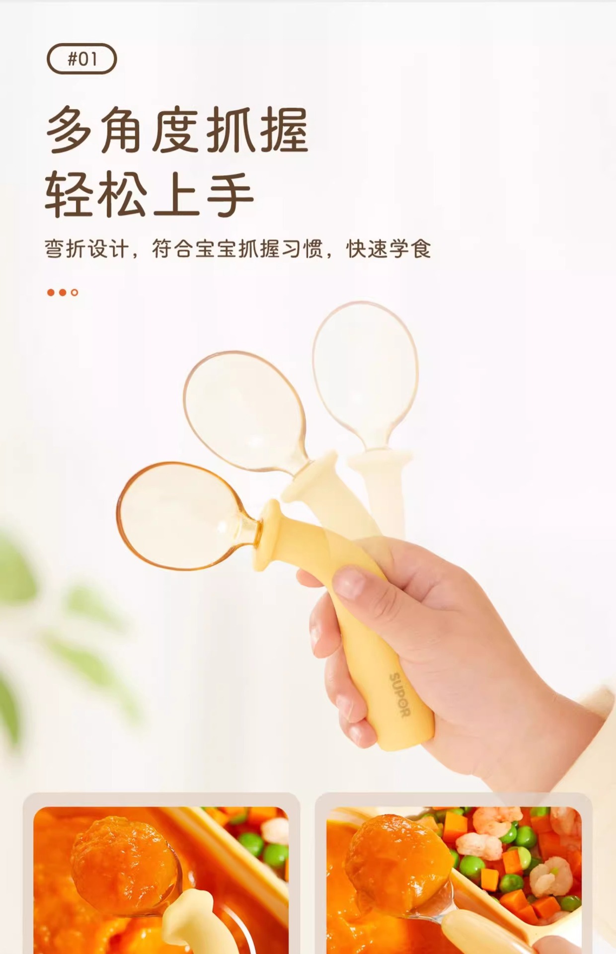 Supor 아기 스푼 독립 학습 아기 스푼 PPSU 어린이 식기 포크 스푼 KGF12CQ10