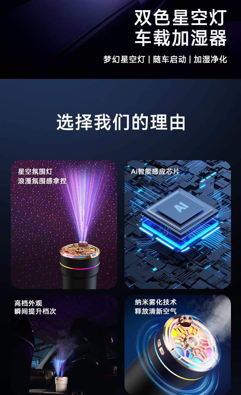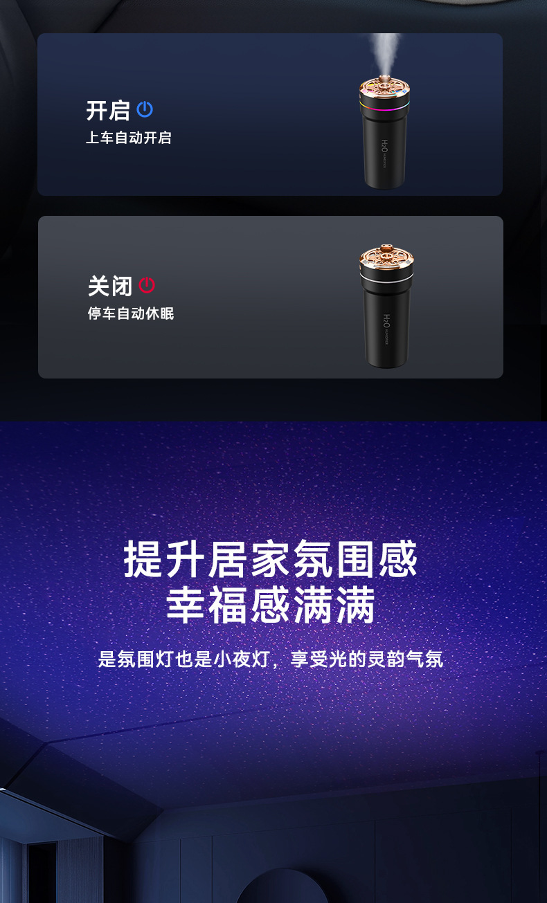 스마트 차량용 스타돔형 가습기 USB 휴대용 가습기 차량용 아로마 스프레이 차량용 아로마 디퓨저