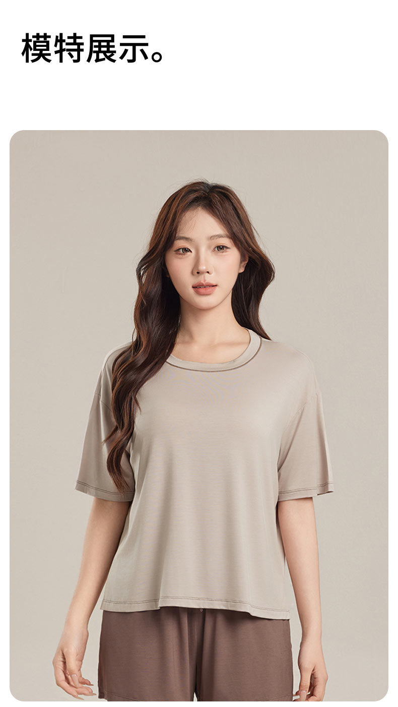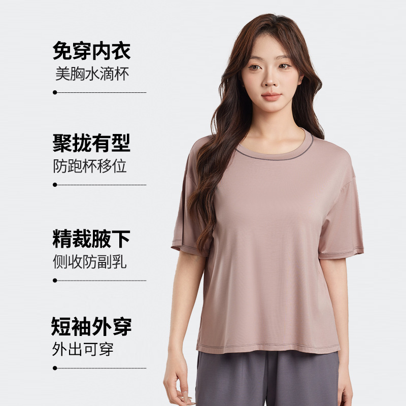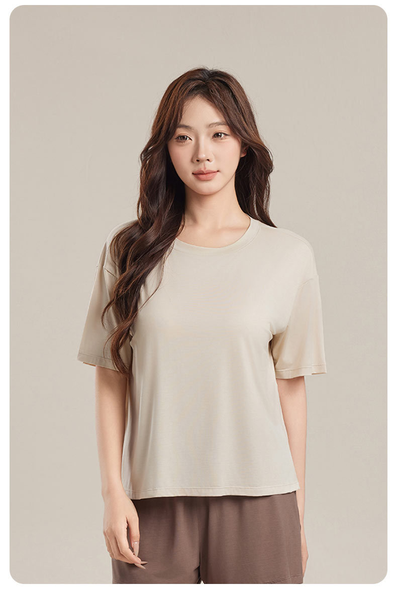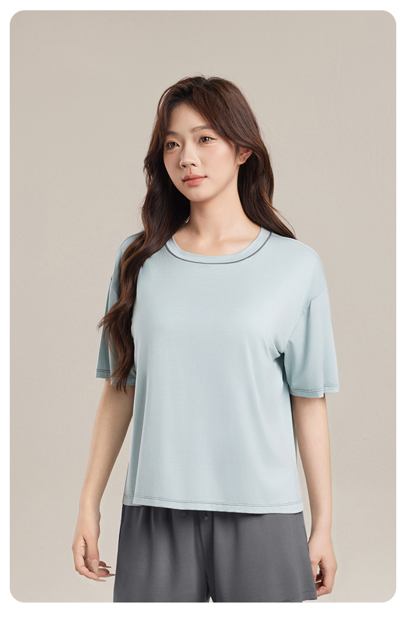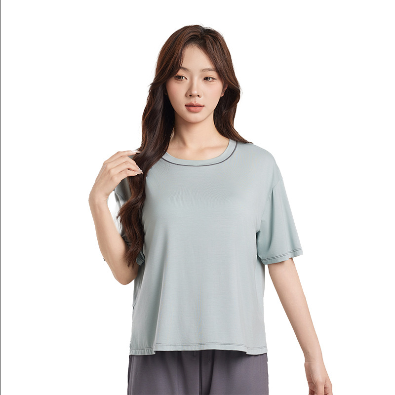 Yukosi Squalane 여성 뽕나무 실크 여름 잠옷 겉옷 반팔 탑 홈 옷
