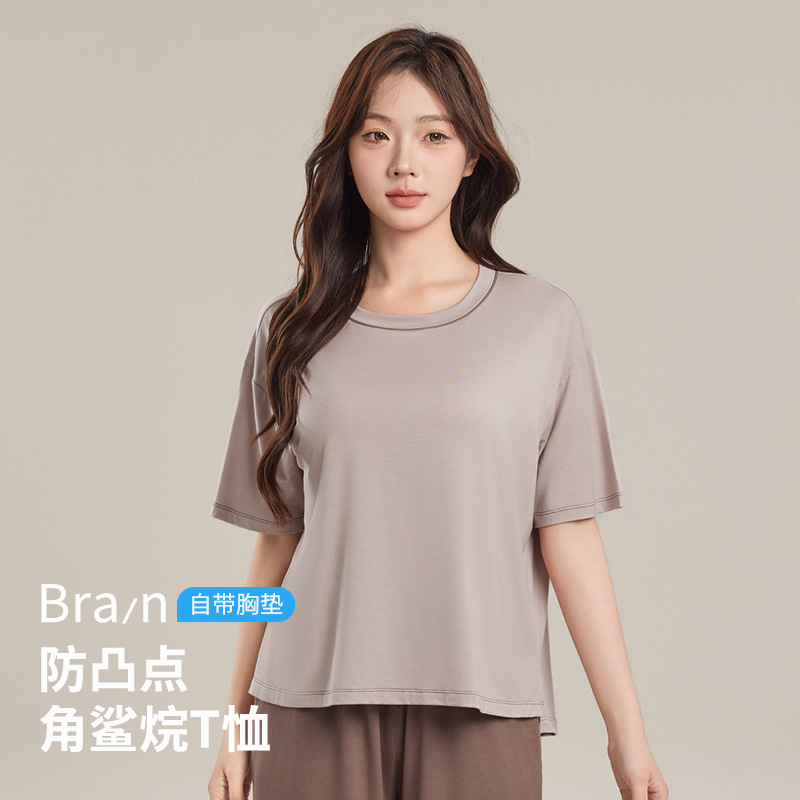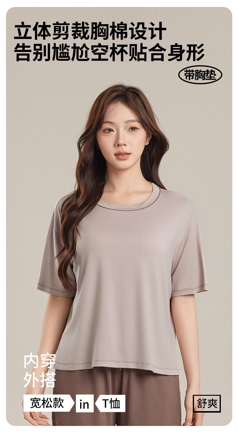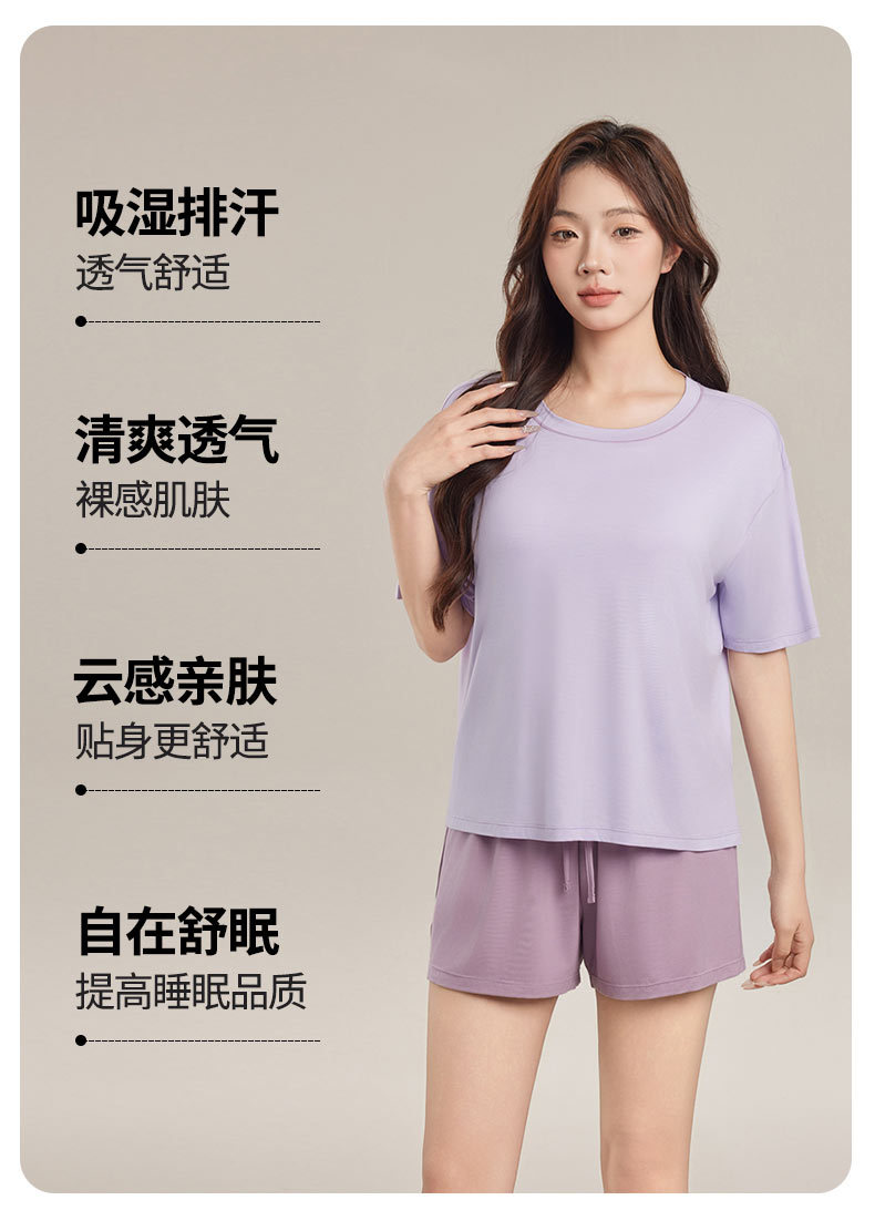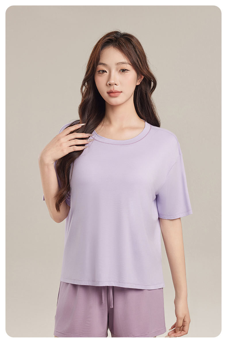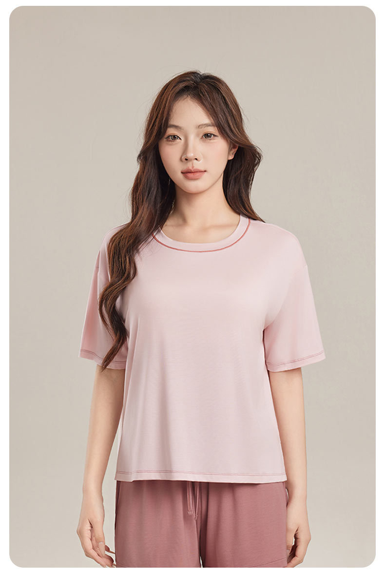 Yukosi Squalane 여성 뽕나무 실크 여름 잠옷 겉옷 반팔 탑 홈 옷