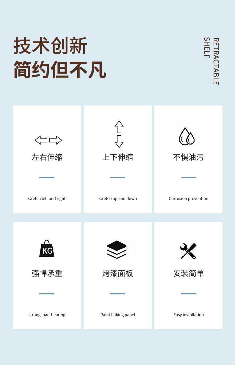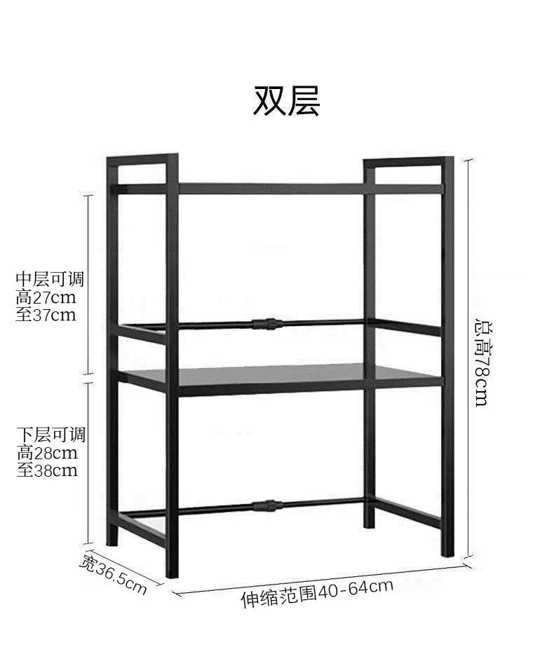 블랙 [두꺼운 강철] 텔레스코픽 더블 레이어 + 도마 랙 + 후크 6개