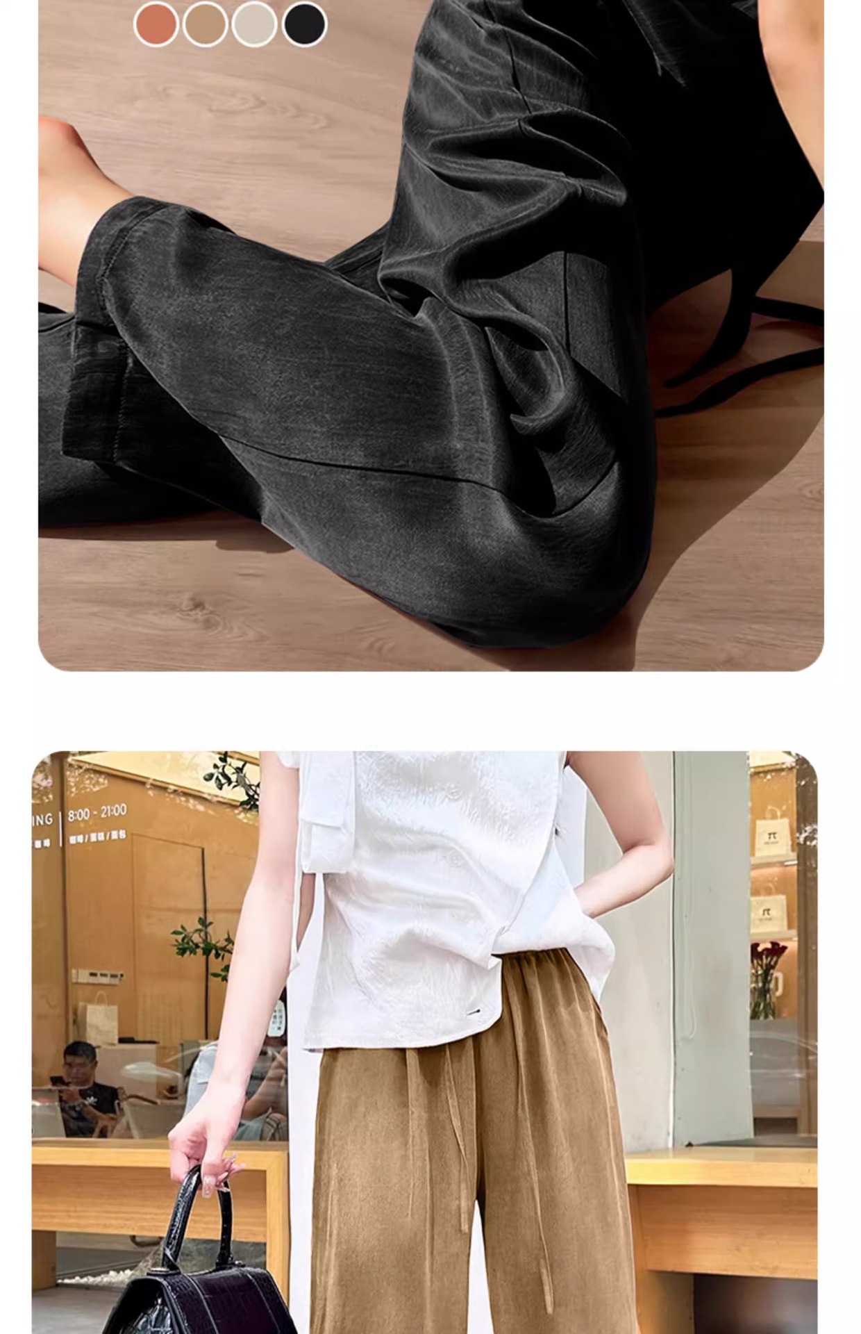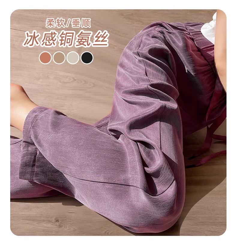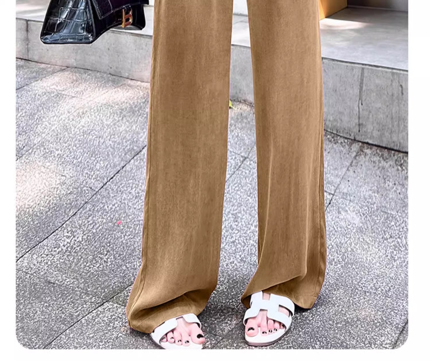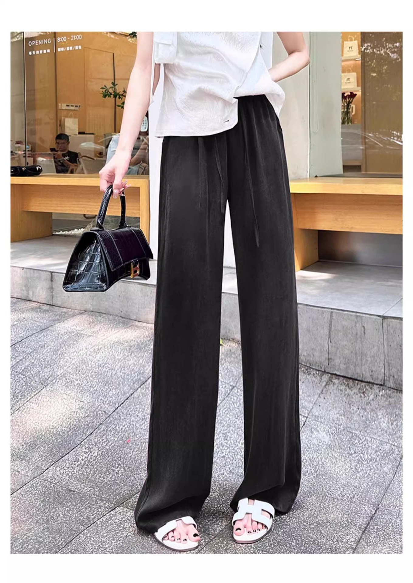 여성용 구아슈 실크 드레이프 롱 팬츠, 봄 여름 얇은 스트레이트 캐주얼 팬츠, 2026 신상 하이웨이스트 슬림핏 루즈핏 와이드 팬츠