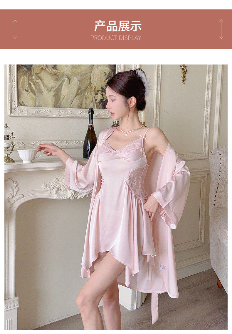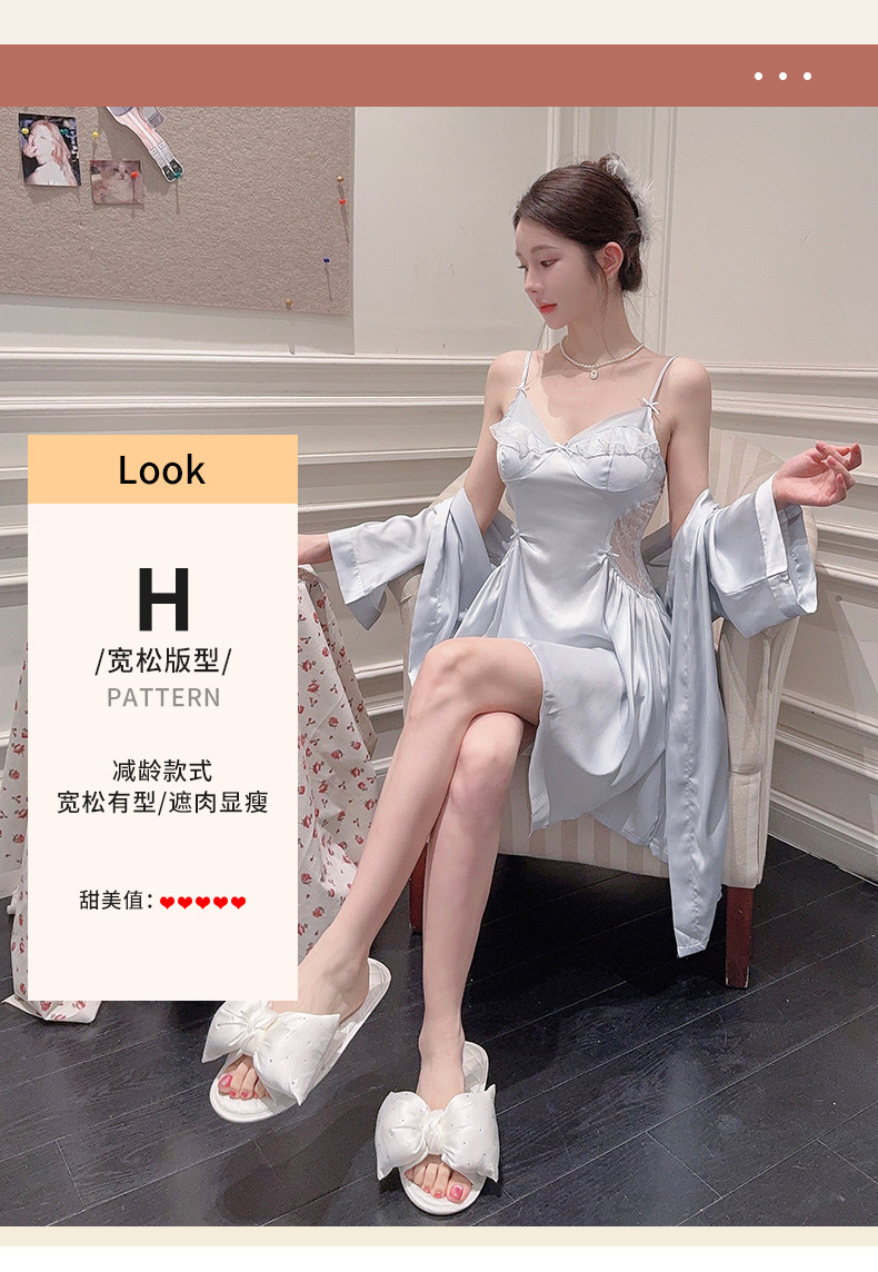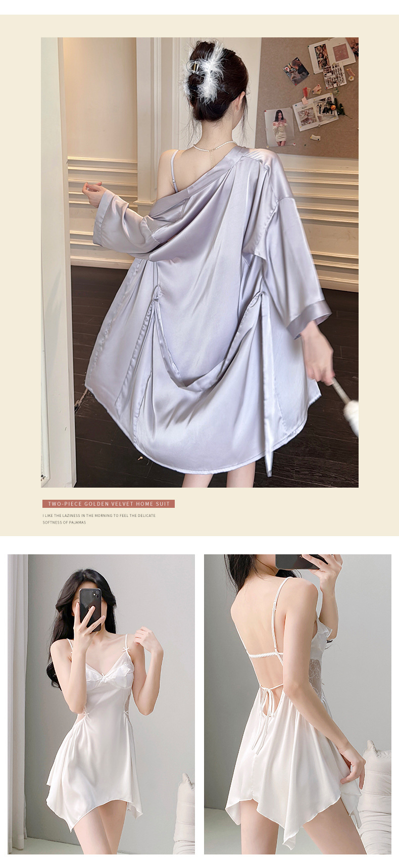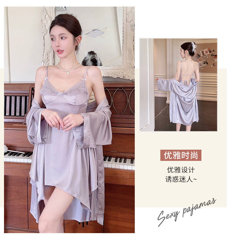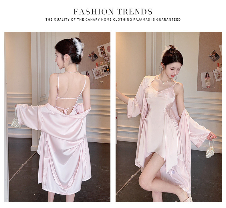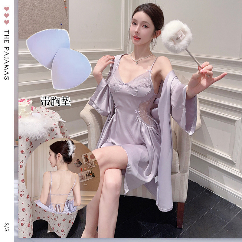 섹시한 여성용 브이넥 패드 내장 투피스 잠옷, 인터넷 인기 끌어당기는 끈나시 백리스 잠옷 가운 홈웨어