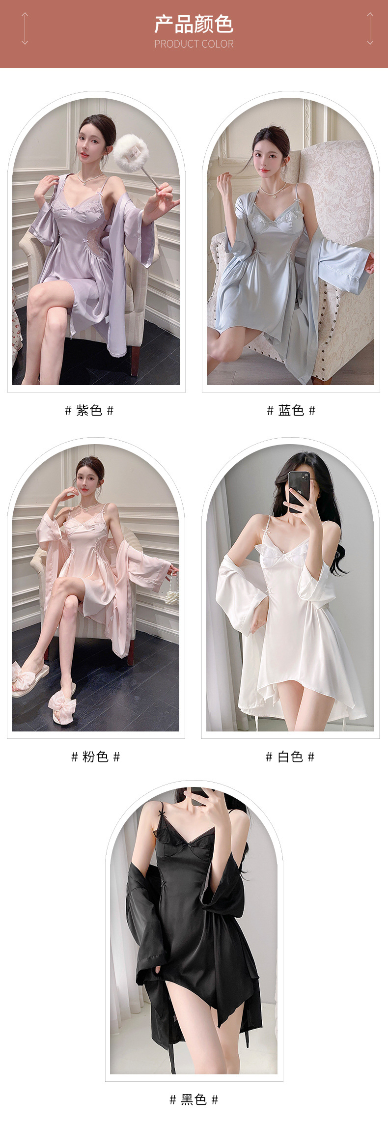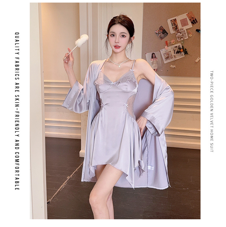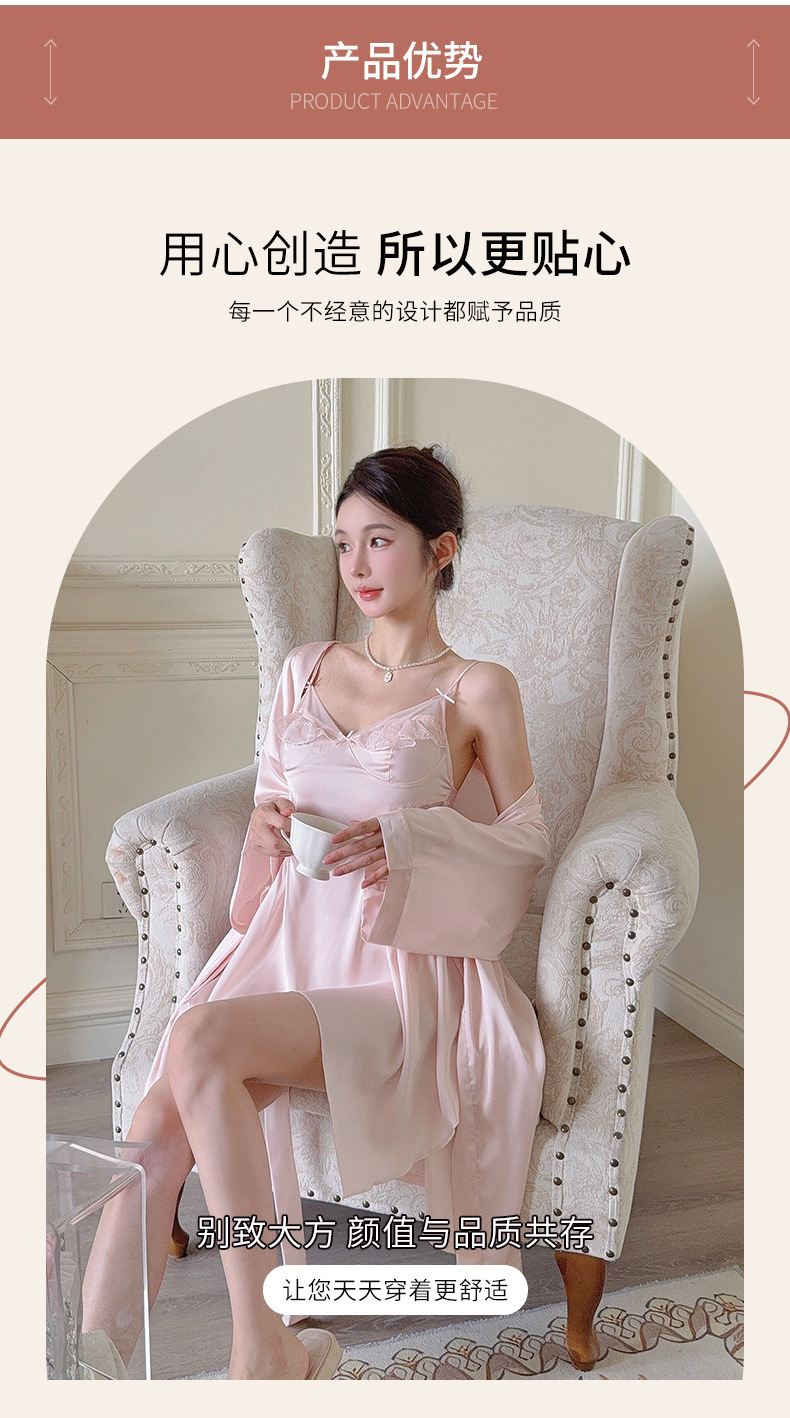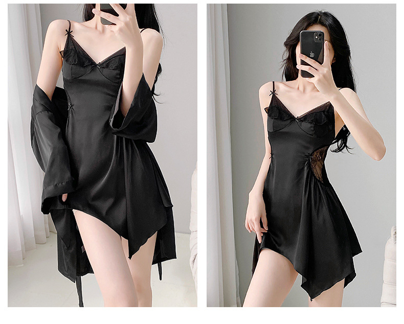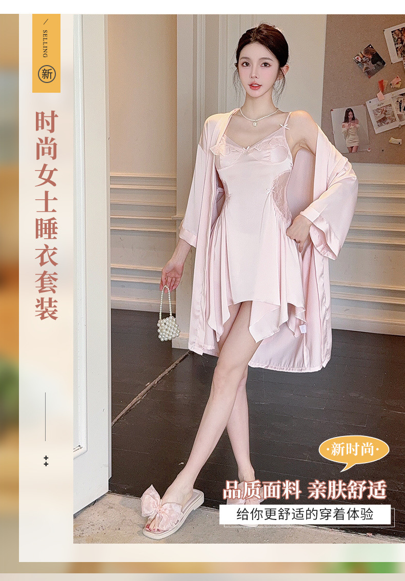 섹시한 여성용 브이넥 패드 내장 투피스 잠옷, 인터넷 인기 끌어당기는 끈나시 백리스 잠옷 가운 홈웨어