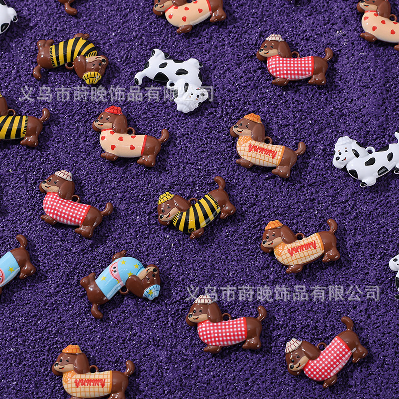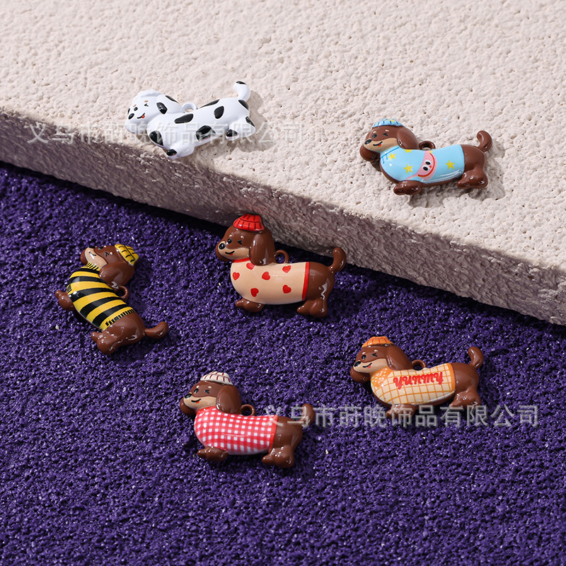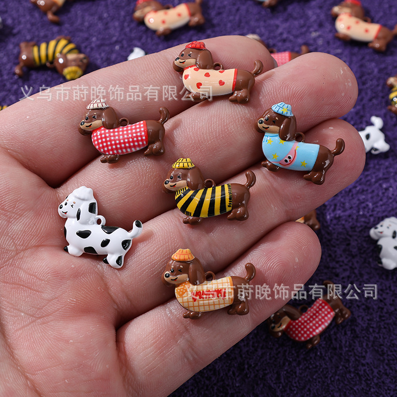 아연 합금 페인트 귀여운 동물 닥스 훈트 개 펜던트 DIY 휴대 전화 체인 가방 키 체인 보석 액세서리 펜던트