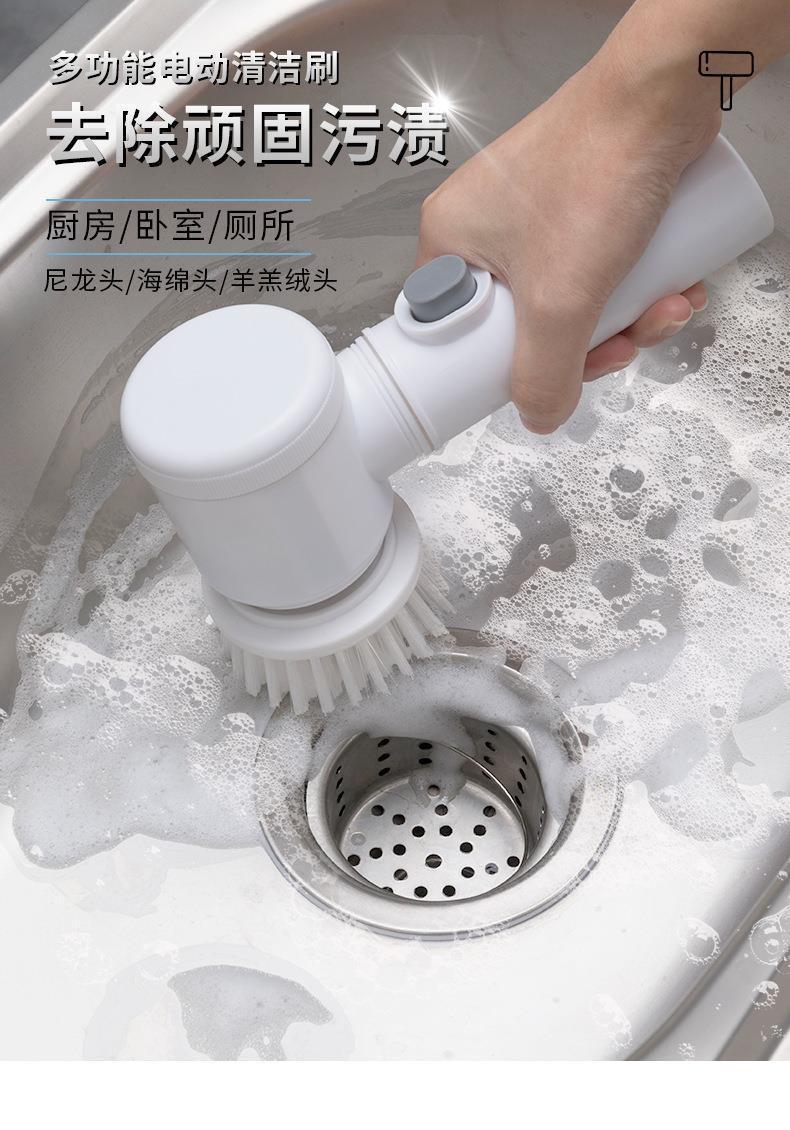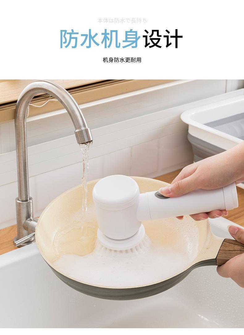 국경 간 가정용 다기능 휴대용 전기 청소 브러시 식기 세척 브러시 주방 가정용 5 피스 넷 레드 세트